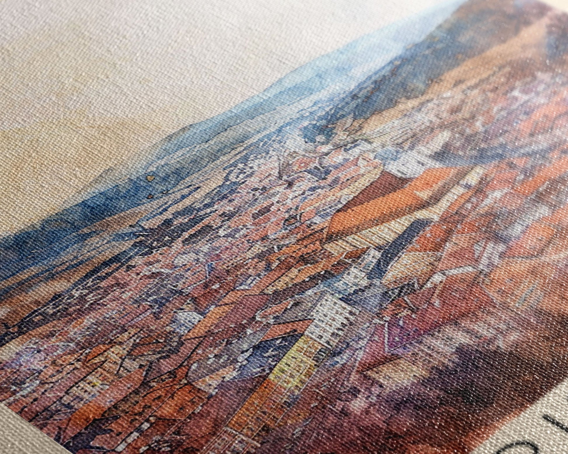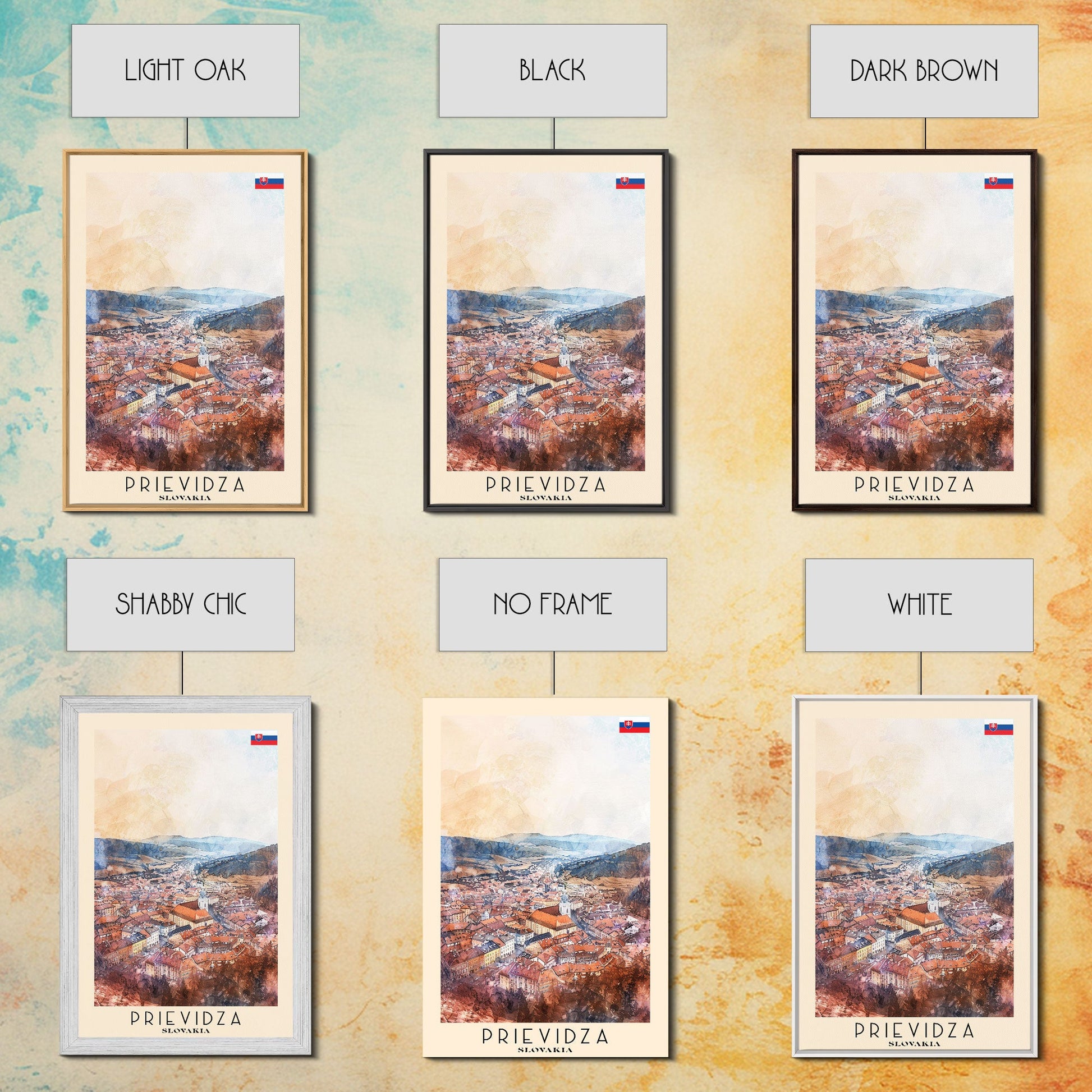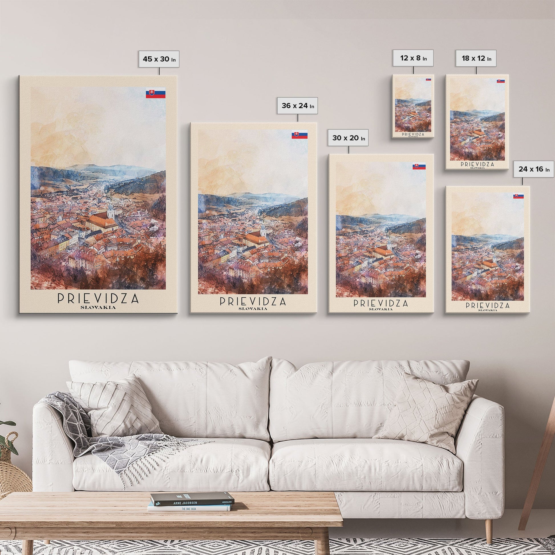 Prievidza Slovakia Travel Poster Framed Canvas Print, Watercolor Painting, Scenic Wall Art, Home Decor, Slovakian Landscape, Modern Art