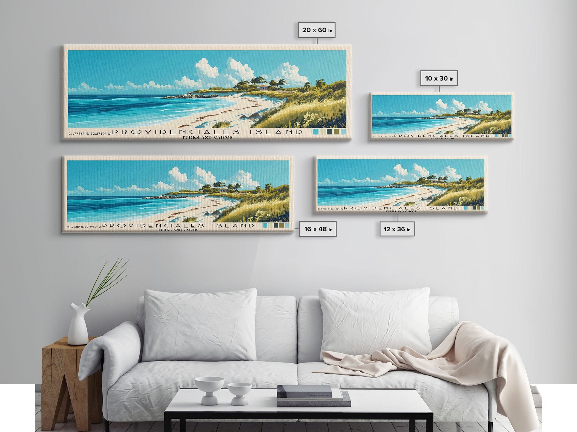 Providenciales Island, Turks and Caicos Panoramic Print, Vacation Gift, Turks and Caicos Wall Art, Beach Painting, Beach Decor, Large Wall Art, Wood Frame Art