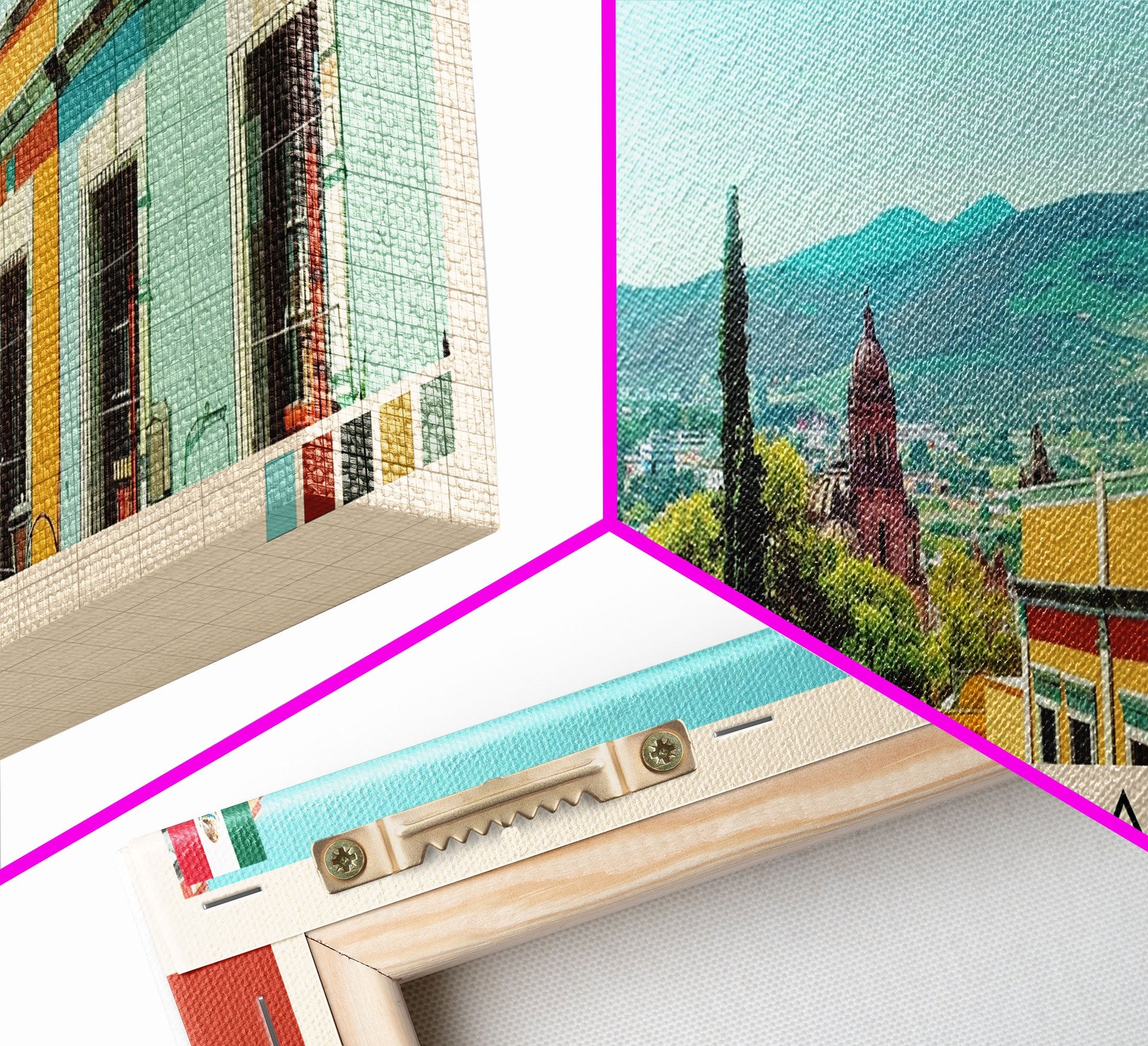 Puebla, Mexico Panoramic Canvas Print, Puebla, Mexico Painting, Mexico Art, Puebla Travel Poster, Travel Art, Living Room Painting