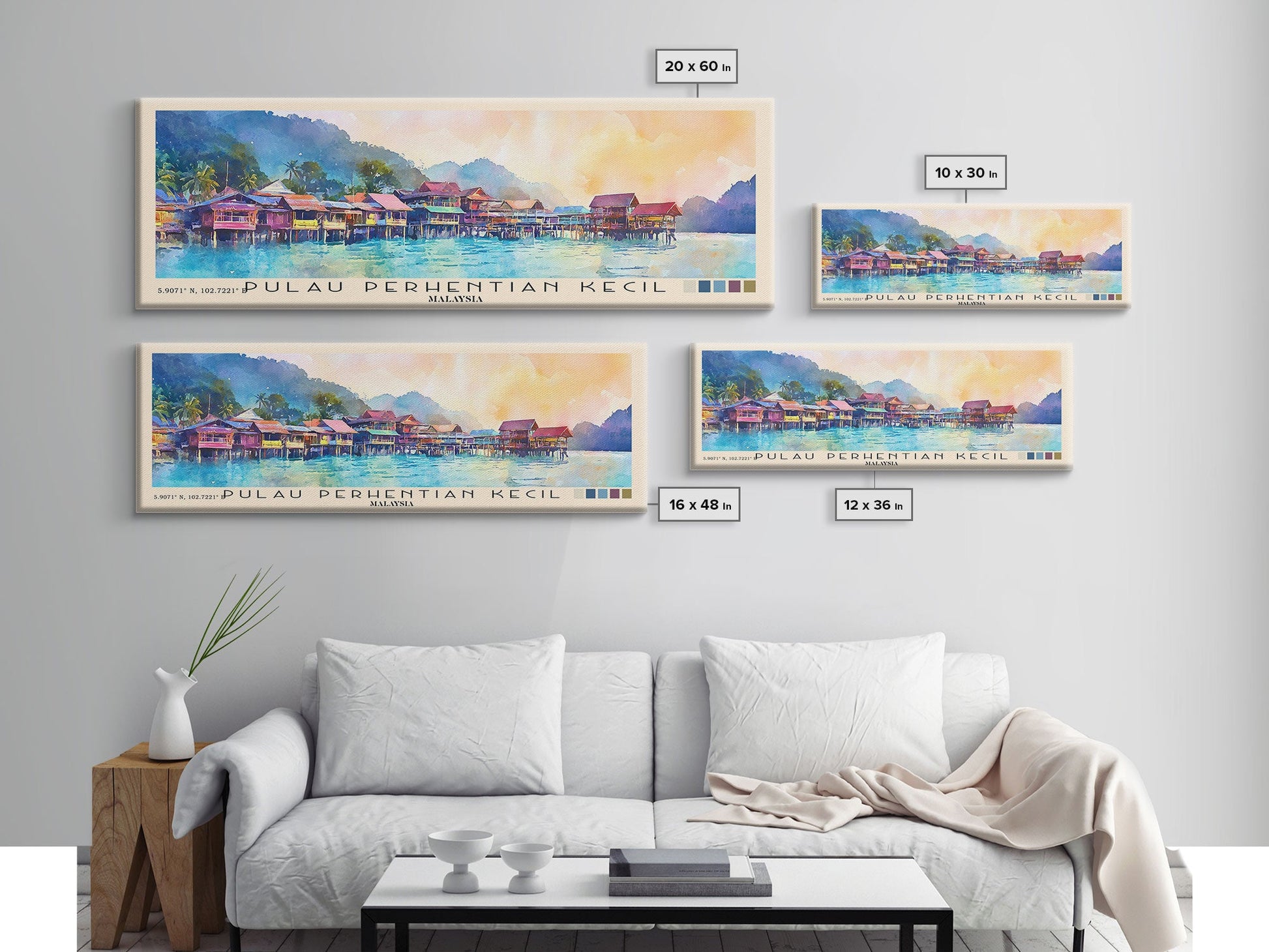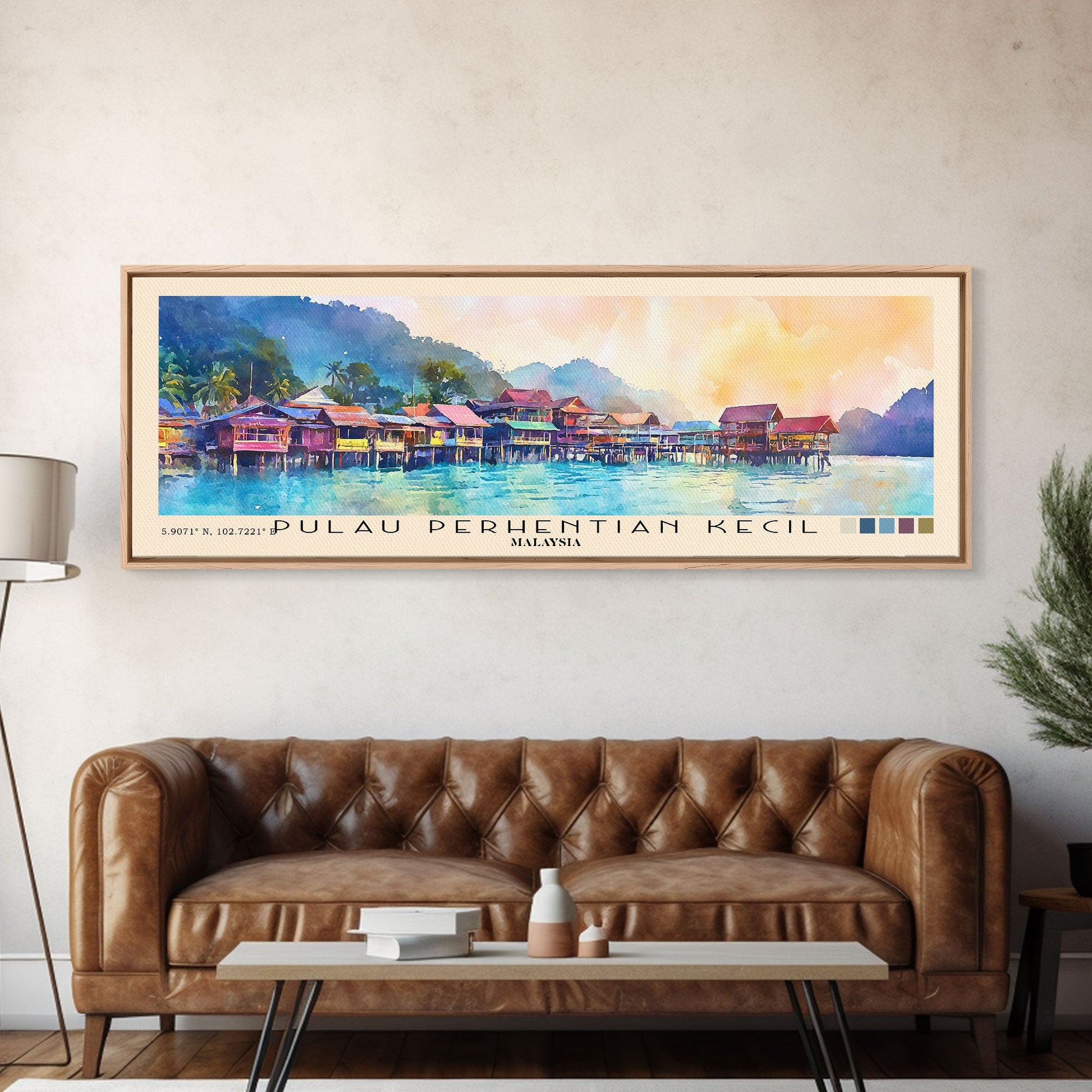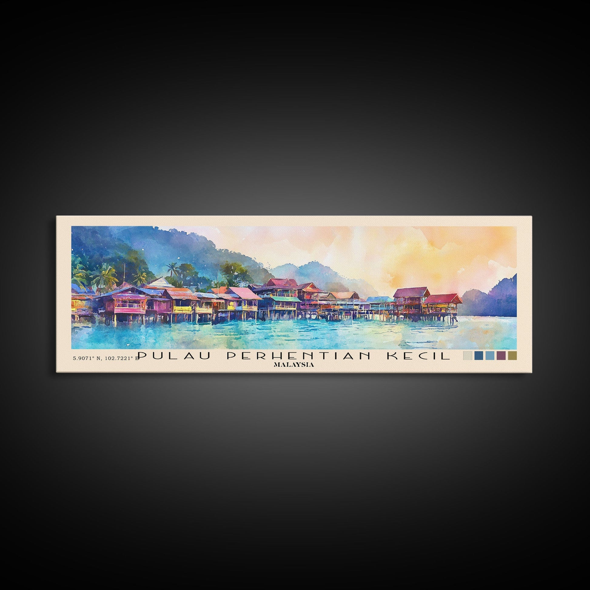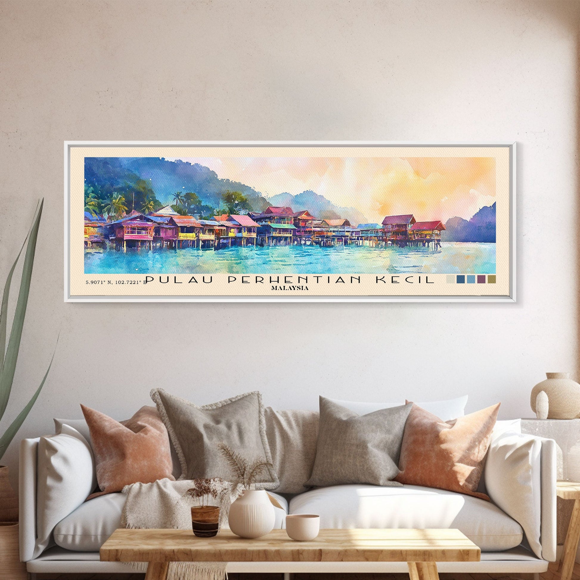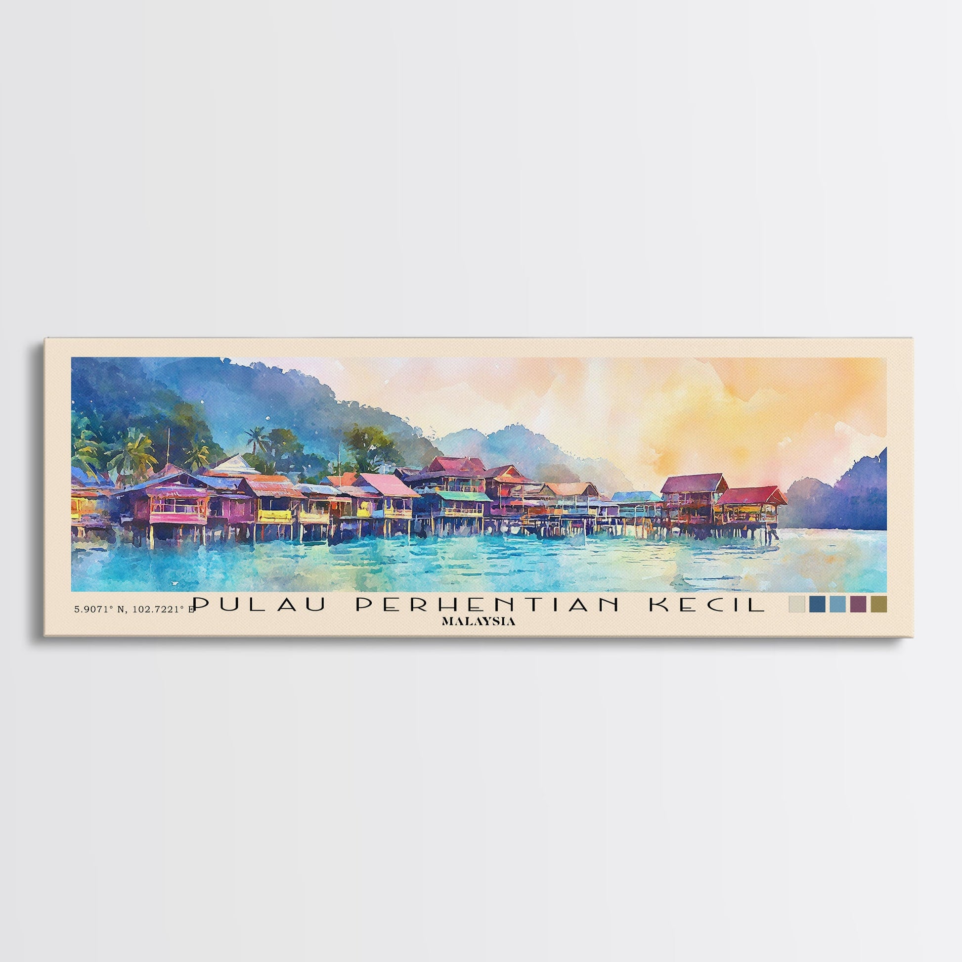 Pulau Perhentian Kecil, Malaysia Watercolor Beach Print, Vacation Gift, Malaysia Wall Art, Framed Canvas Print, Framed Beach Painting