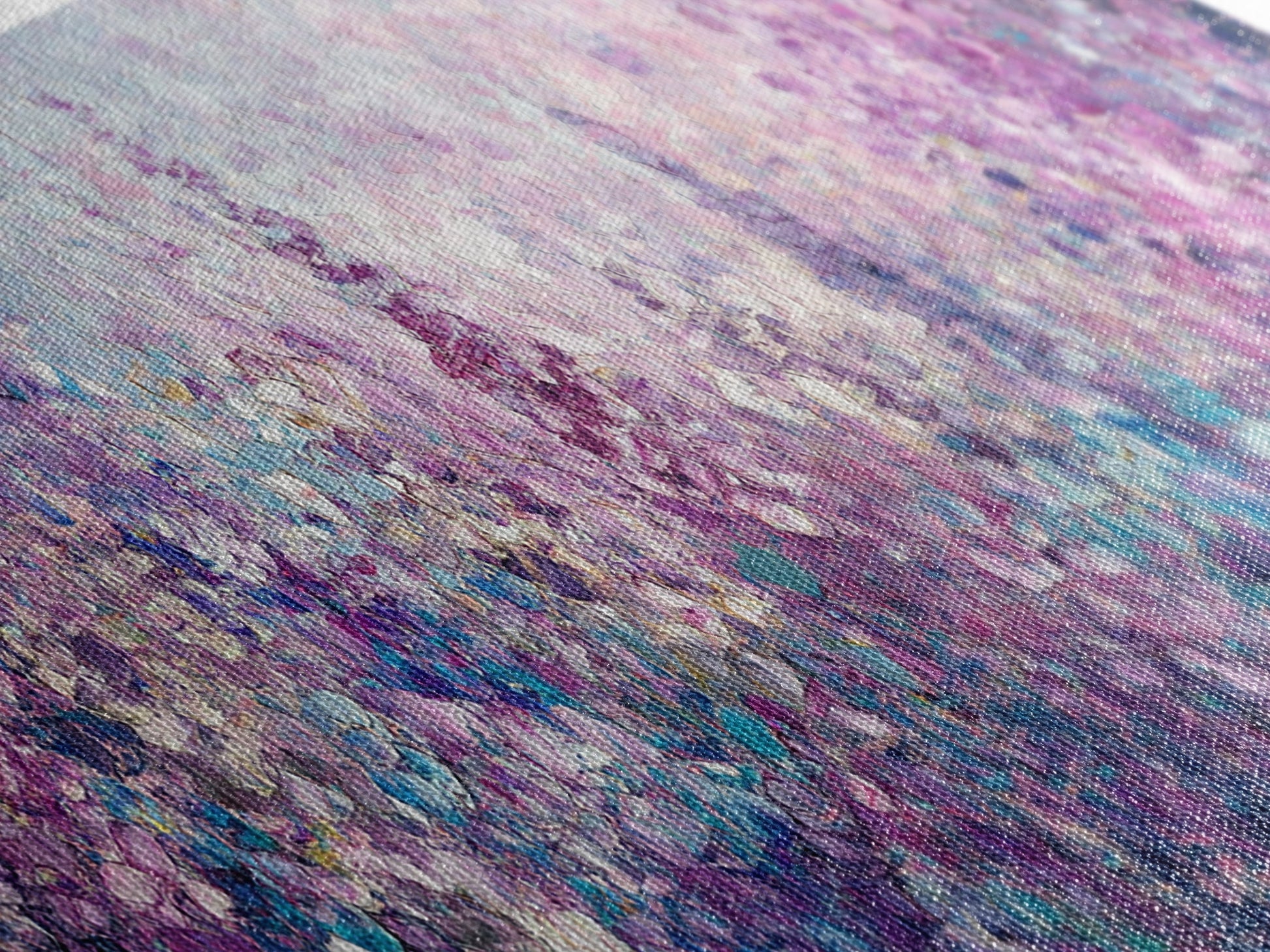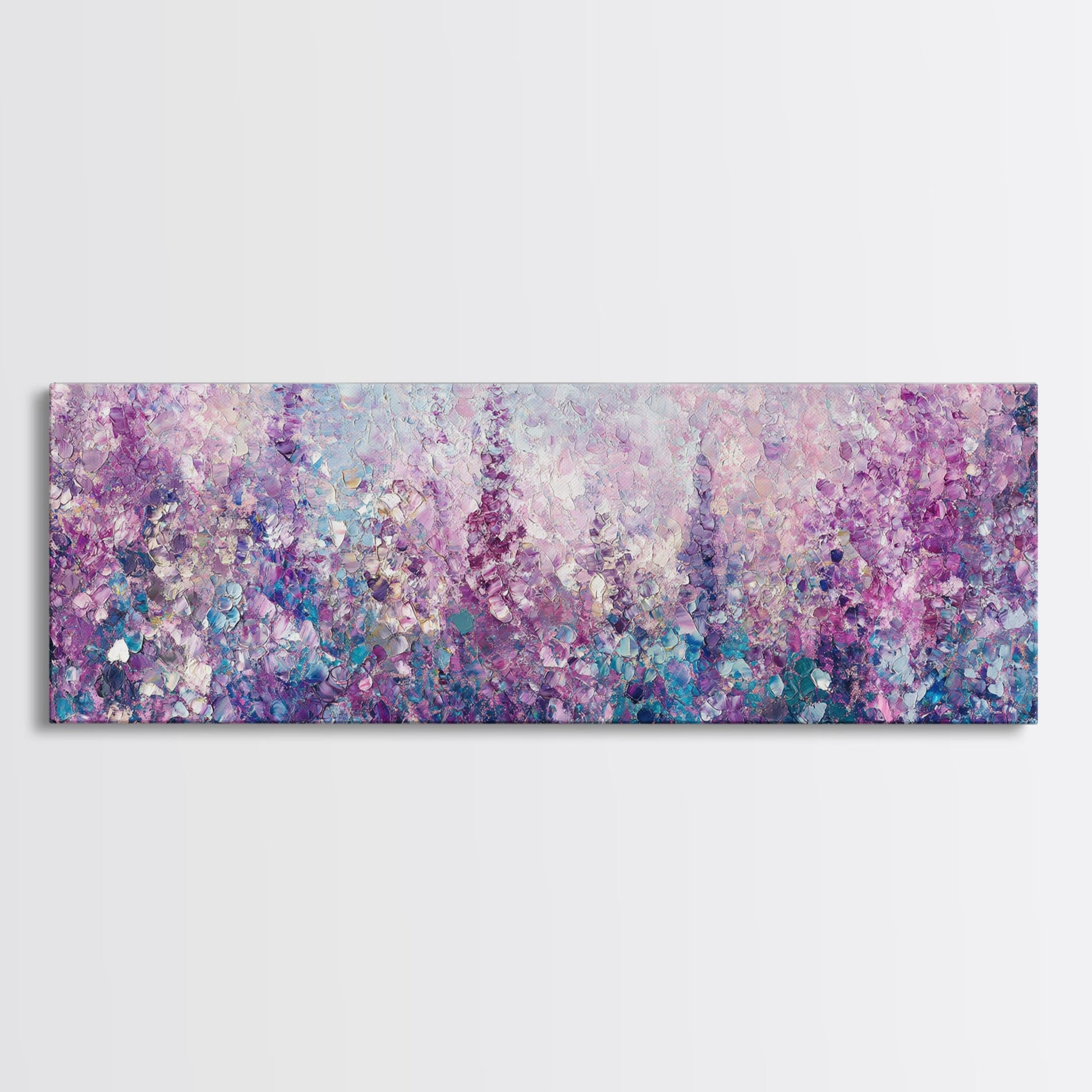 Purple Flower Painting, Lavender and Lilacs, Framed Canvas Print, Boho Style Panoramic Painting Wall Art, Purple and Blue Flowers