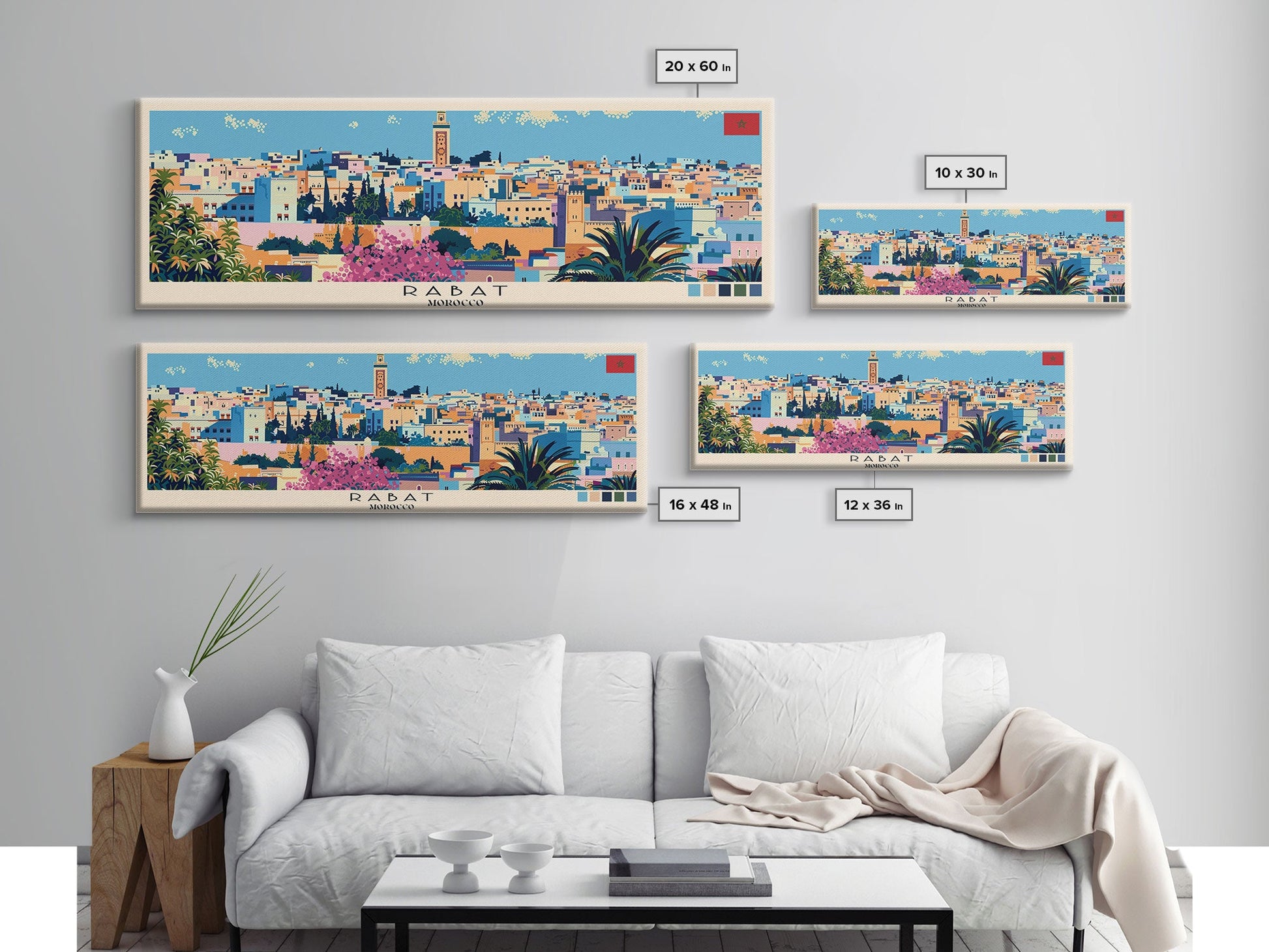 Rabat, Morocco Panoramic Canvas Print, Rabat, Morocco Painting, Morocco Art, Rabat Travel Poster, Travel Art, Housewarming Gift