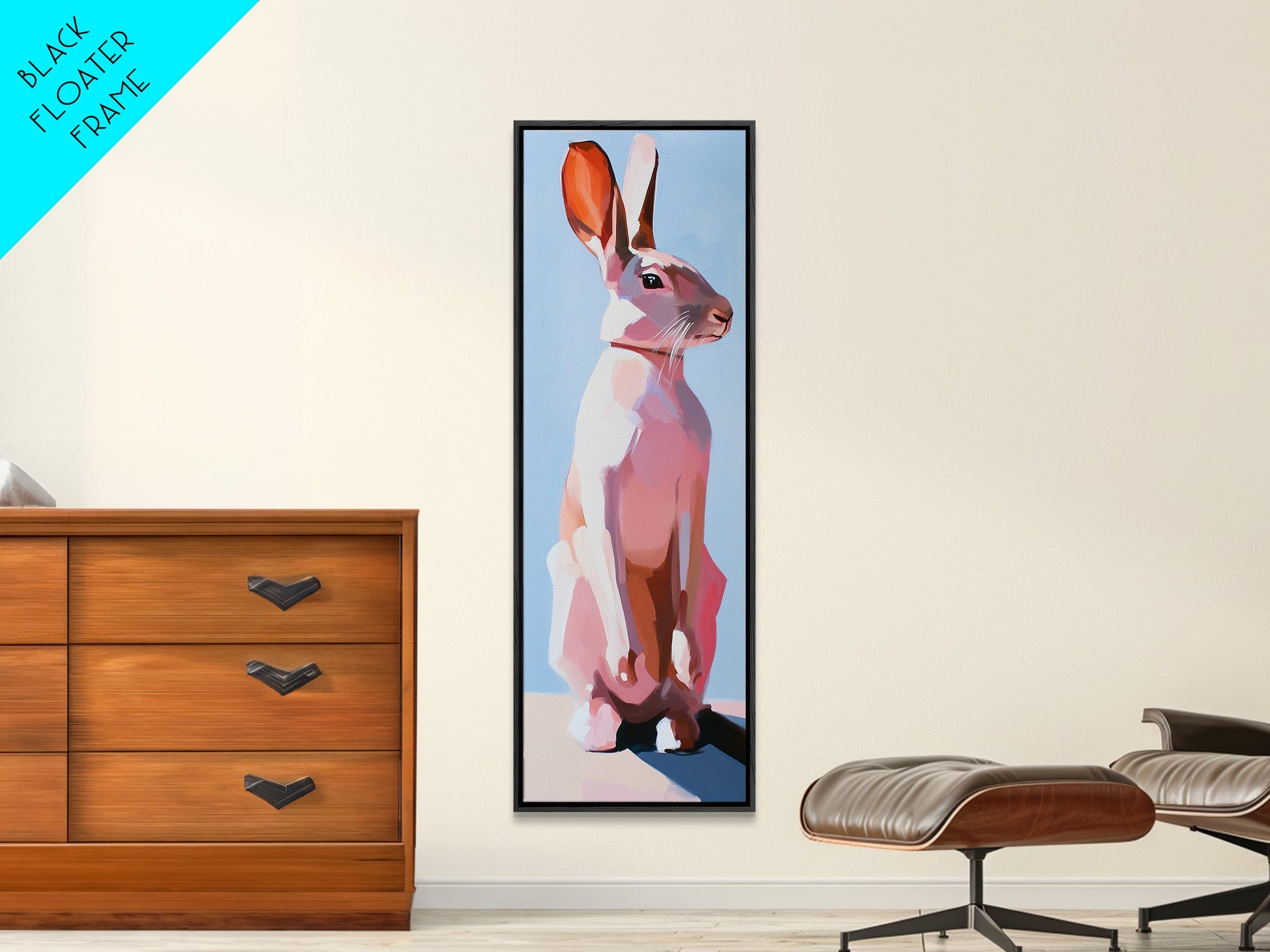 Rabbit Art, Modern Animal Decor, Pastel Bunny Painting, Minimalist Wildlife, Living Room Wall Art, Framed Canvas Print