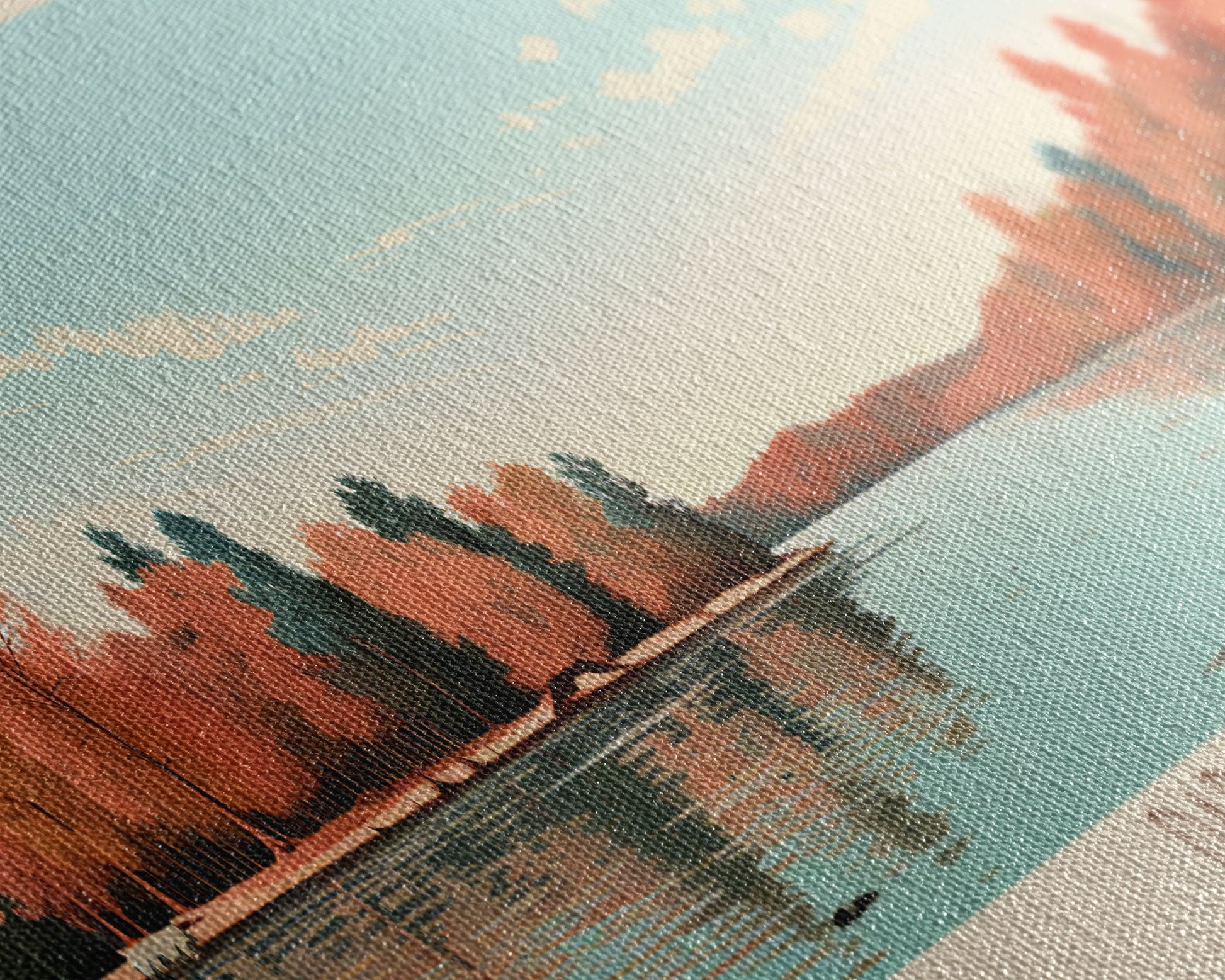Most of our canvases are made in the USA, with the exception of canvases ordered with the light oak unstained frames, and any large canvases (24x48, 30x60, 16x48 and 20x60) ordered WITH a frame. These are temporarily made in and shipped from Europe, while we try to find a more consistent supplier in the USA.