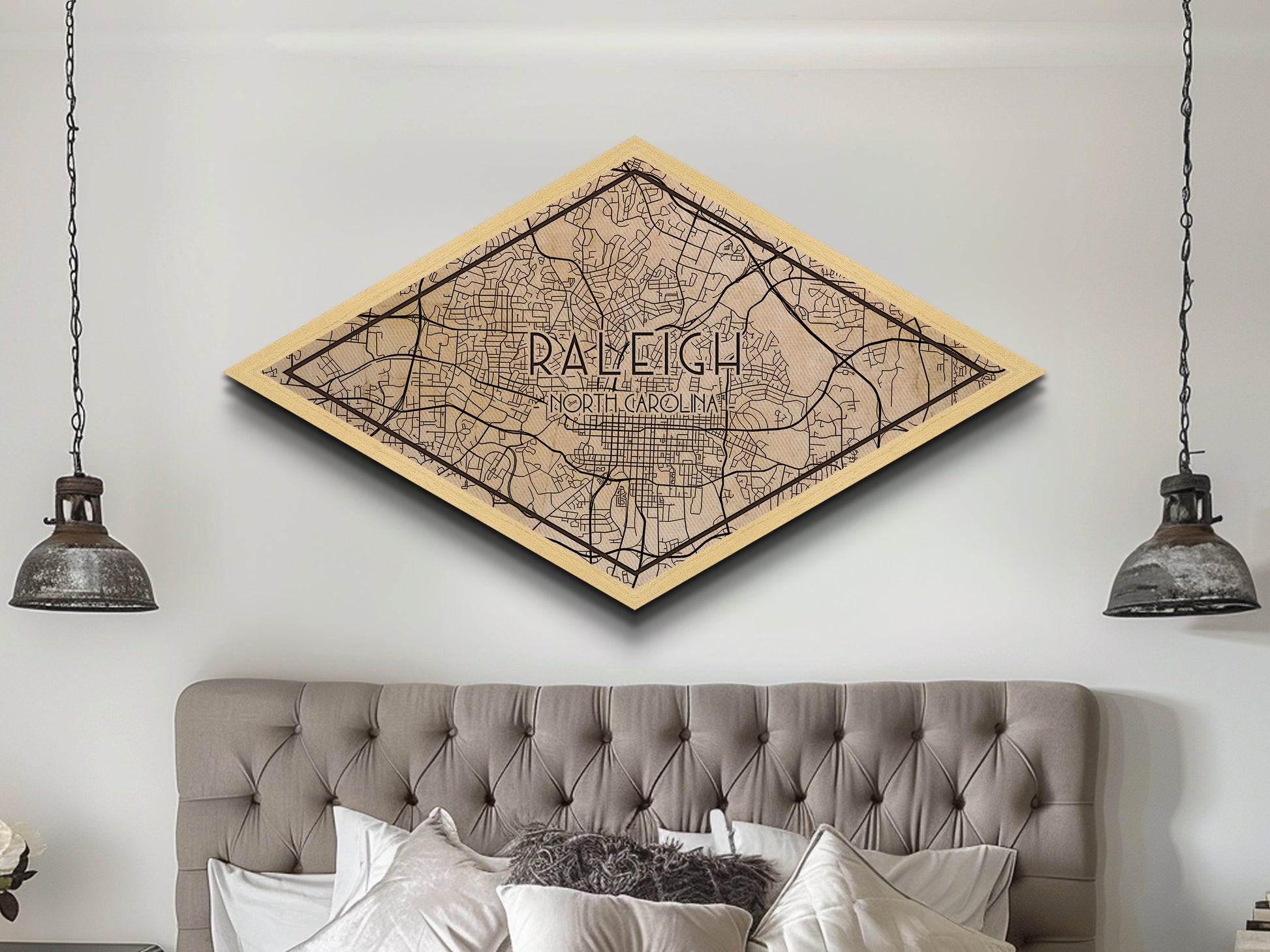 Raleigh Diamond Shaped City Map, Custom Diamond Shaped Wall Art, City Map Canvas