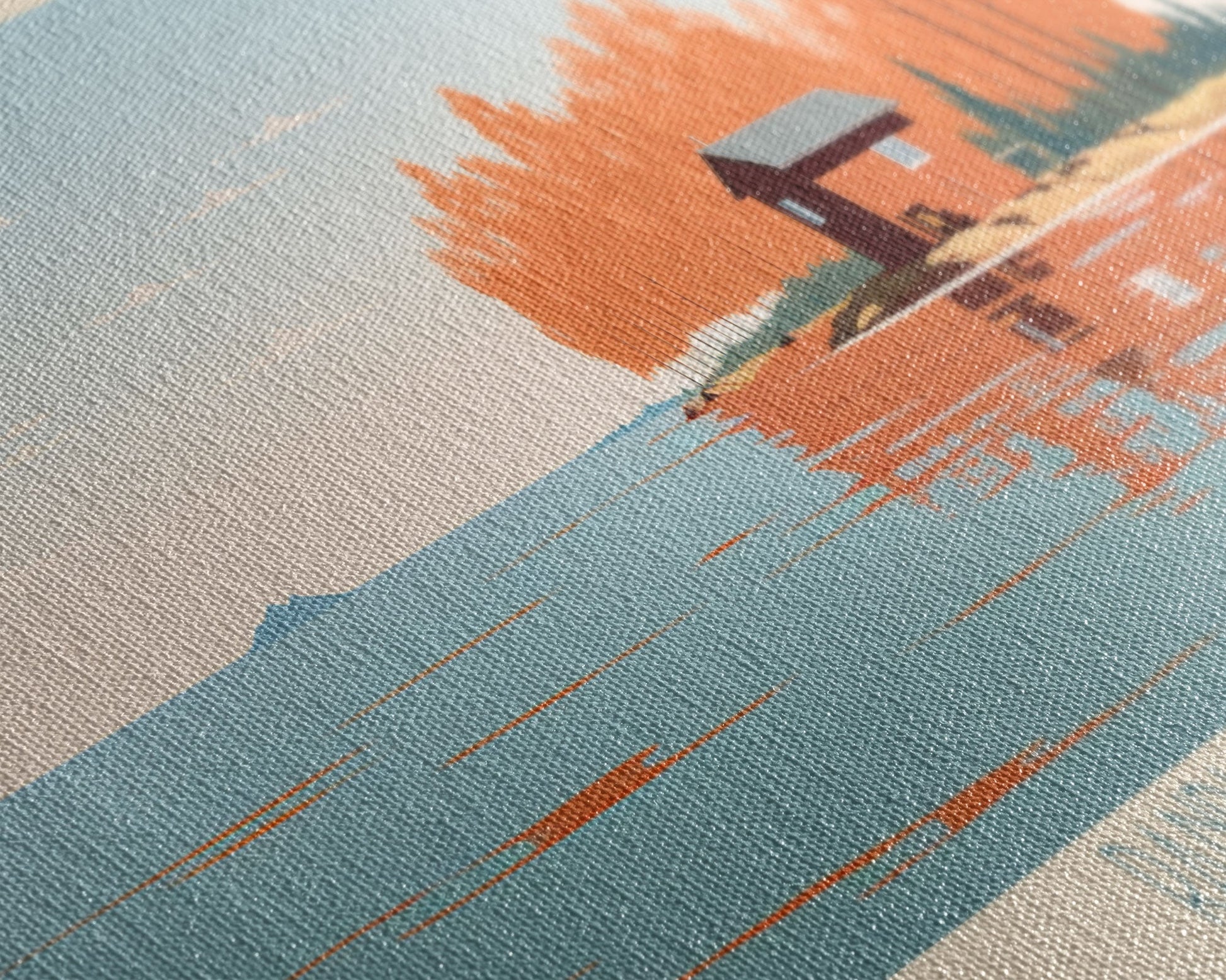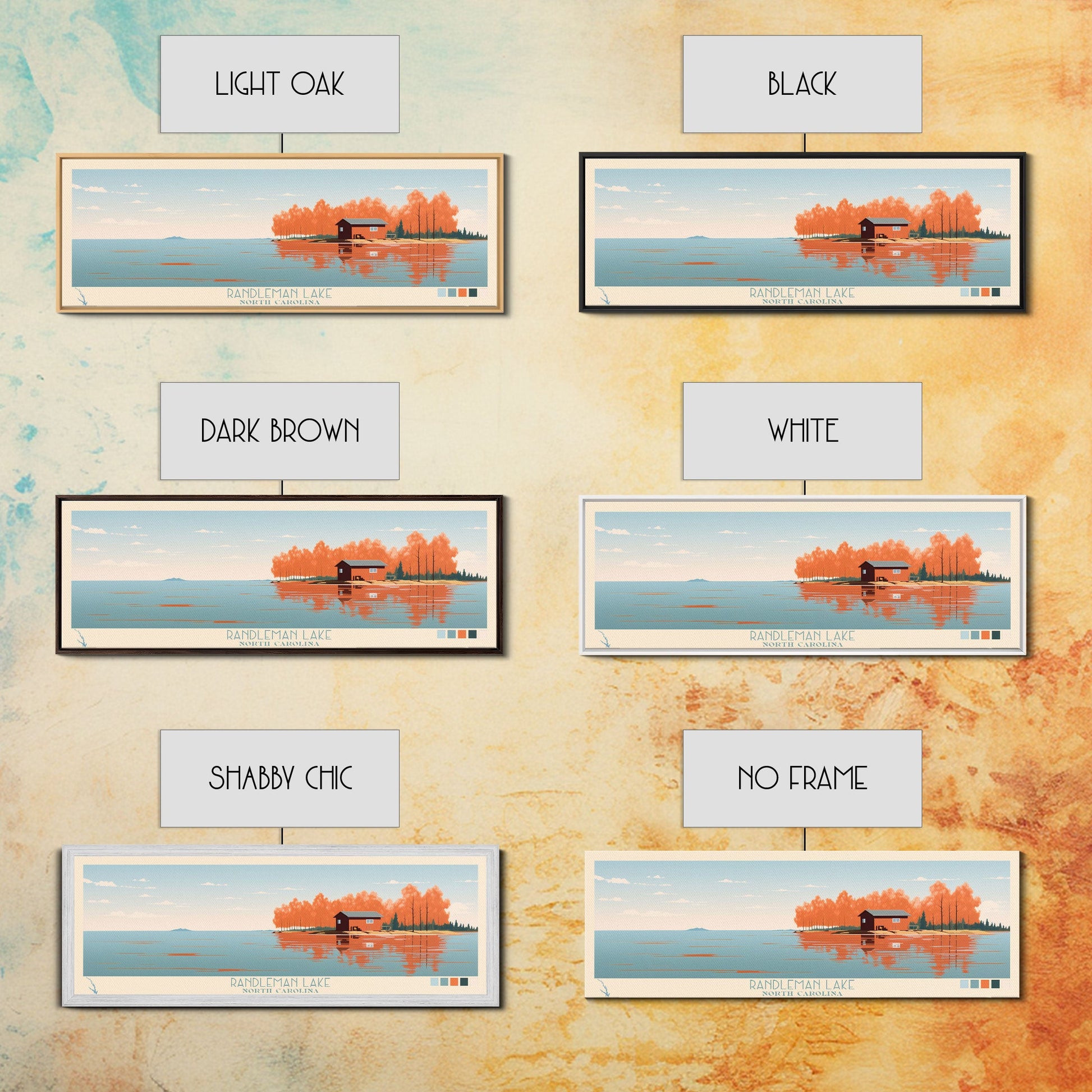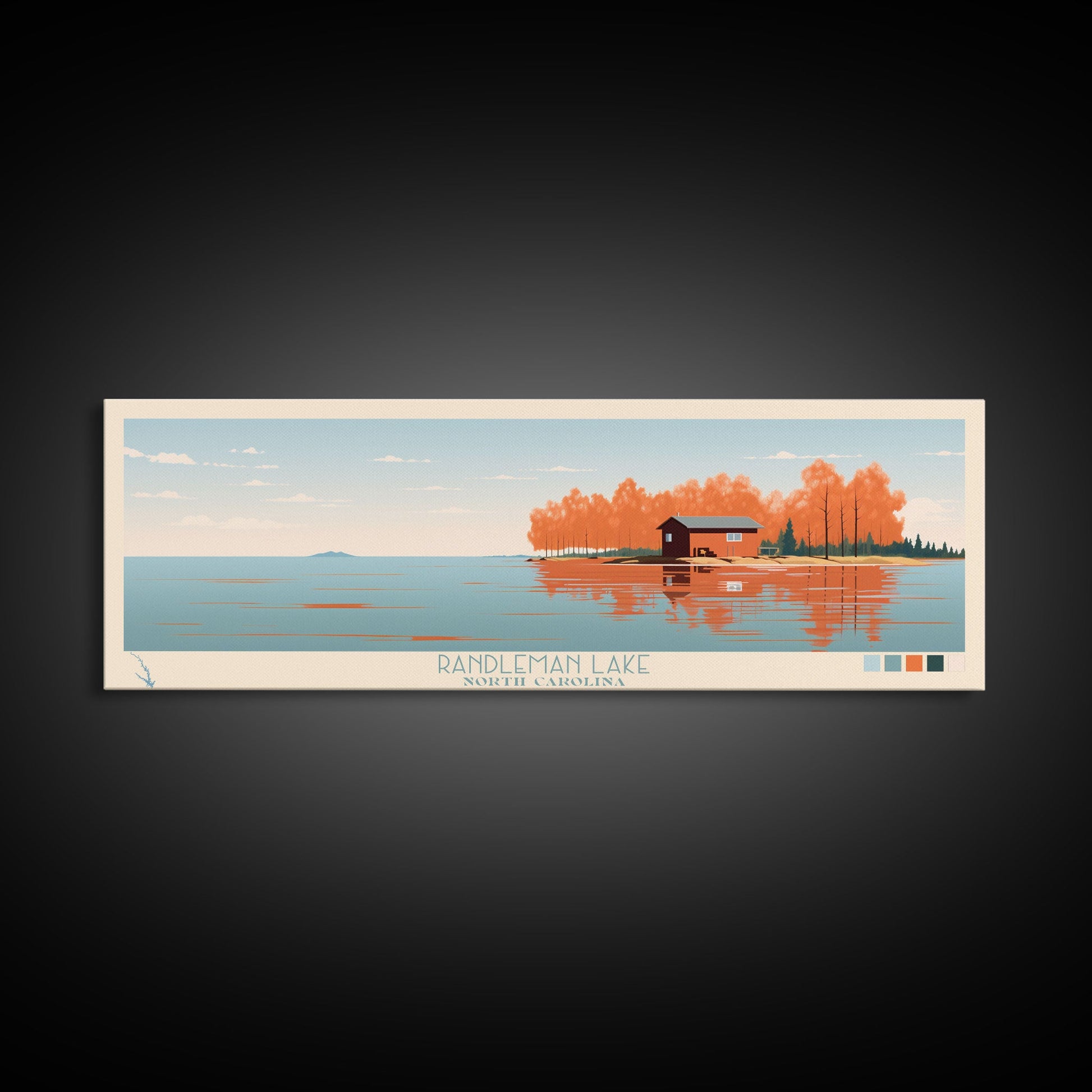 Randleman Lake, North Carolina Framed Canvas Print, Living Room Art, Midcentury Modern, Panoramic Wall Art, Pop Art, Travel Poster