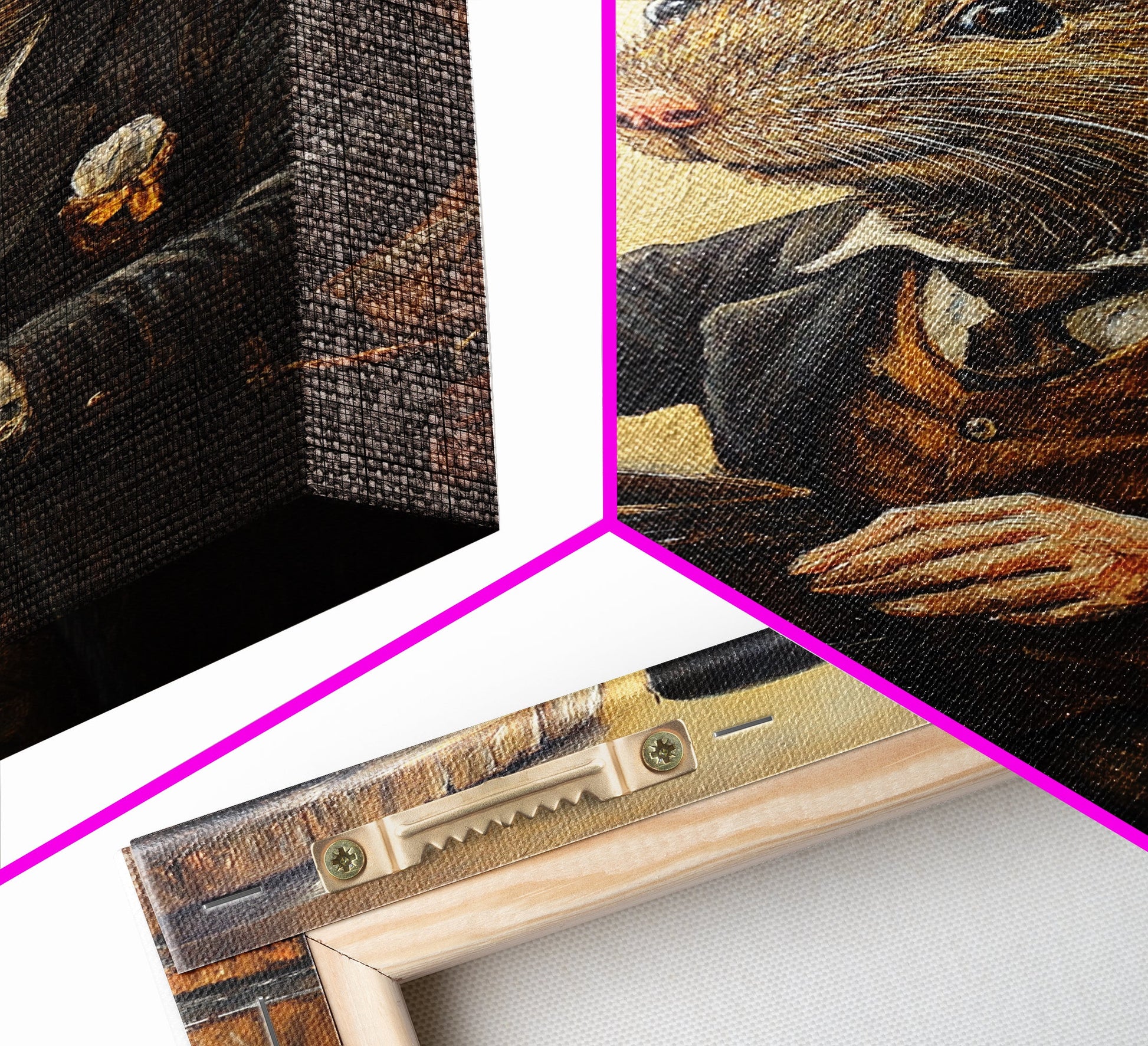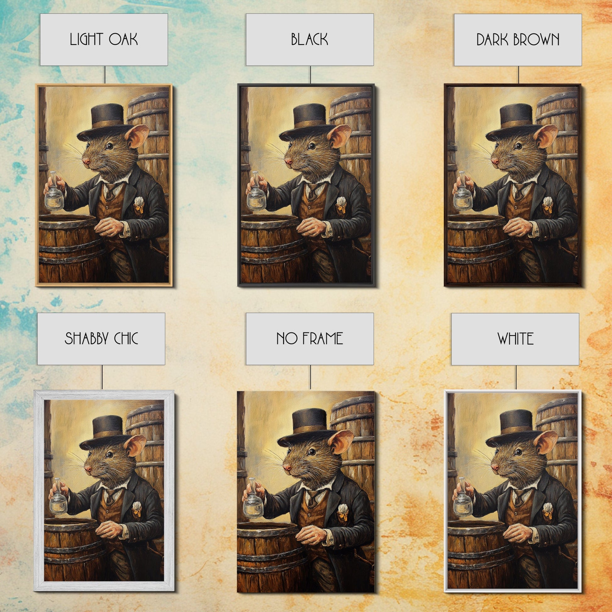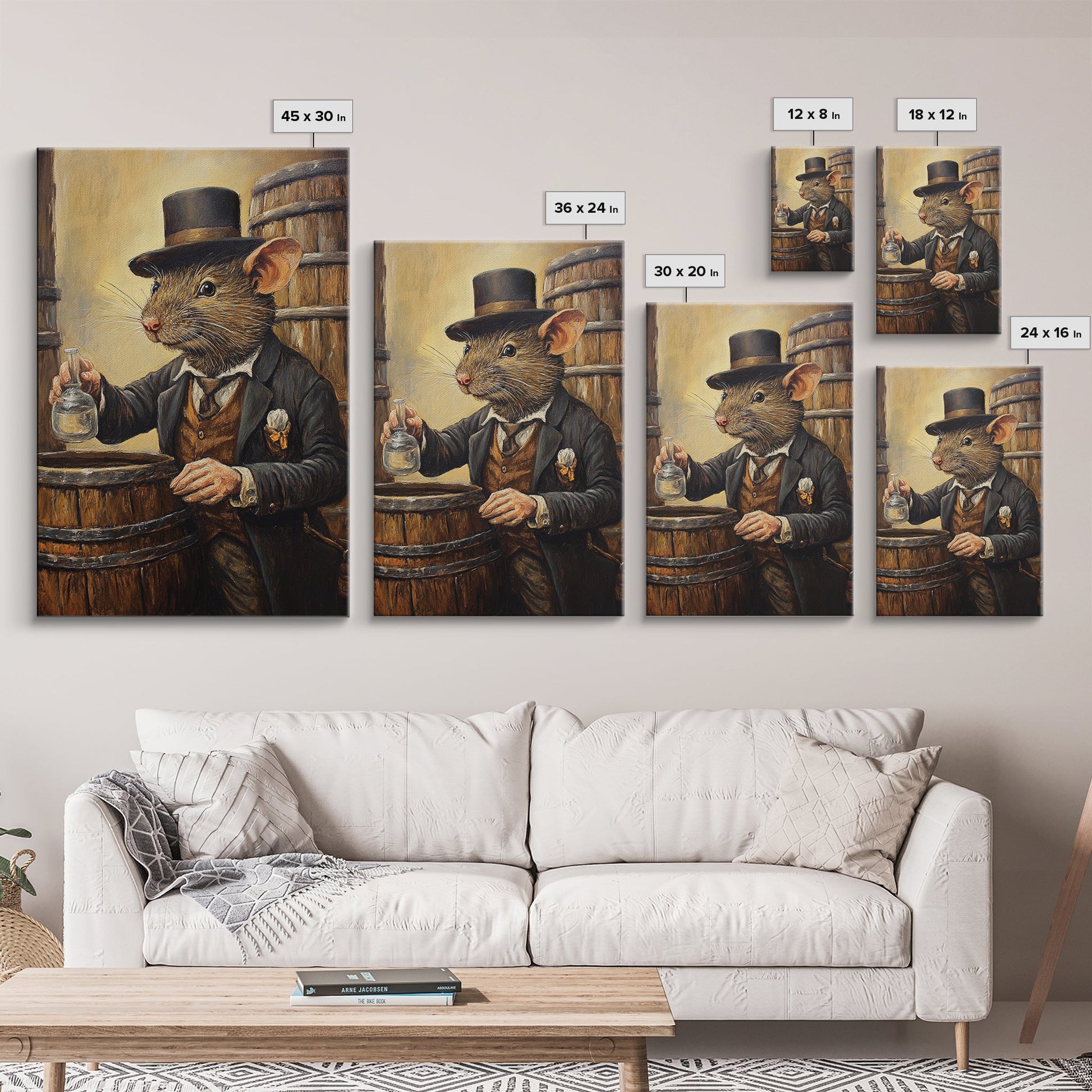 Rats with Jobs, Framed Canvas Print, Rat Painting, The Rat Whiskey Distiller, Cute Rat Home Decor