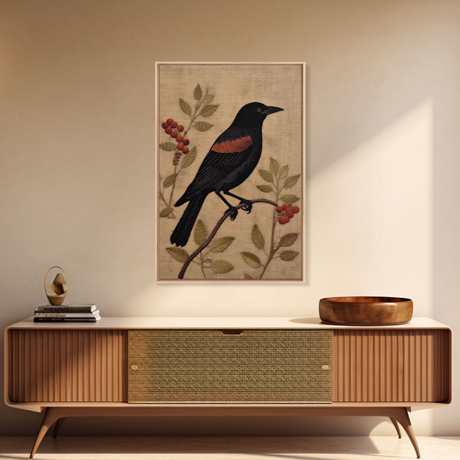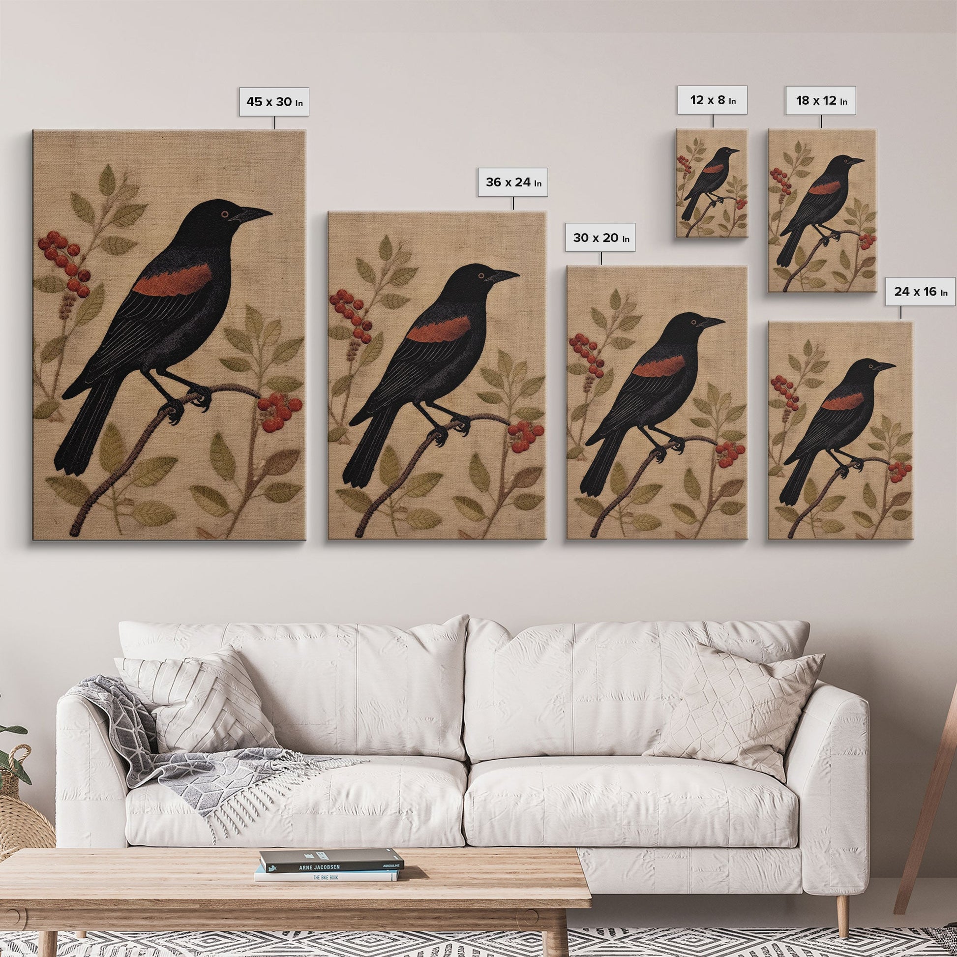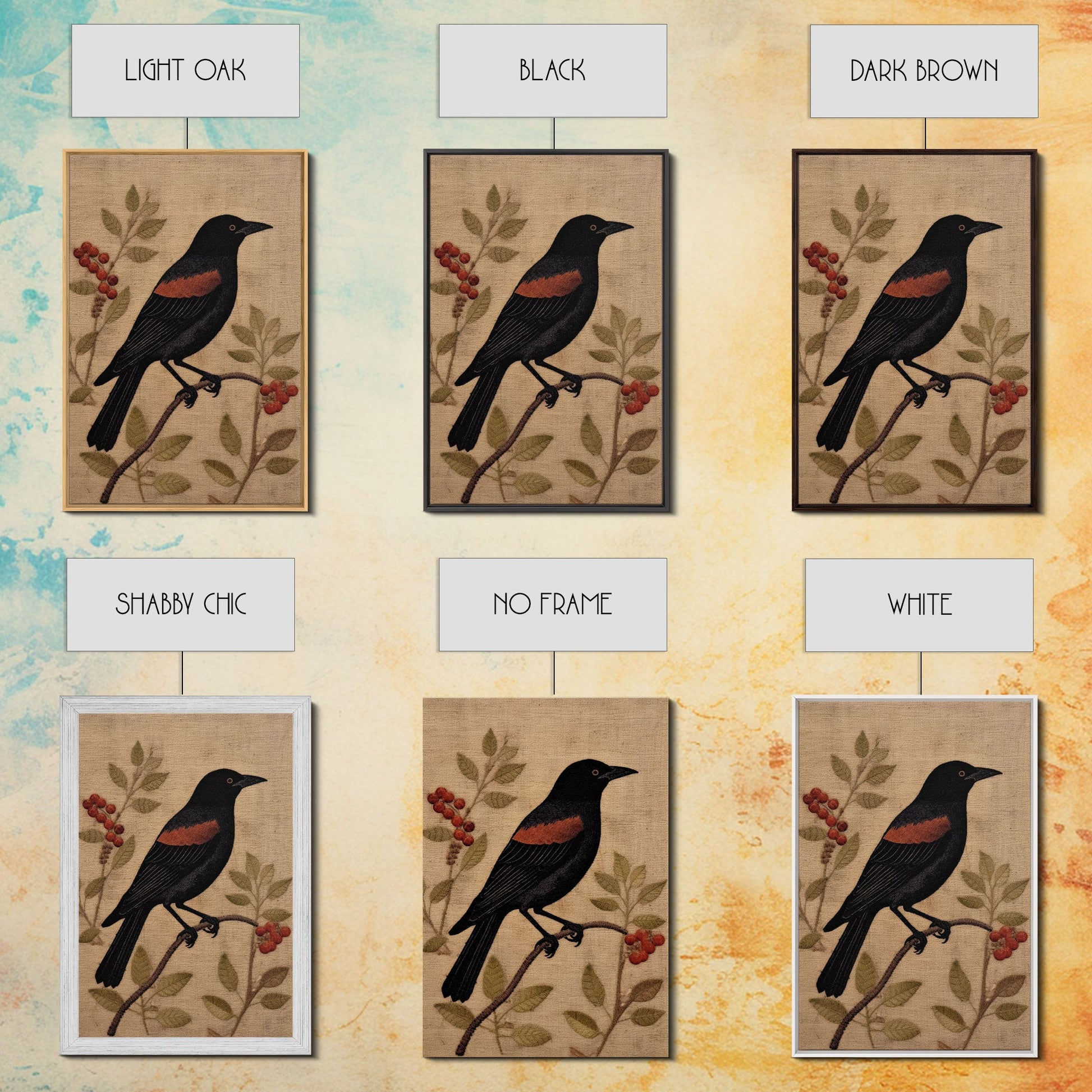 Raven Print, Antique Bird Painting Print, Vintage Drawing Framed Canvas Print Wall Art, Black Raven, bird nature print, bird lovers gift