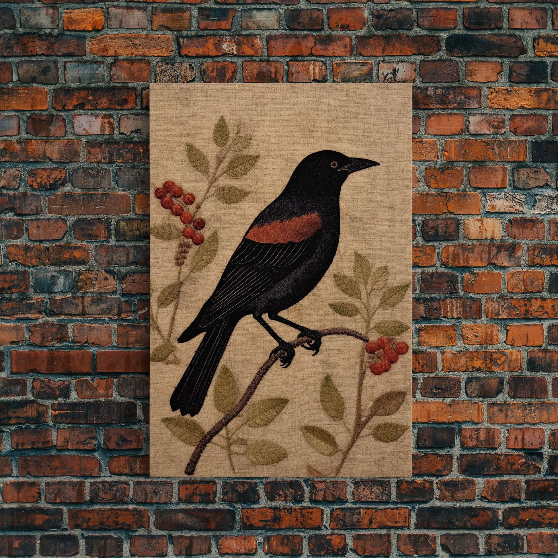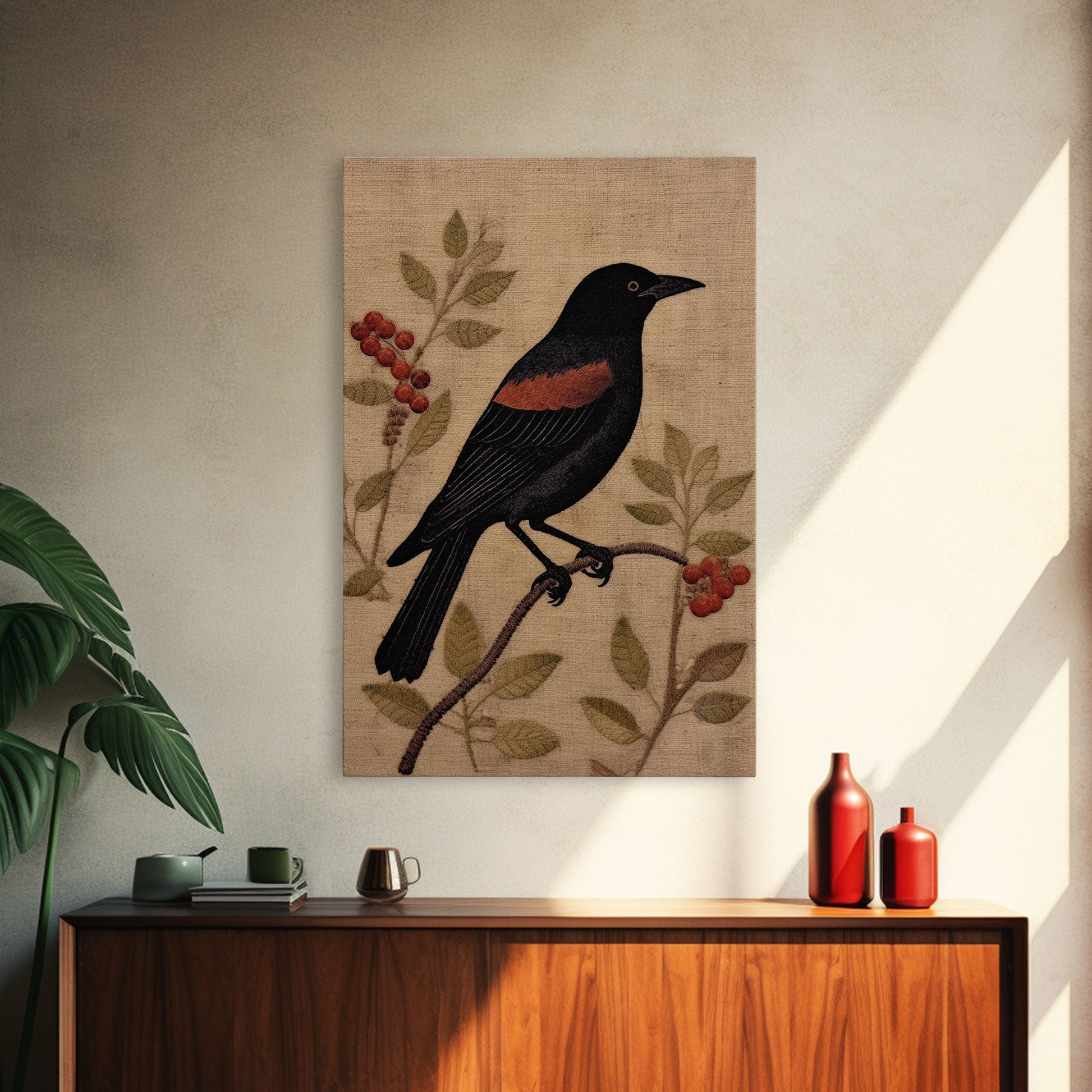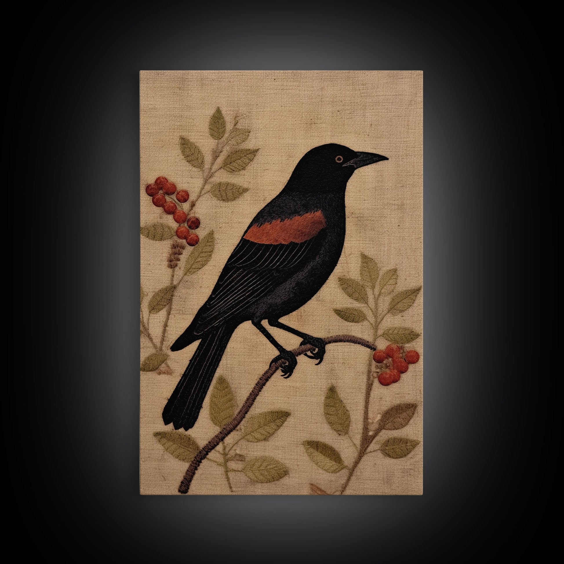 Raven Print, Antique Bird Painting Print, Vintage Drawing Framed Canvas Print Wall Art, Black Raven, bird nature print, bird lovers gift