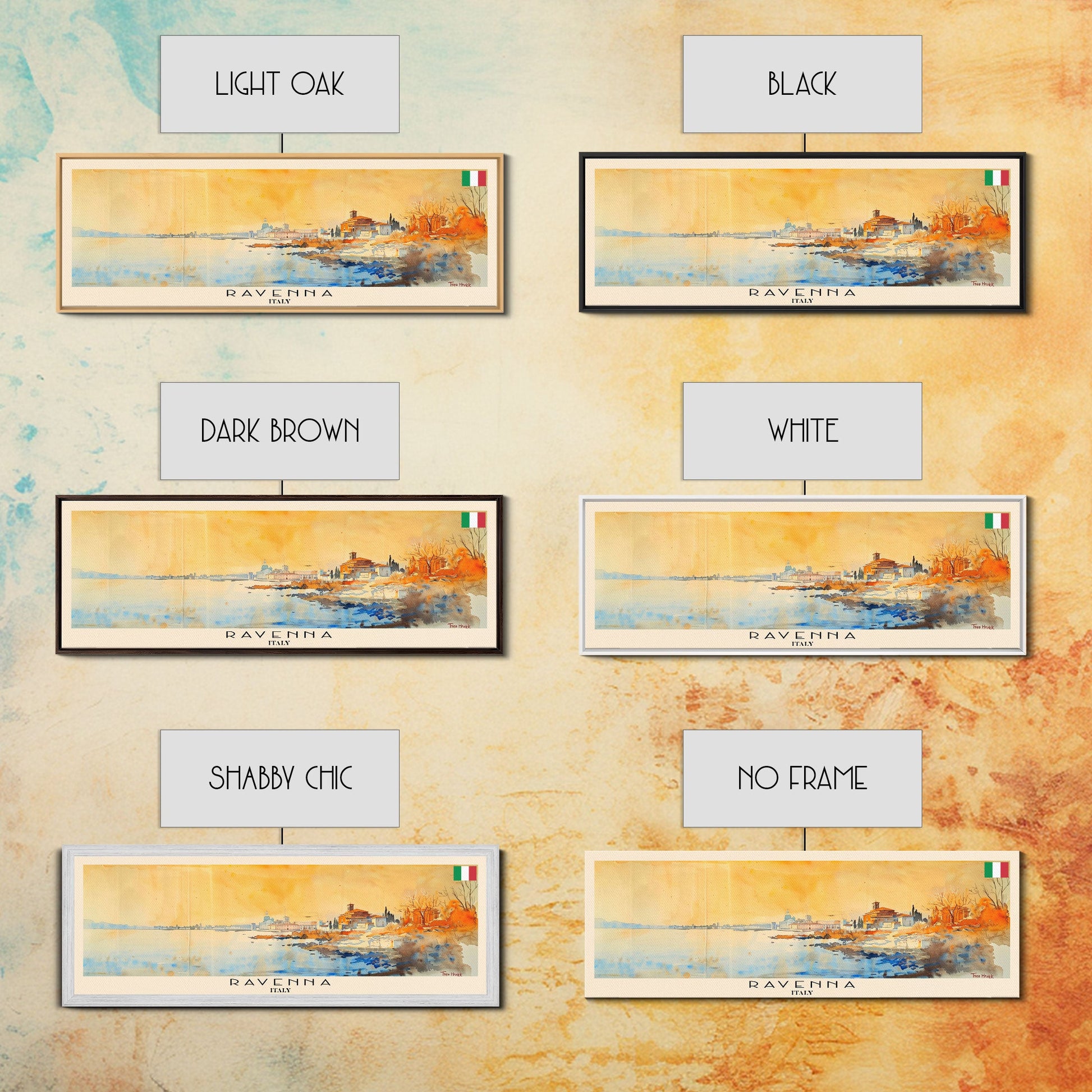 Ravenna Italy Panoramic Travel Poster, Framed Canvas Print or Metal Wall Art, Travel Art, Home Decor, Panoramic Painting, Midcentury Art