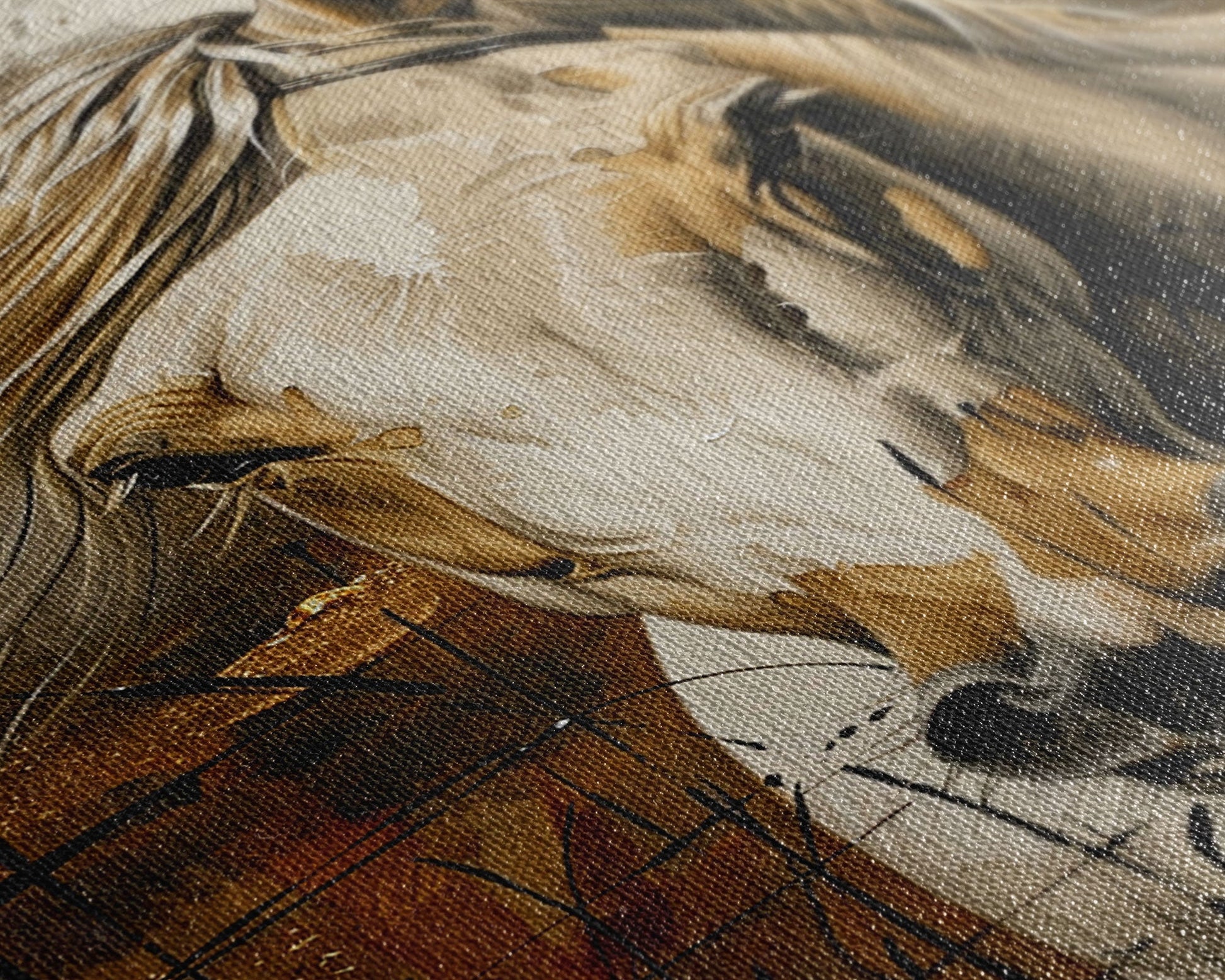 Realistic Horse Portrait with Warm Background - Framed Canvas Print, Equine Art, Living Room Wall Decor, Bedroom Horse Art Print
