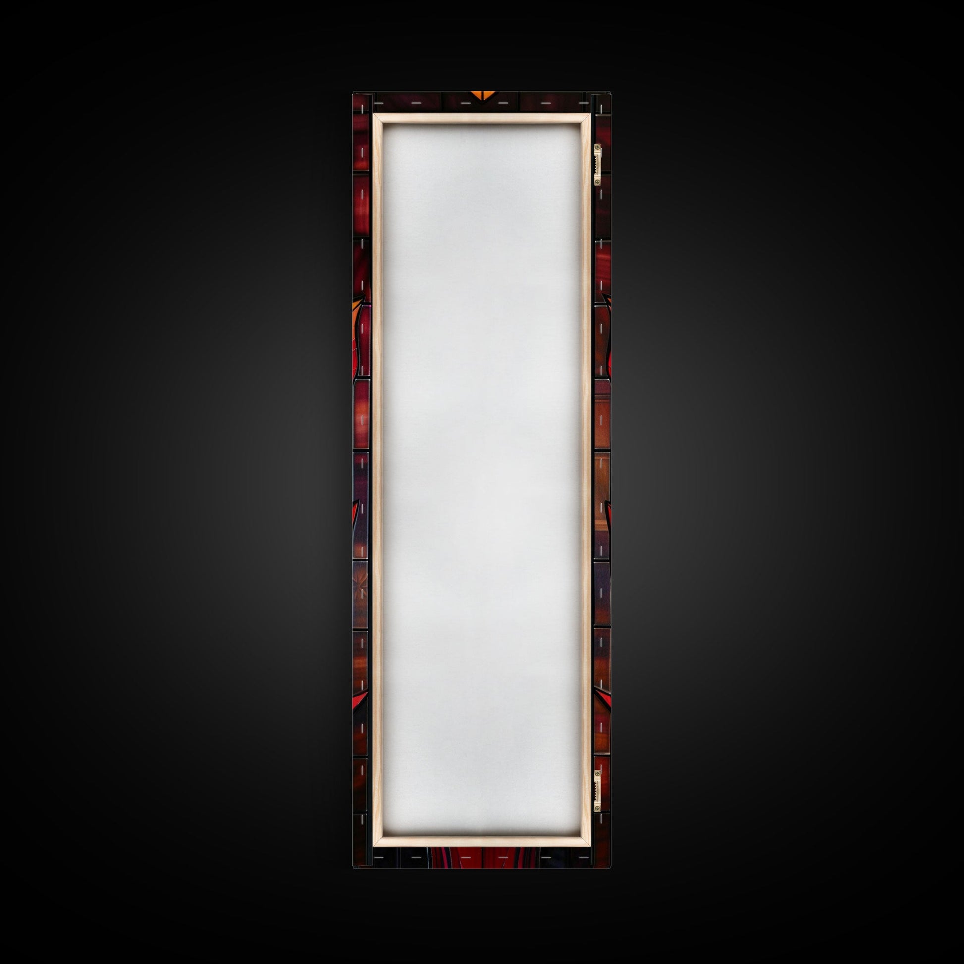 Red and Orange Floral Stained Glass Design - Framed Canvas Print, Midcentury Modern Art, Skinny Art, Tall Art, Living Room Wall Decor, Boho Art