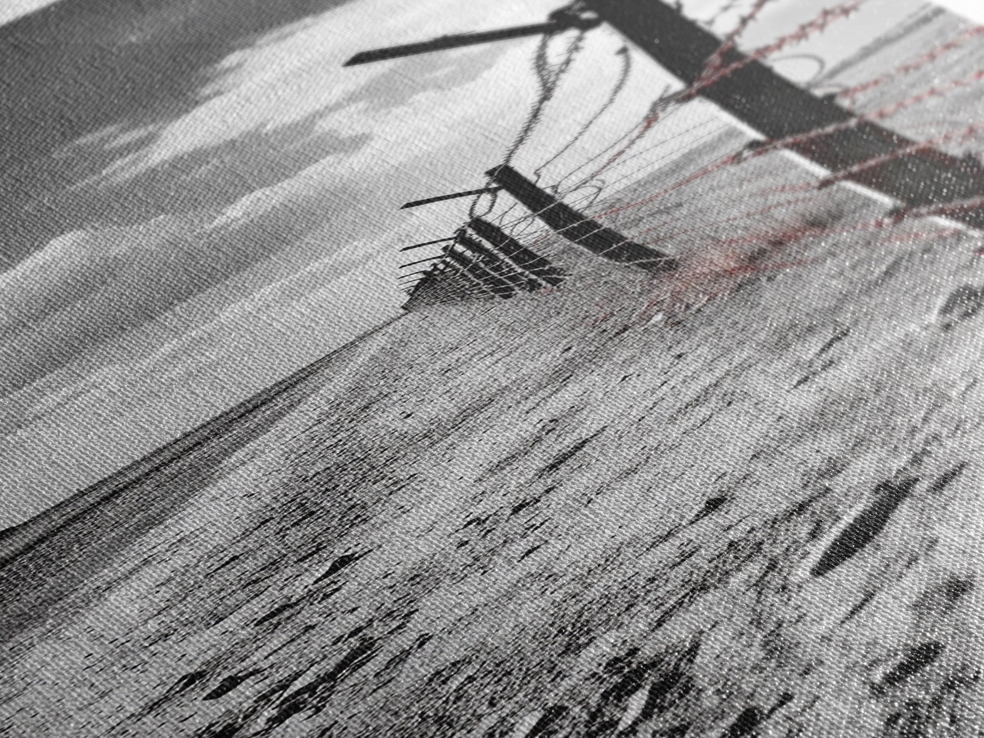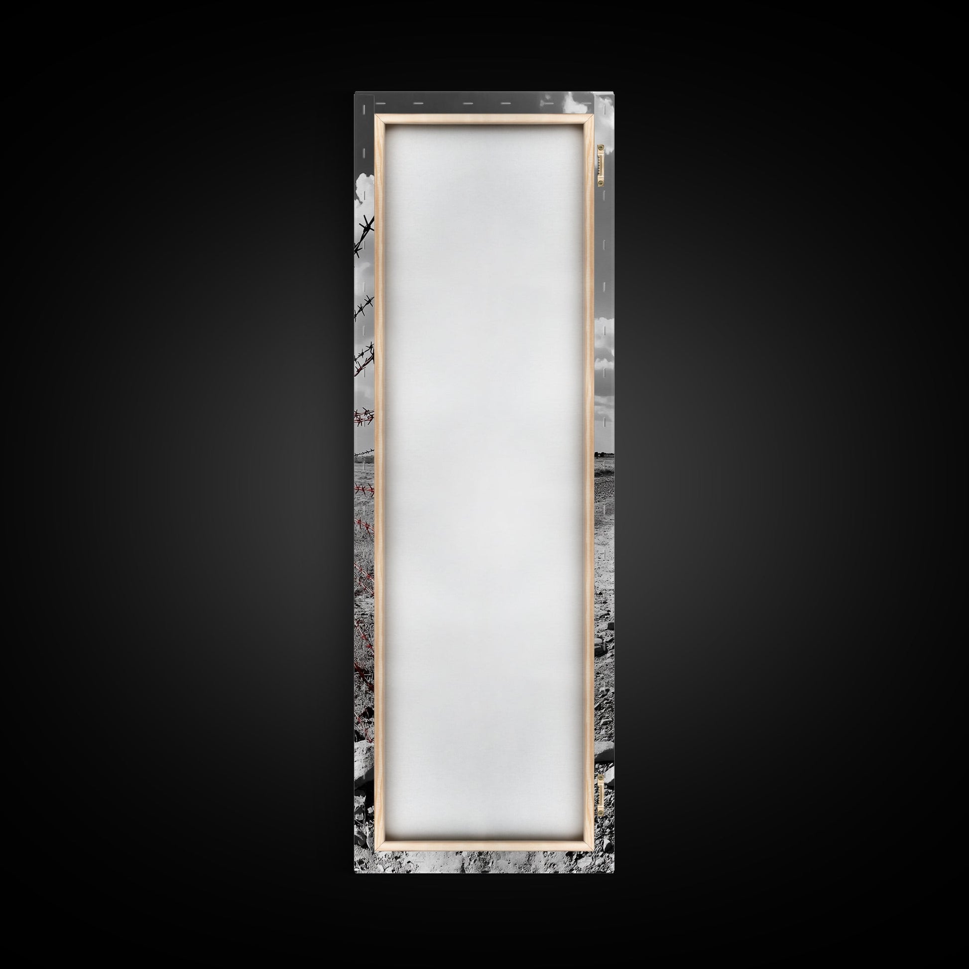 Red Barbed Wire, Desert Fence, Dystopian Path, Framed Canvas Print, Western Rustic Decor, Grunge Wall Art, Monochrome Landscape Style