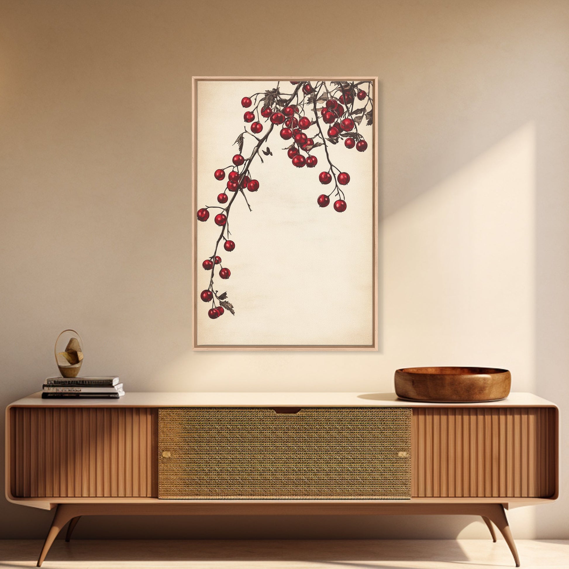 Red Holly Berries Canvas Print - Framed Canvas - Minimalist Christmas Art - Boho Christmas Art - Rustic Christmas Art