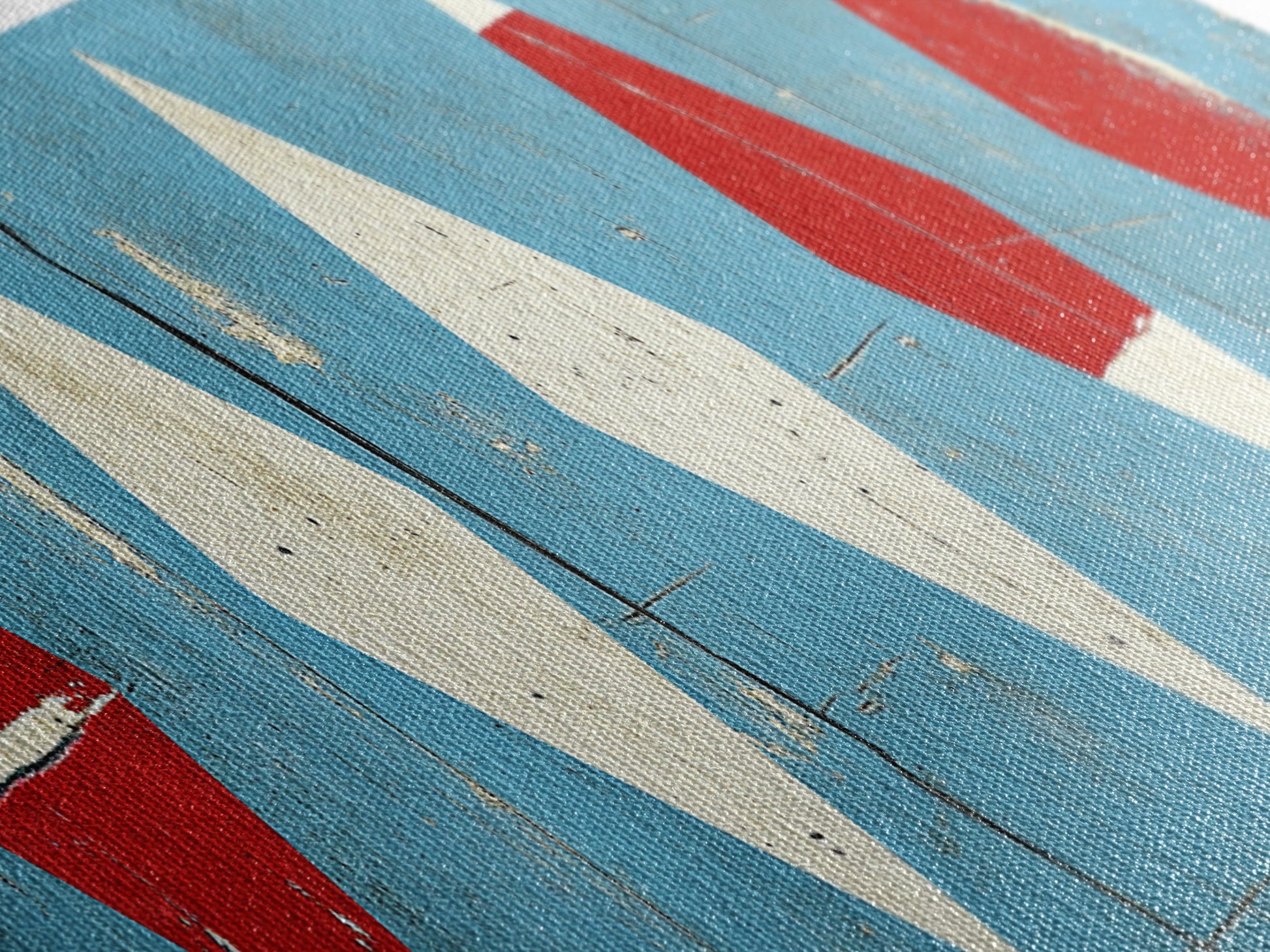 Red & White Diamonds - Framed Canvas Print - Rustic / Distressed MCM Mashup Home Decor - Turquoise Background