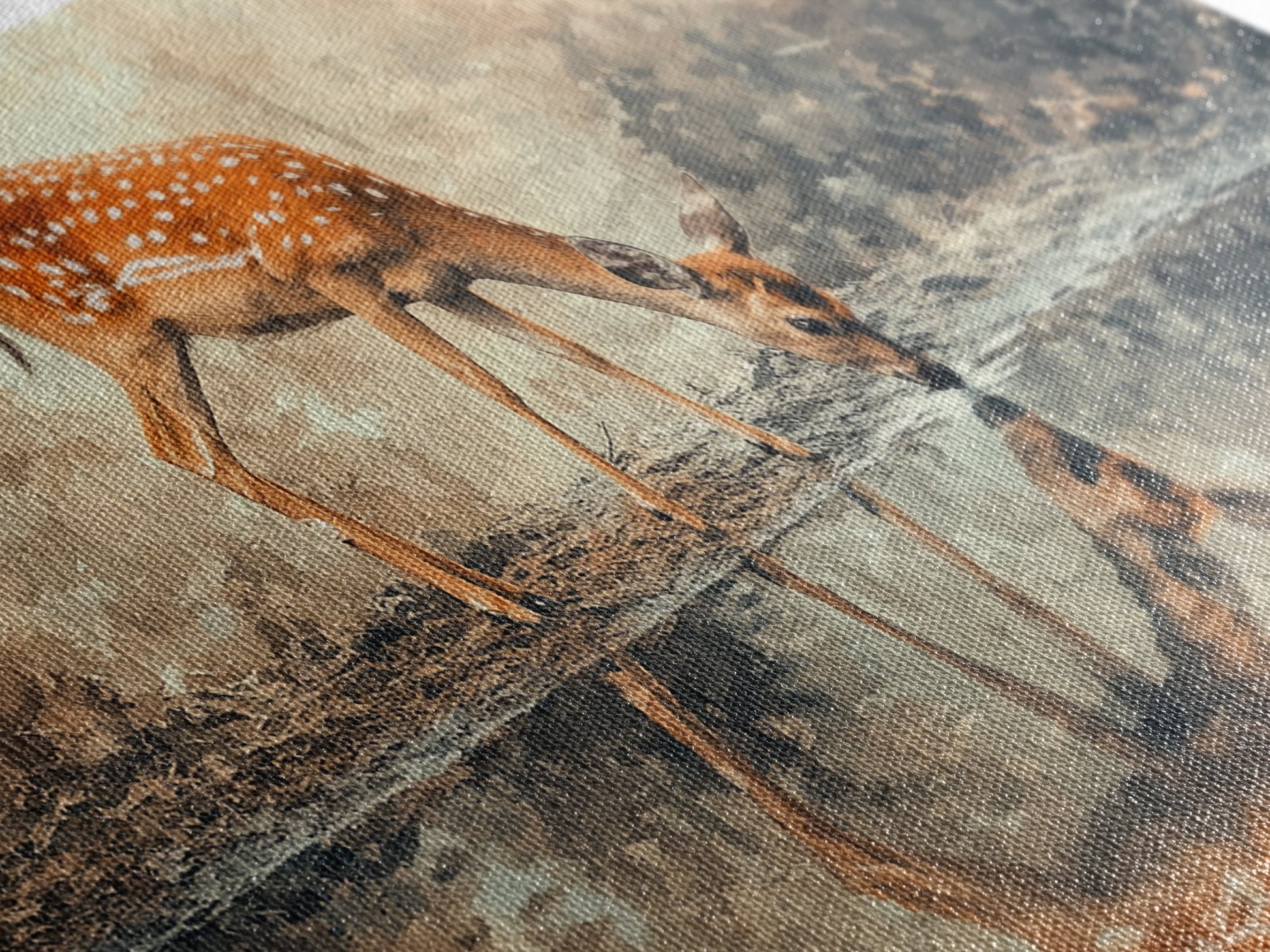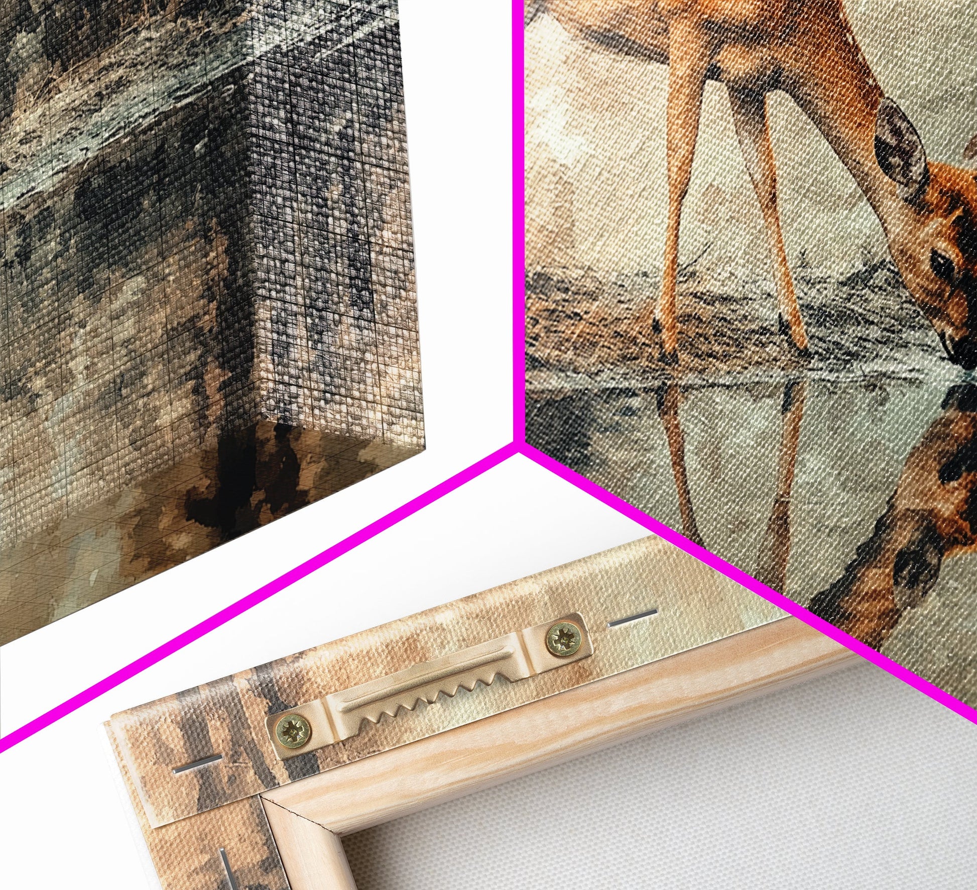 Reflection of a Deer Drinking Water - Framed Canvas Print - Cute Farmhouse Wall Art - Farmhouse Decor