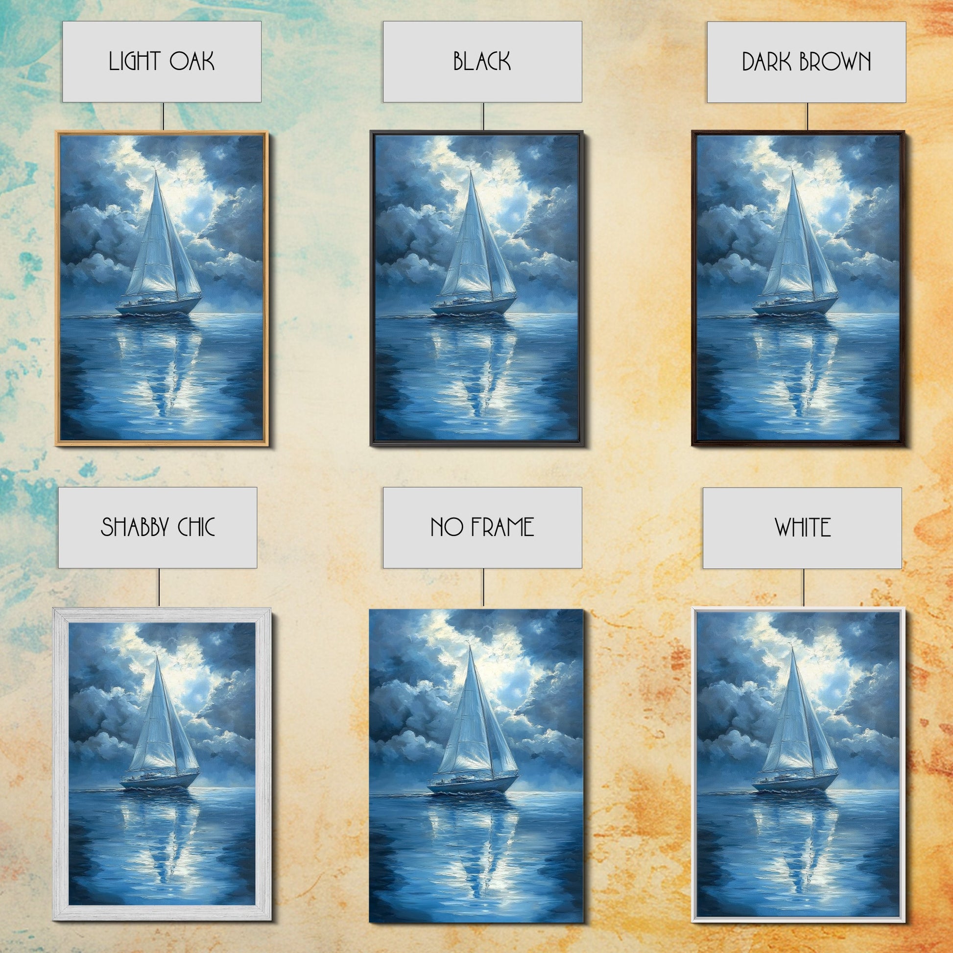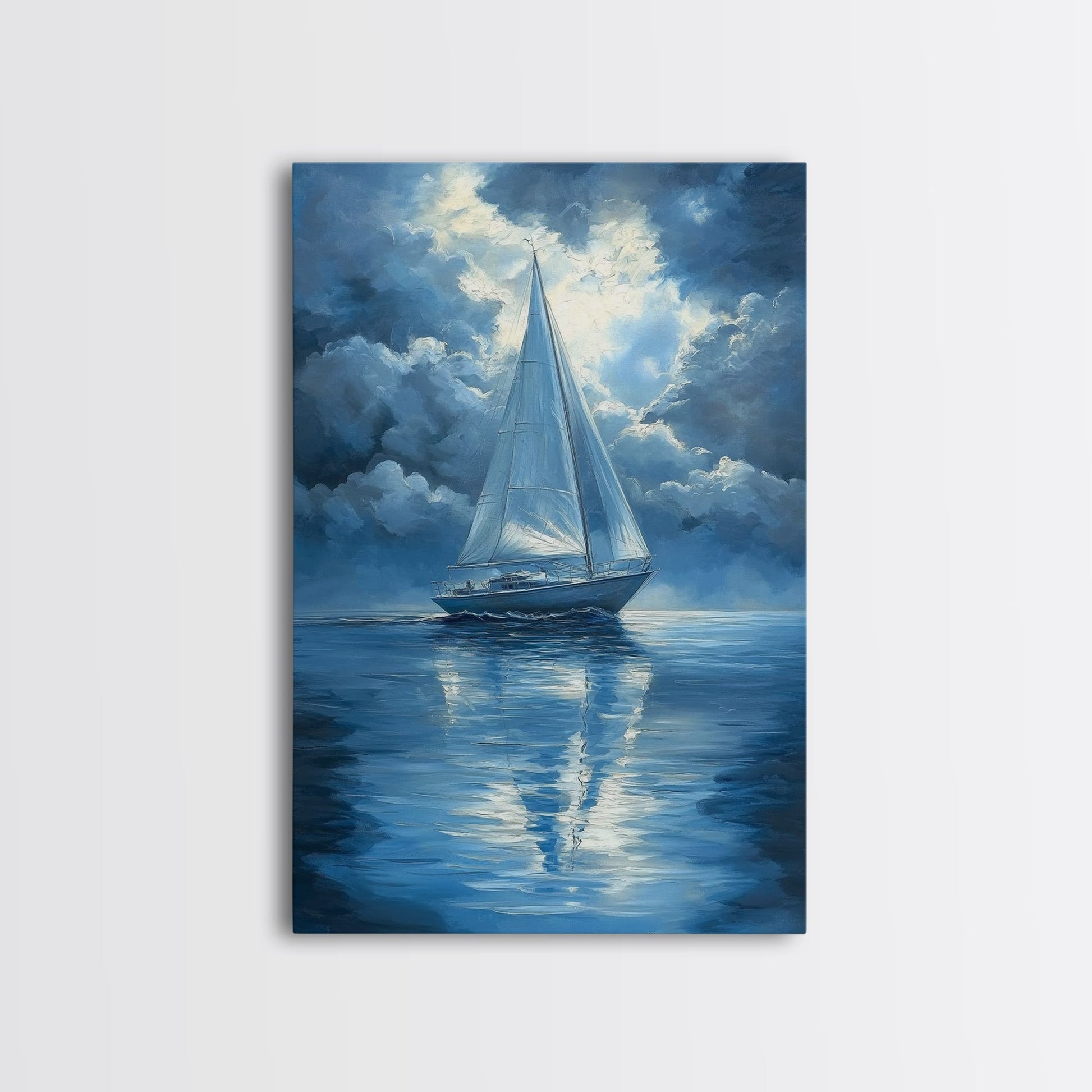 Reflections of a Sail Boat under a Full Moon Framed Canvas Print, Nautical Decor, Sail Boat Oil painting, Sailboat Painting, Nautical Home Decor