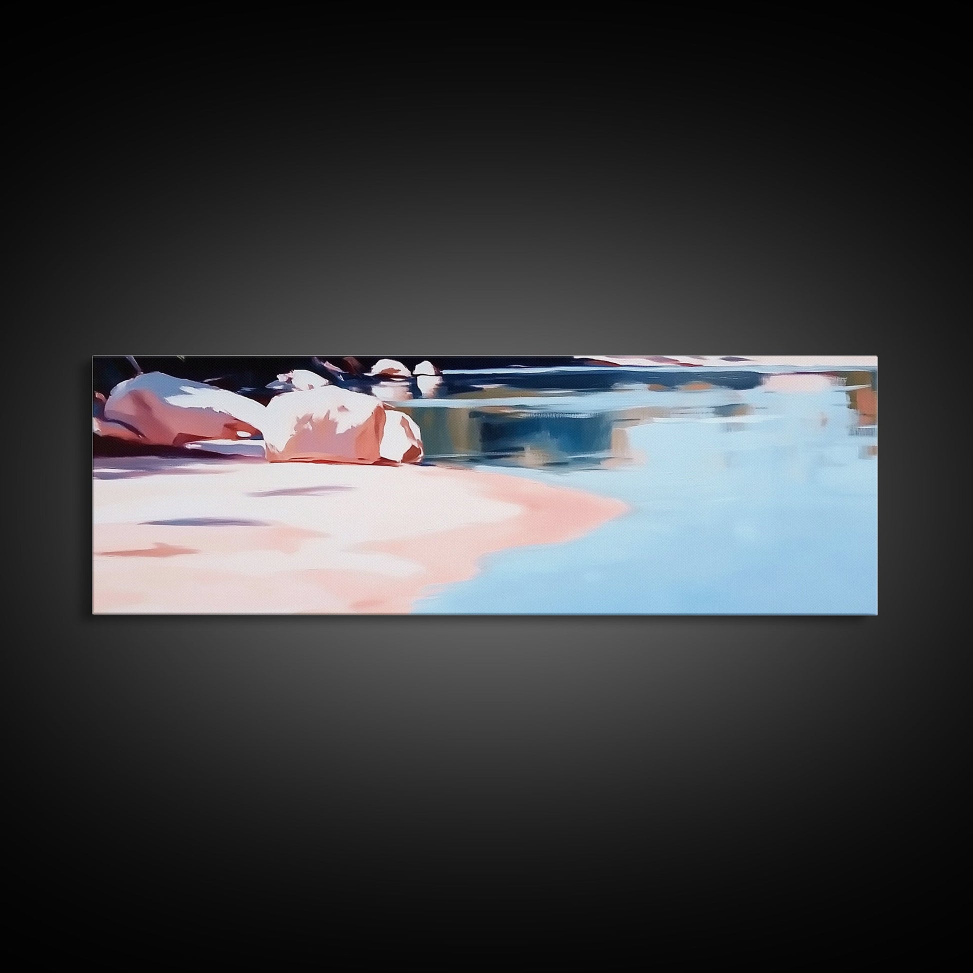 Reflections on Water, Tranquil Lakeside Scene, Minimalist Nature Art, Canvas Print, Serene Blue Tones, Relaxing Wall Art, Office Decor