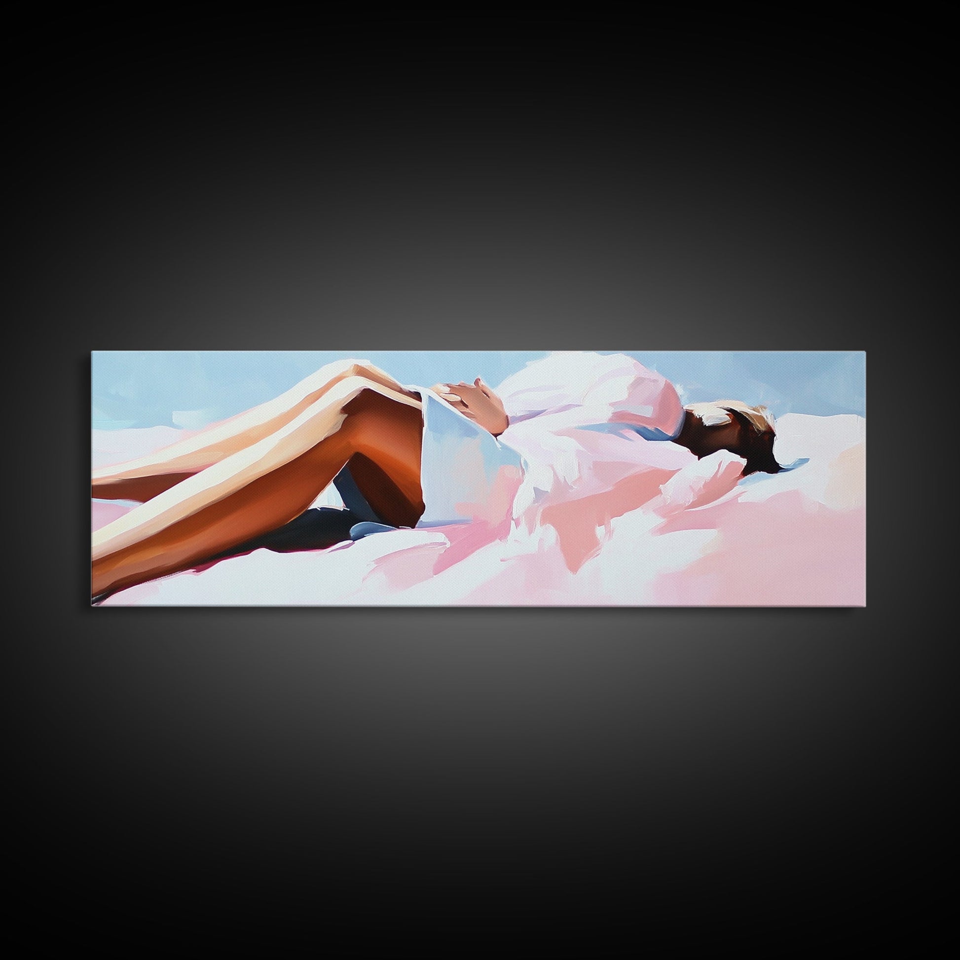 Relaxing On Beach, Summer Vibes, Serene Escape, Coastal Canvas Print, Bedroom Wall Art, Minimalist Decor, Pastel Beach Aesthetic