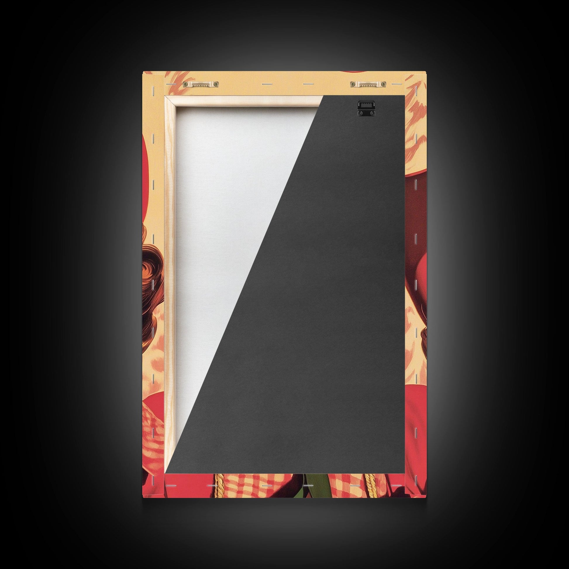 Retro 50s Style Cowgirl Wall Art, Framed Canvas, Vintage Style 50s Art, Fall or Christmas Wall Art