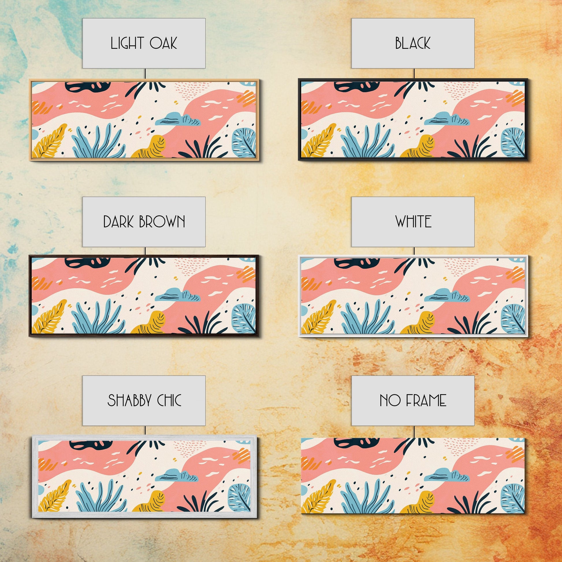 Retro Art From the 90s, Framed Canvas Print, High School Art, Abstract Extra Wide Panoramic Painting, Retro Vibes Home Decor