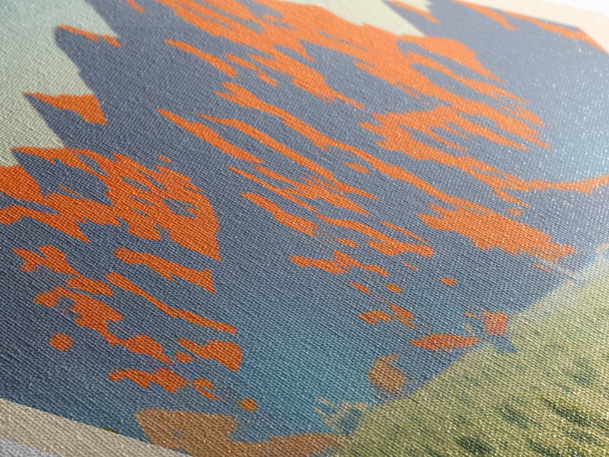 Most of our canvases are made in the USA, with the exception of canvases ordered with the light oak unstained frames, and any large canvases (24x48, 30x60, 16x48 and 20x60) ordered WITH a frame. These are temporarily made in and shipped from Europe, while we try to find a more consistent supplier in the USA.