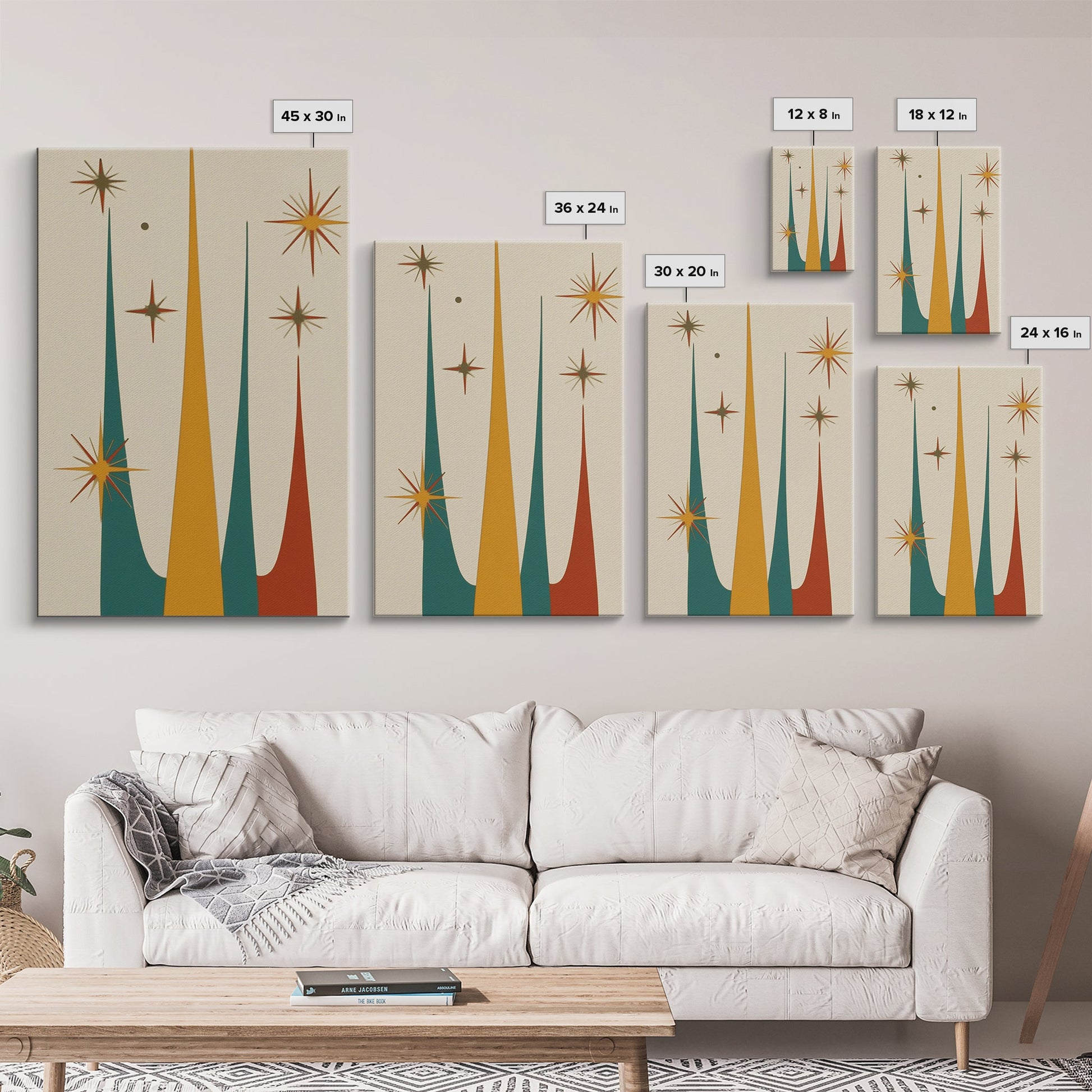Retro Mid Century Modern Star Burst, 1950s Style Wall Art, Canvas Print, Star Burst Canvas, Retro Home Decor, Starburst Wall Art