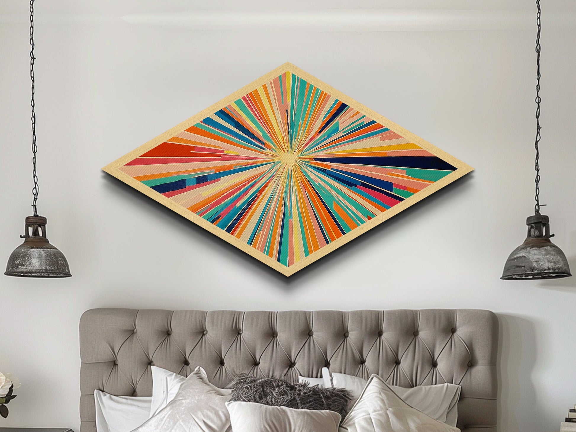 Retro Midcentury Modern Diamond Shaped Canvas Art Print, Color Burst, Green, Yellow and Red Swirl, Colorful Above Sofa Art