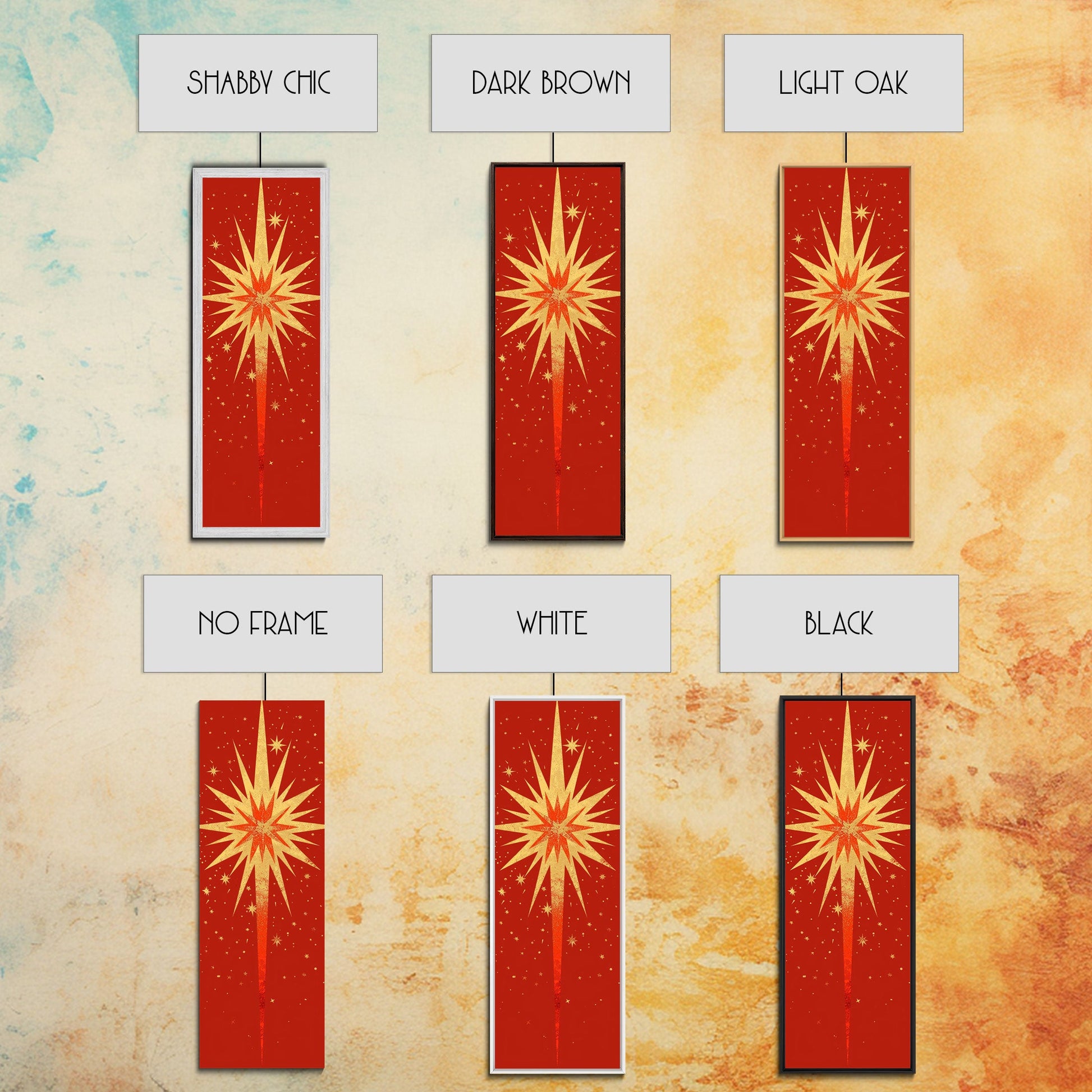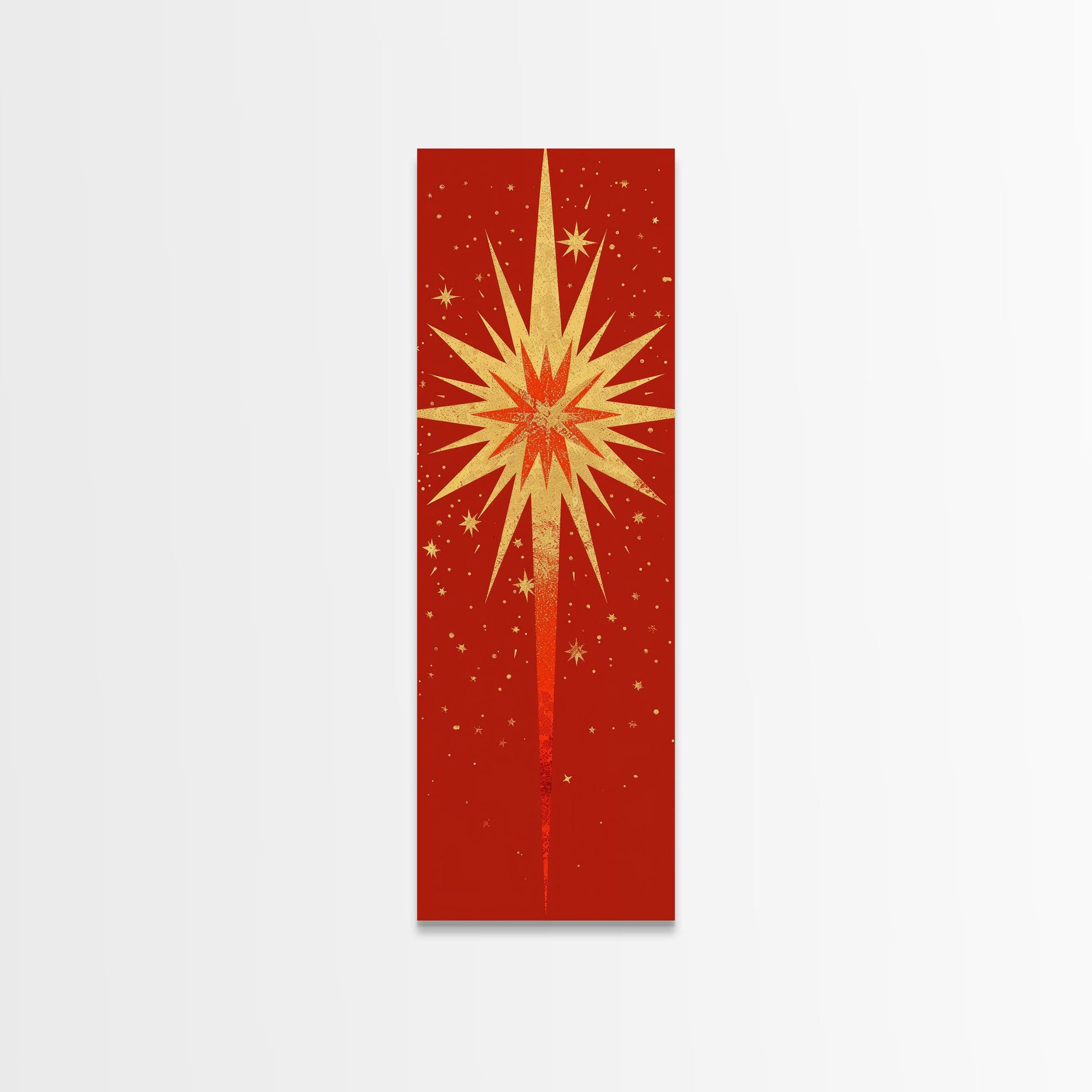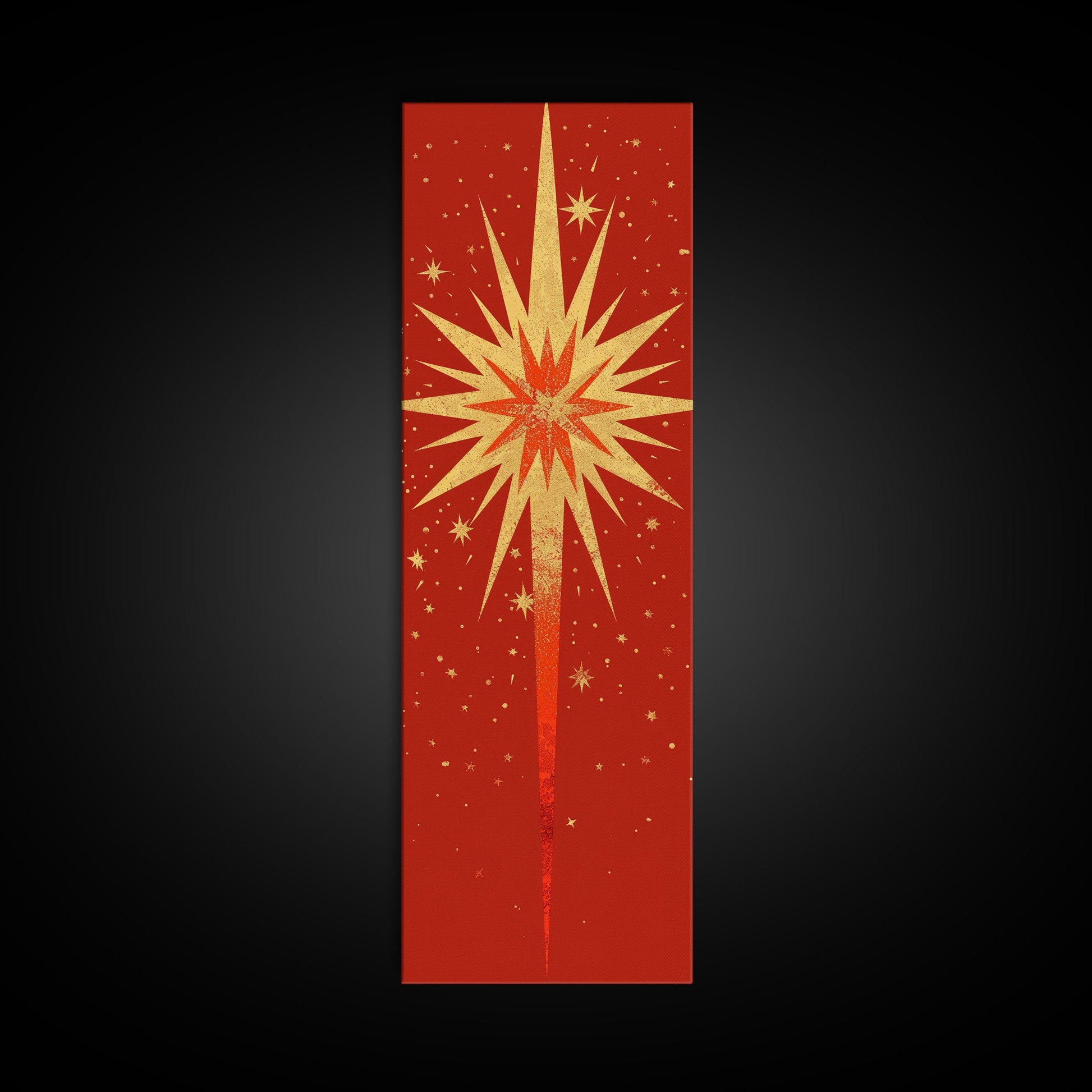 Retro Sunburst Art on Distressed Background - Framed Canvas Print, Midcentury Modern Skinny Art, Tall Wall Art for Living Room or Bedroom Decor