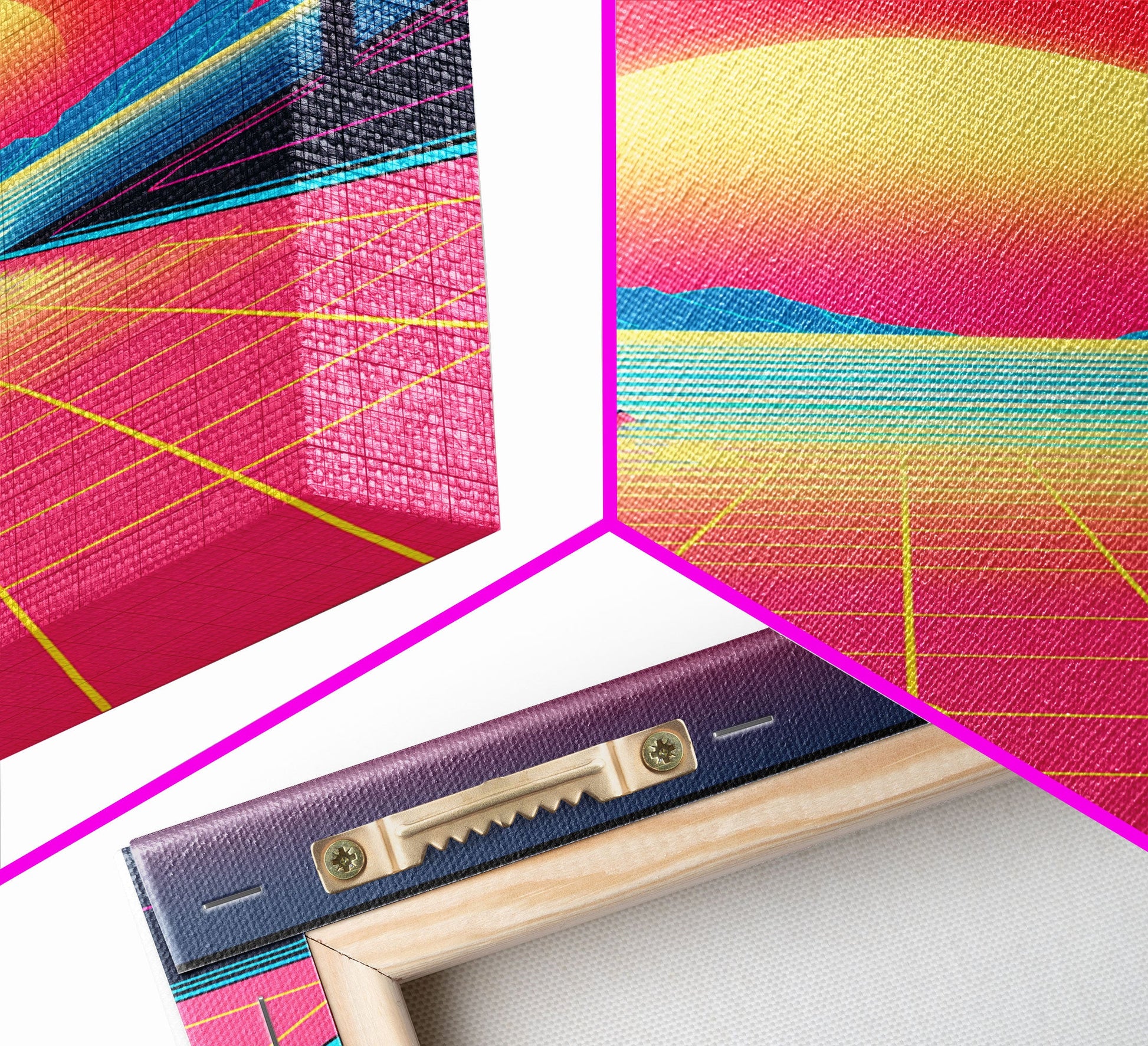 Retro Synthwave Sunset Canvas Print w/ Infinite Pool & Palm Trees | Framed Wall Decor | Framed Canvas Prints | Living Room Decor