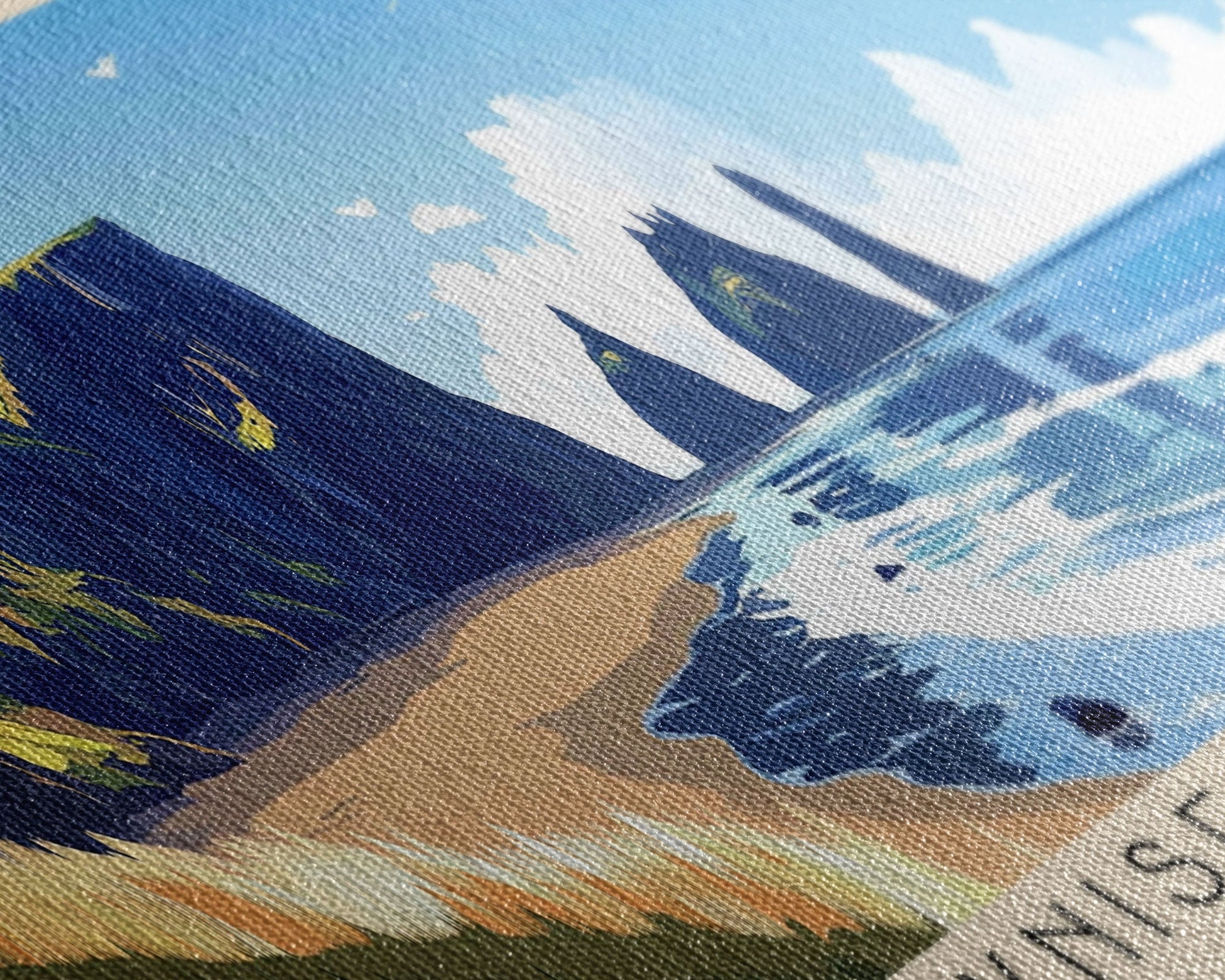 Most of our canvases are made in the USA, with the exception of canvases ordered with the light oak unstained frames, and any large canvases (24x48, 30x60, 16x48 and 20x60) ordered WITH a frame. These are temporarily made in and shipped from Europe, while we try to find a more consistent supplier in the USA.