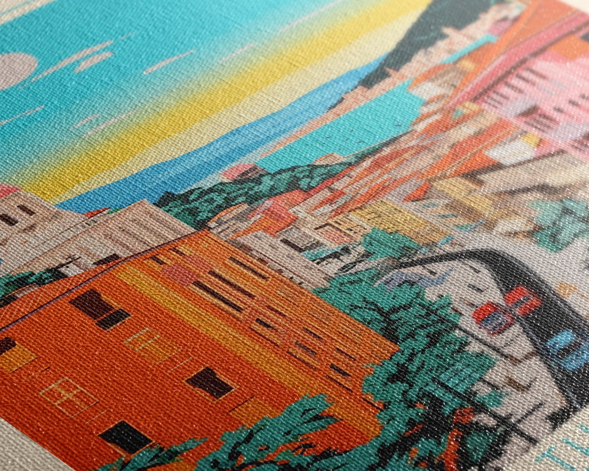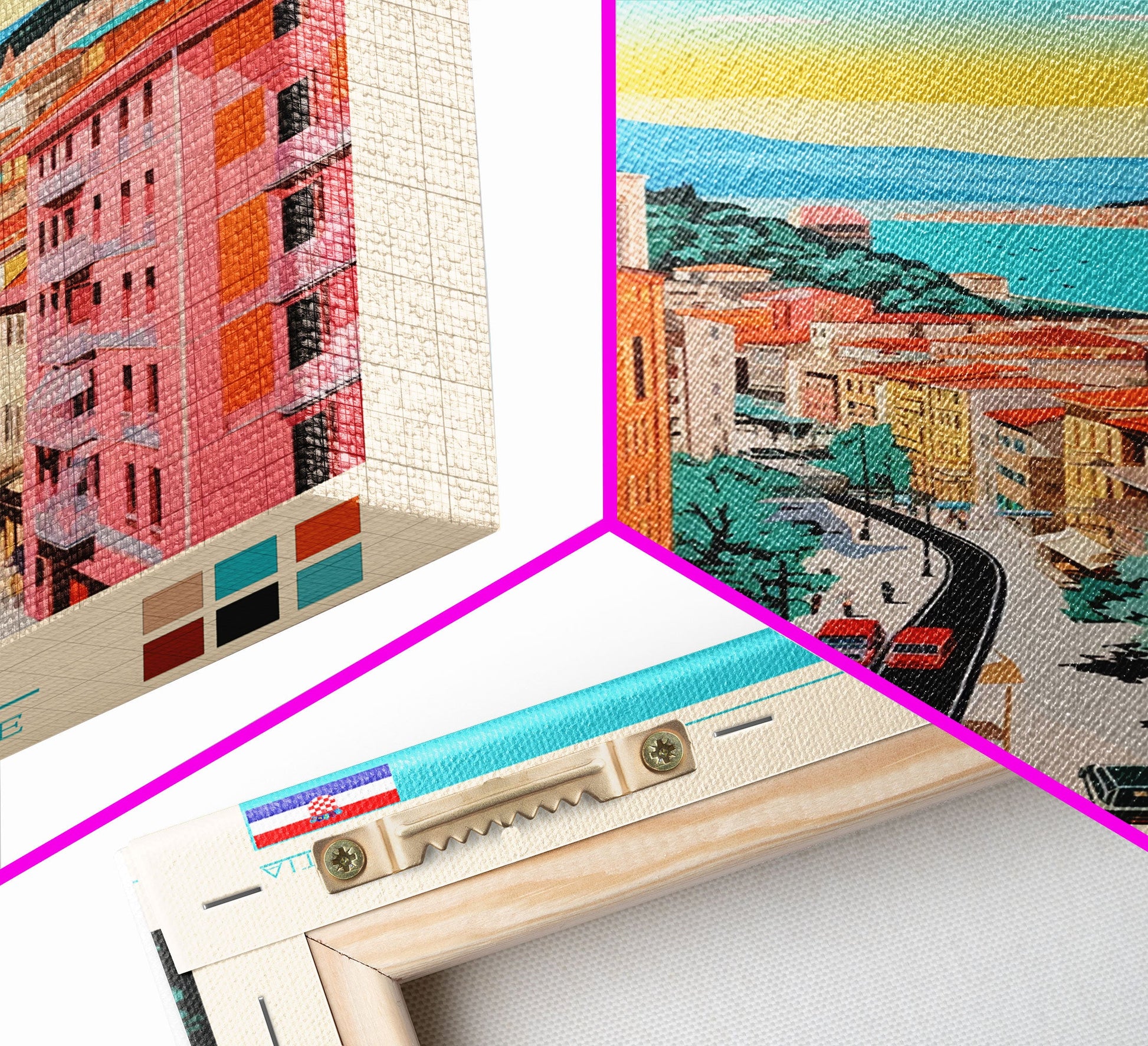 Rijeka Croatia Travel Poster Framed Canvas Print, Midcentury Modern Art, Pop Art Wall Decor, Scenic Wall Art, Living Room Decoration, Office Art