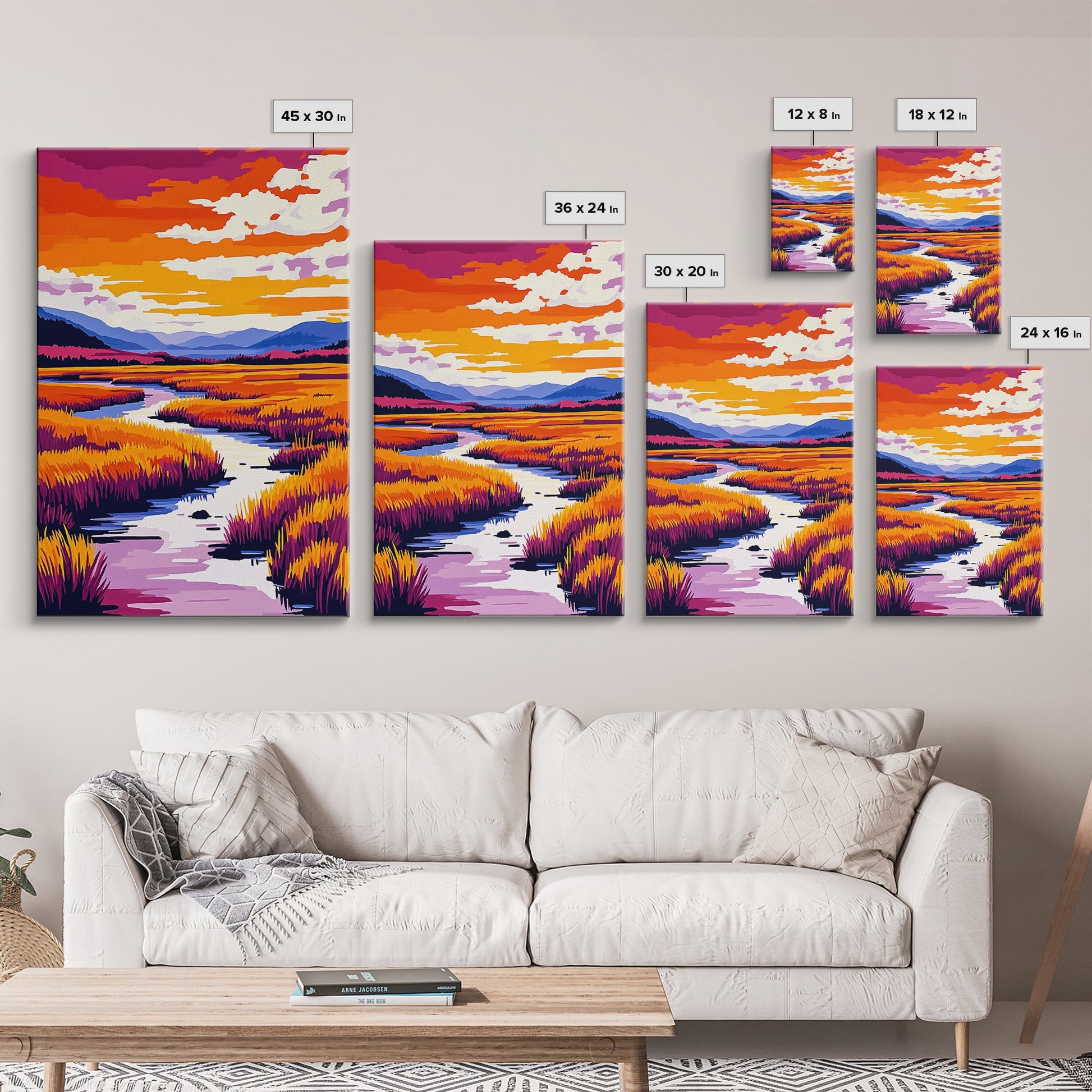 River Landscape Painting, Autumn Wall Art, Nature Inspired Print, Warm Color Palette, Framed Canvas Print, Cozy Living Room Decor