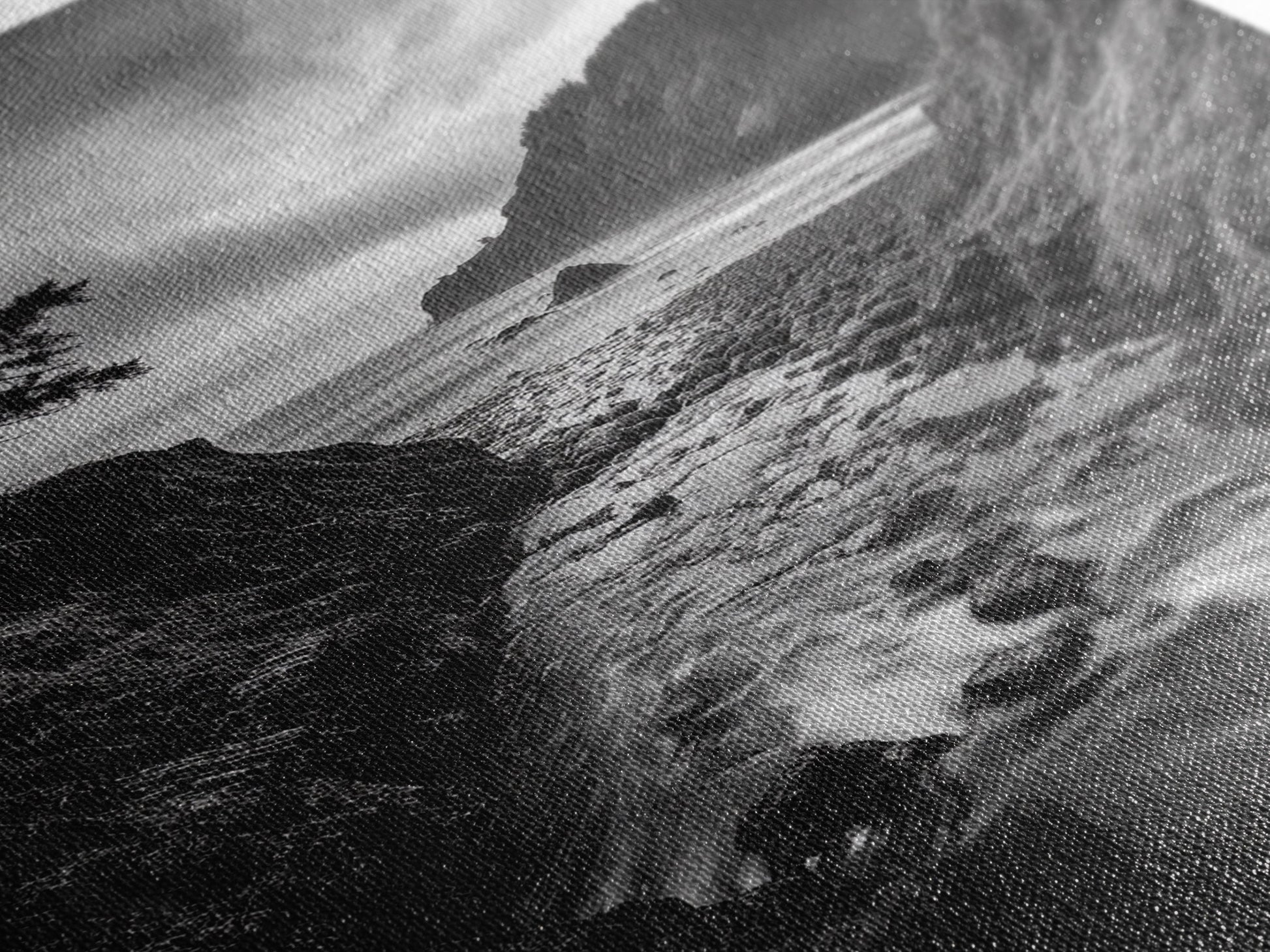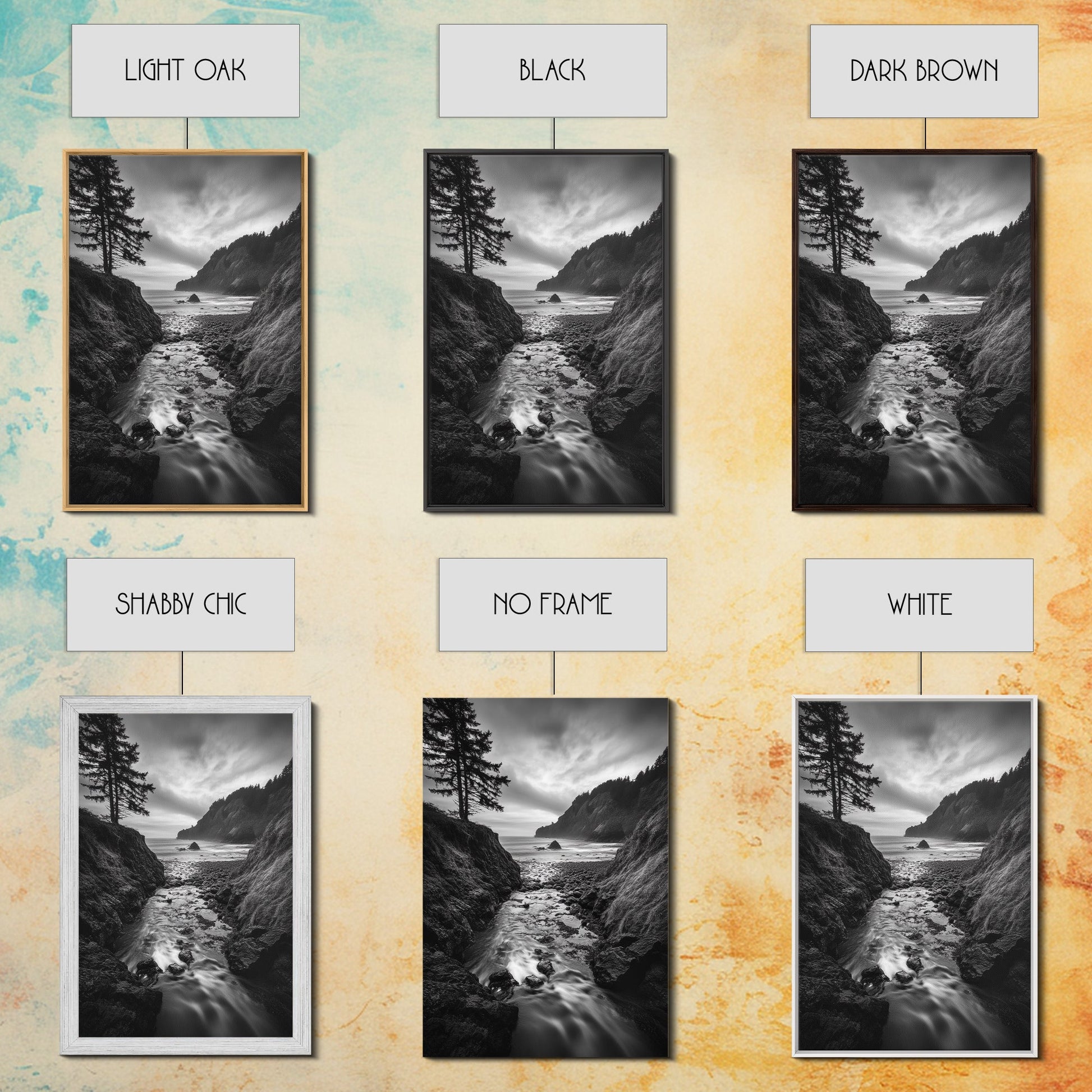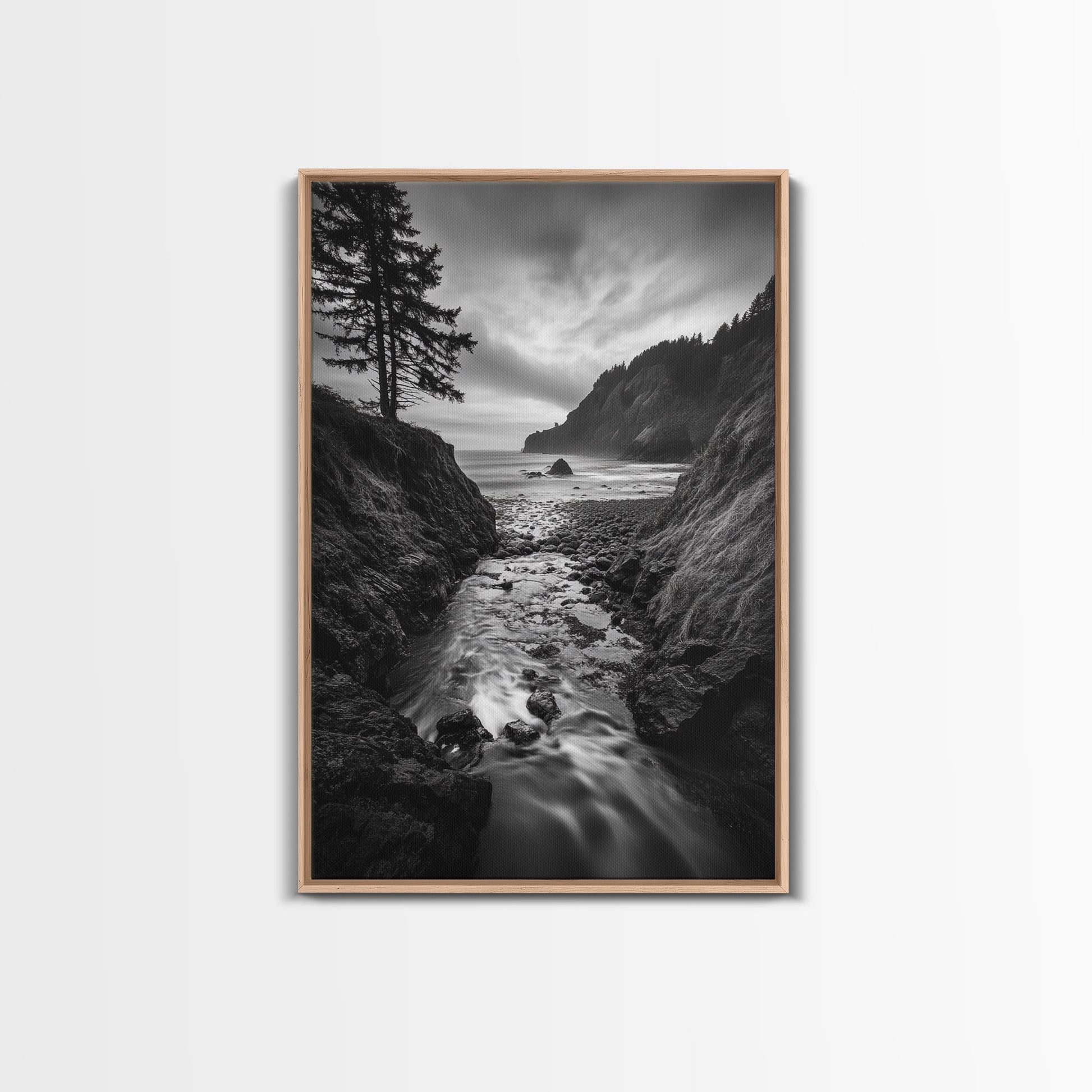 River Meets Sea, Forest Coast, Rugged Beauty, Sunset Flow, Canvas Print, Nature Wall Art, Moody Living Room Landscape