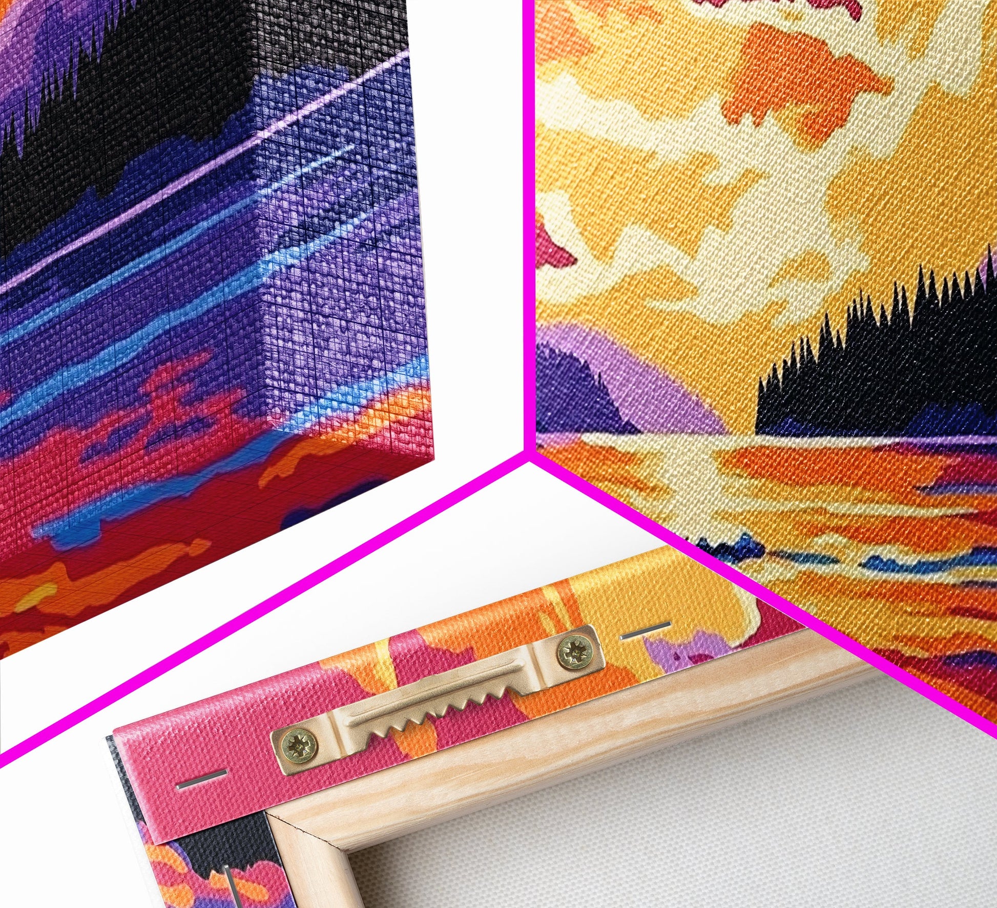 Hello and thank you for taking the time to view our modern high quality giclée artwork! We offer both posters and stretched canvas prints. Our posters are printed on Ultra Matte 60 lb / 230 GSM high quality photo paper, with a thickness of 10 mil. Our canvases are printed on museum grade 350 GSM canvas material with ECO friendly archival grade ink, then hand stretched and stapled over premium, FSC certified and shrink resistant frames. Designed and built to last a lifetime.