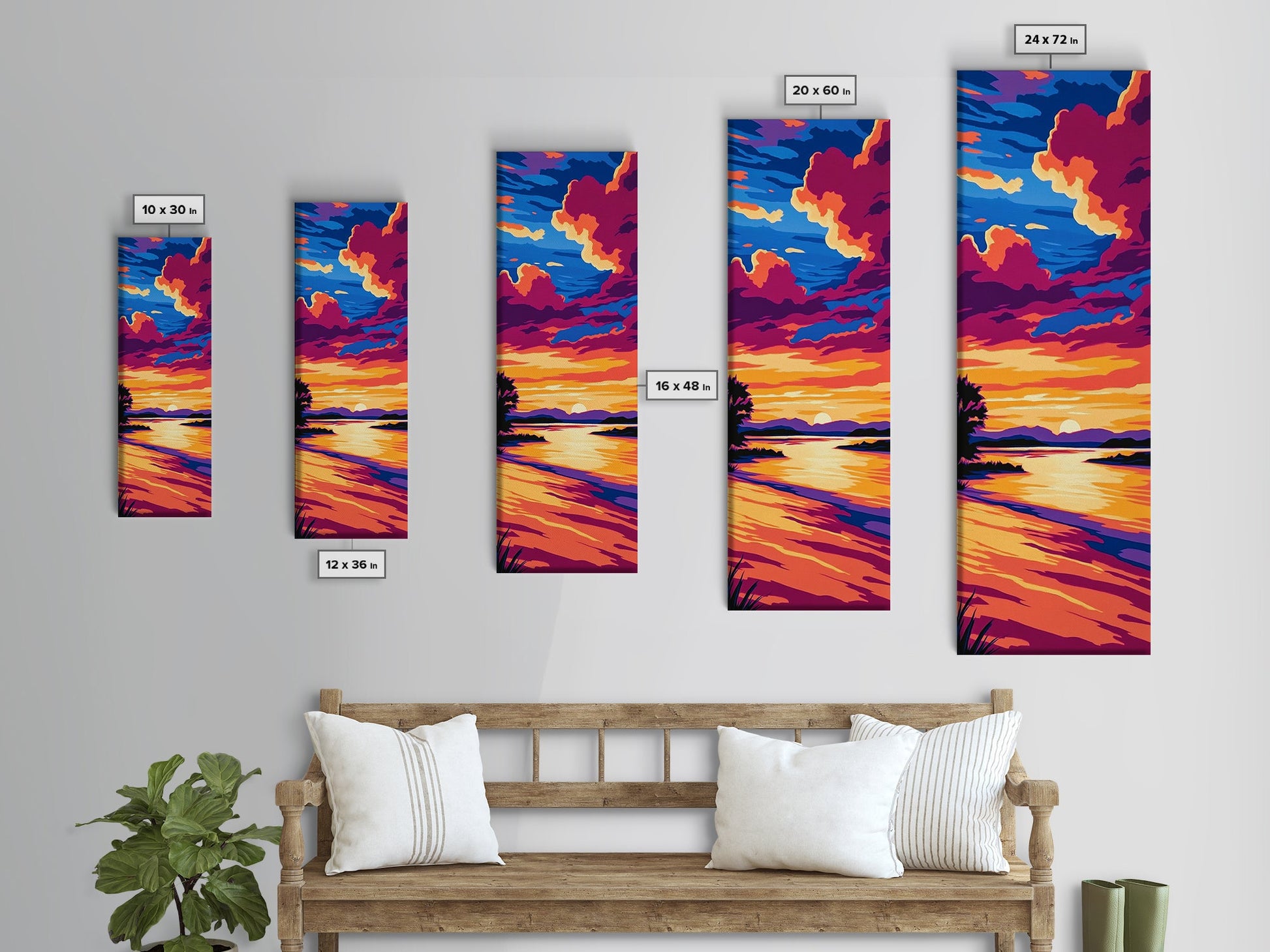 River Sunset, Serene View, Lake Reflection, Warm Colors, Peaceful Nature, Tranquil Scene, Cozy Home, Living Room, Canvas Print