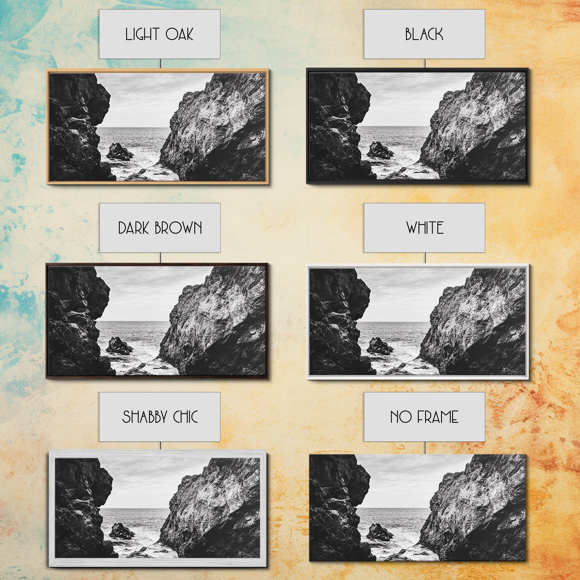 Rocky Coast View, Ocean Cliffs Art, Coastal Wilderness, Monochrome Seascape, Canvas Print, Bathroom Wall Art, Rustic Minimalist Style