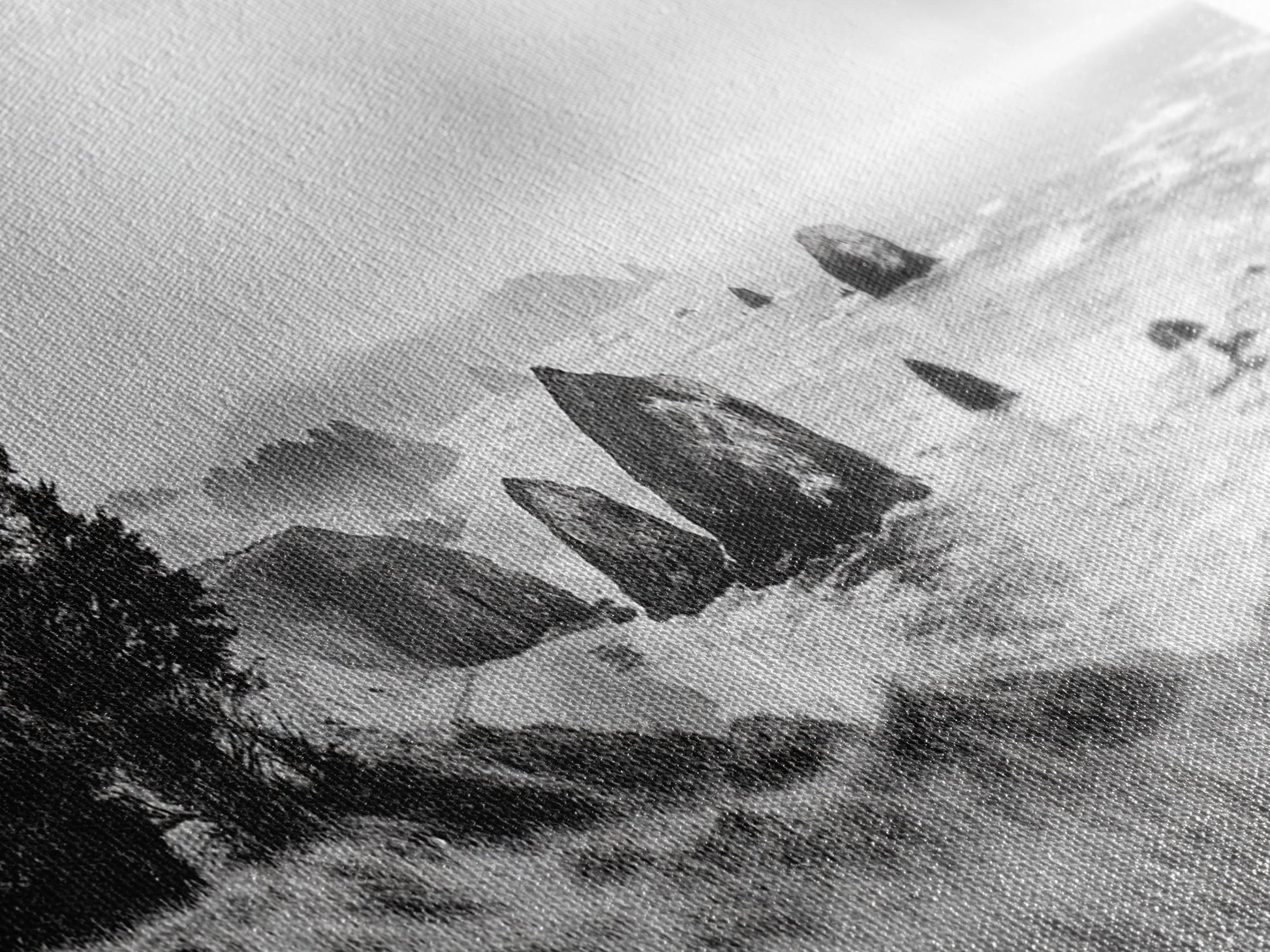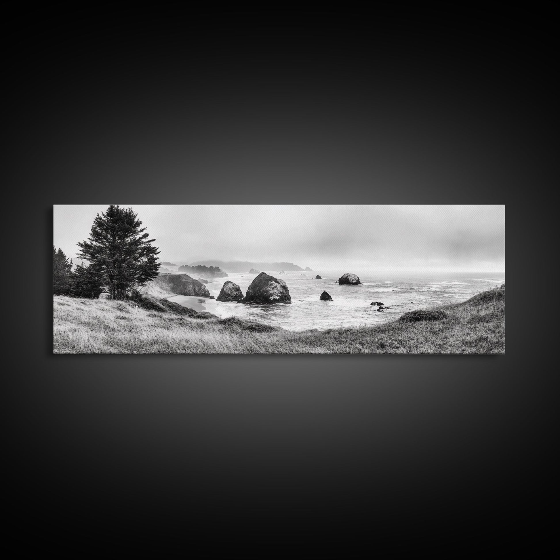 Rocky Coastline Mist, Ocean Cliffs, Foggy Seascape, Moody Decor, Canvas Print, Coastal Wall Art, Nature Photography, Living Room Decor