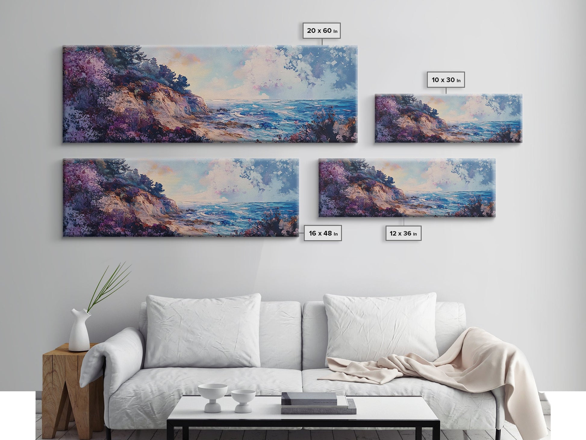 Rocky Shoreline Framed Canvas Print Vibrant Coastal Wall Art, Textured Ocean Scene, Sunset Beach Painting, Modern Boho Decor