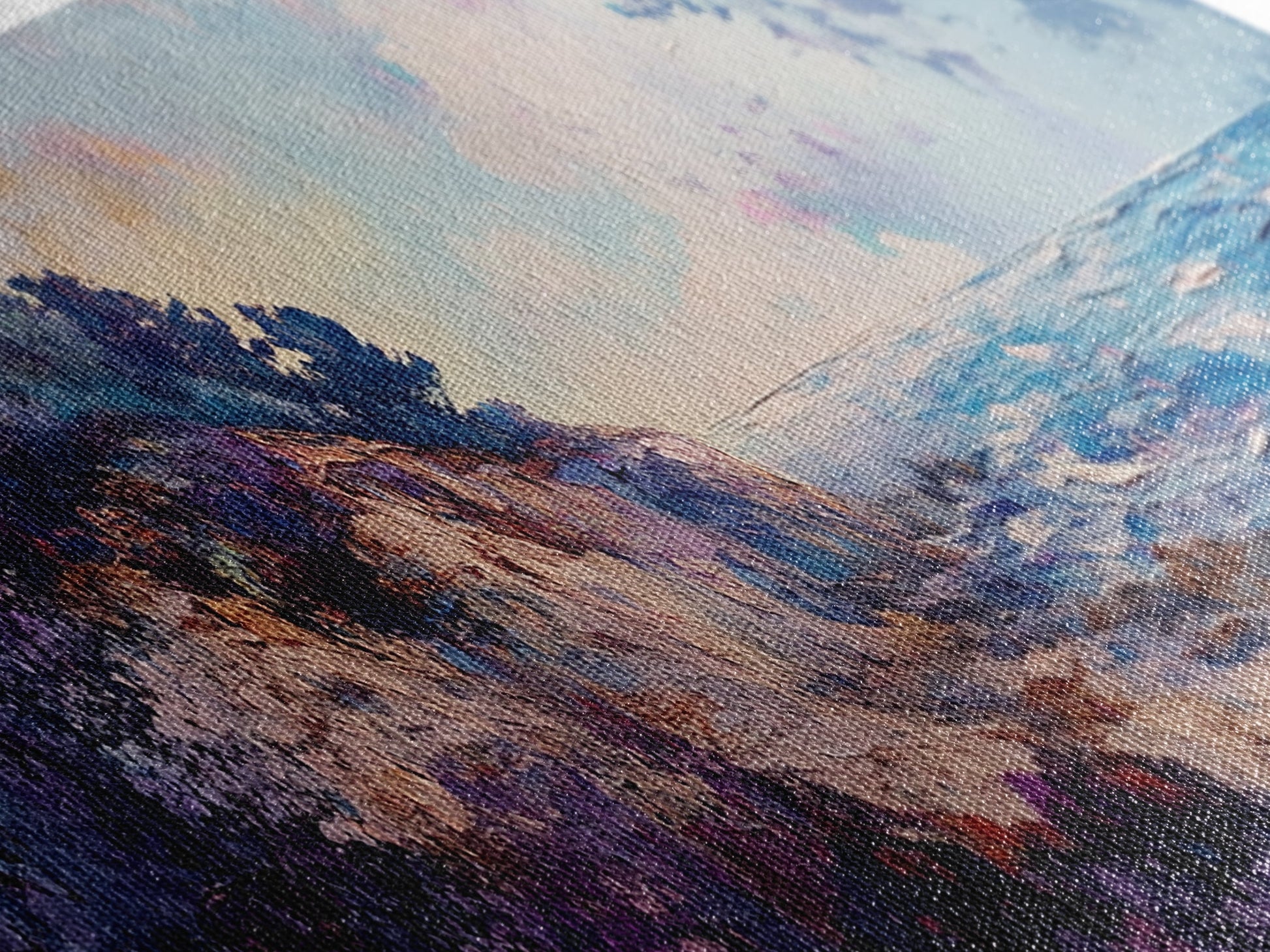 Most of our canvases are made in the USA, with the exception of canvases ordered with the light oak unstained frames, and any large canvases (24x48, 30x60, 16x48 and 20x60) ordered WITH a frame. These are temporarily made in and shipped from Europe, while we try to find a more consistent supplier in the USA.
