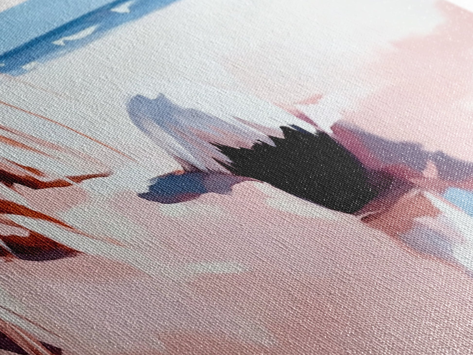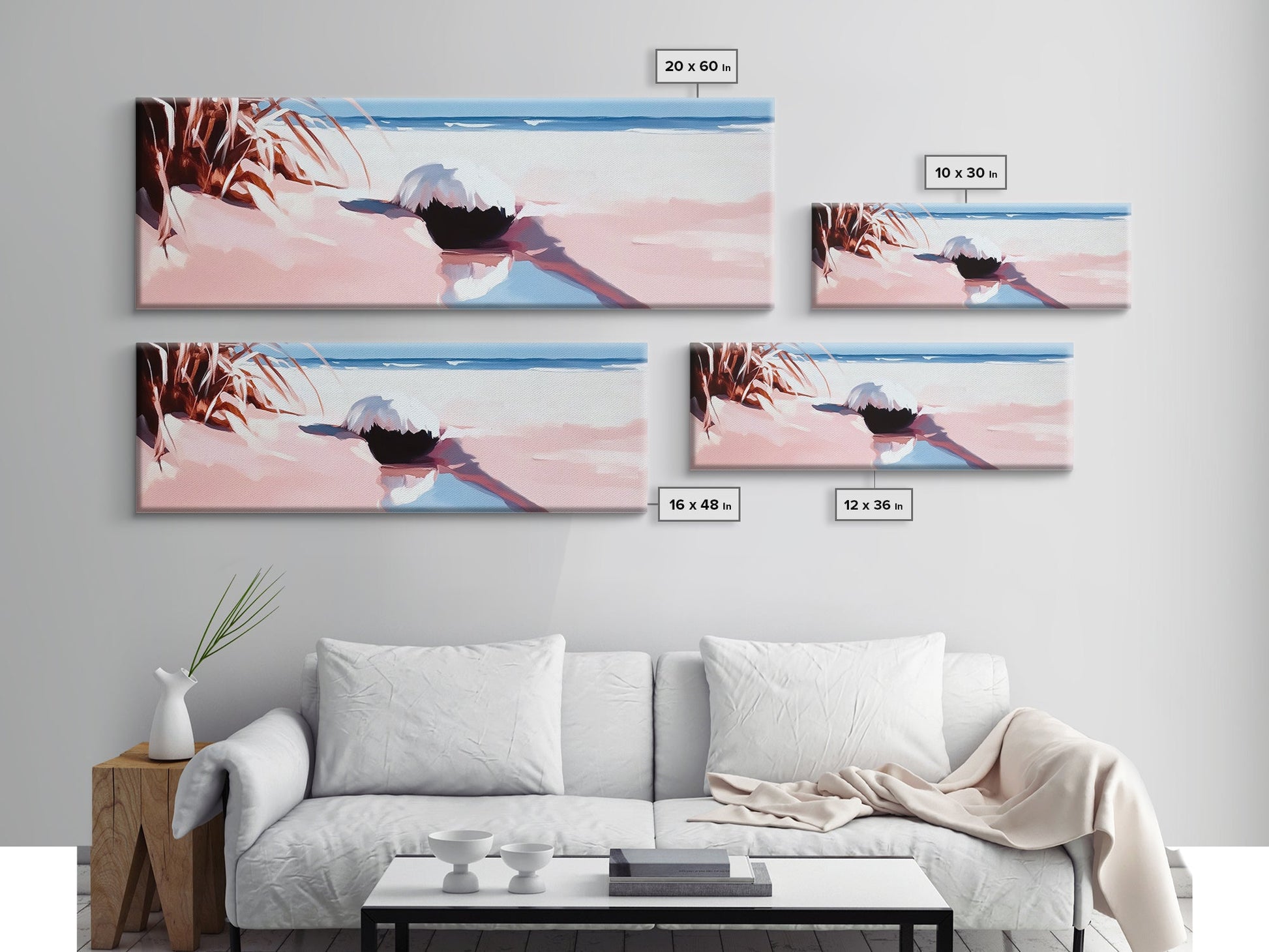 Romantic Beach Scene, Coastal Wall Art, Sunset Ocean Painting, Pastel Beach Framed Canvas Print, Living Room or Office Art