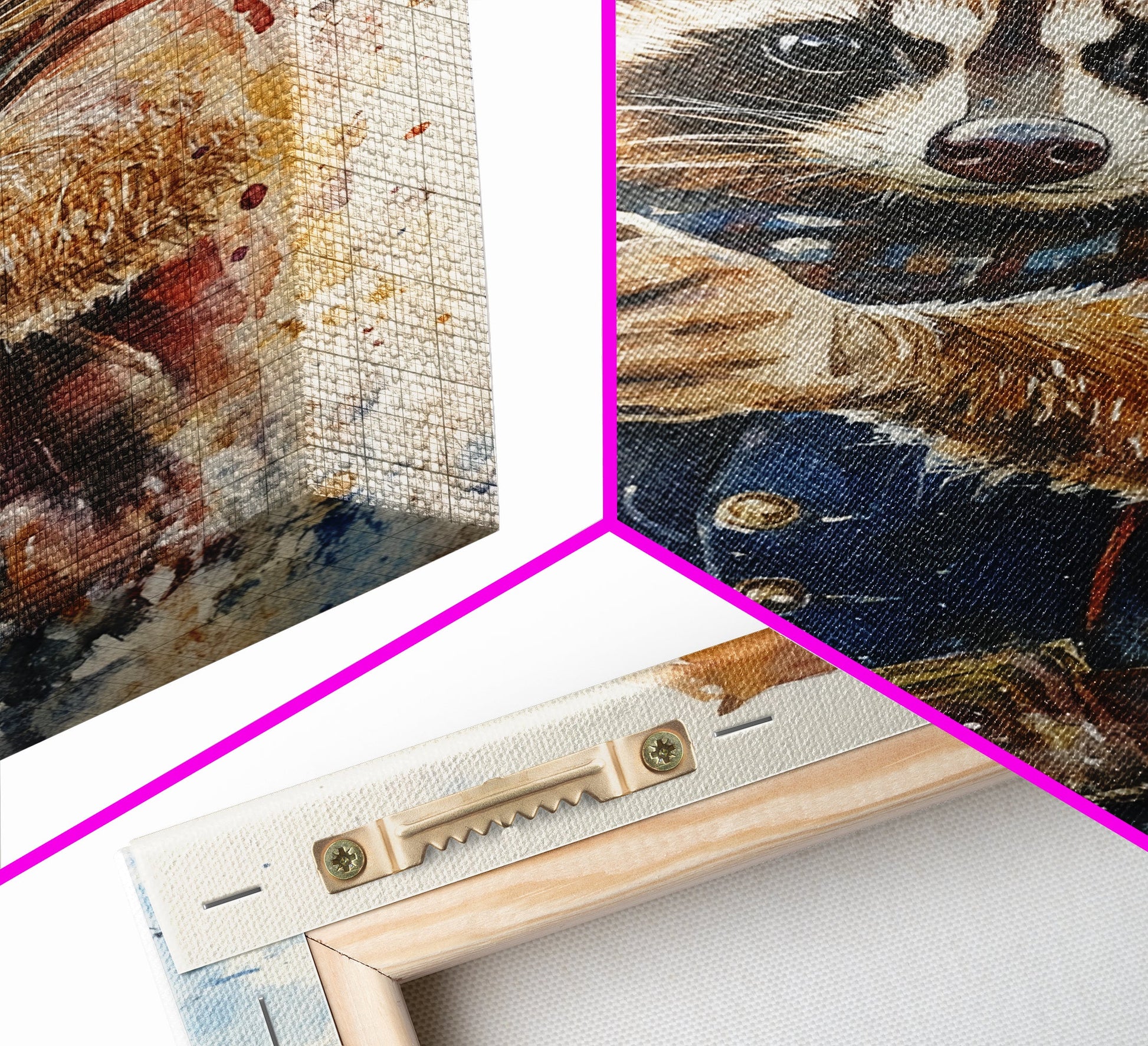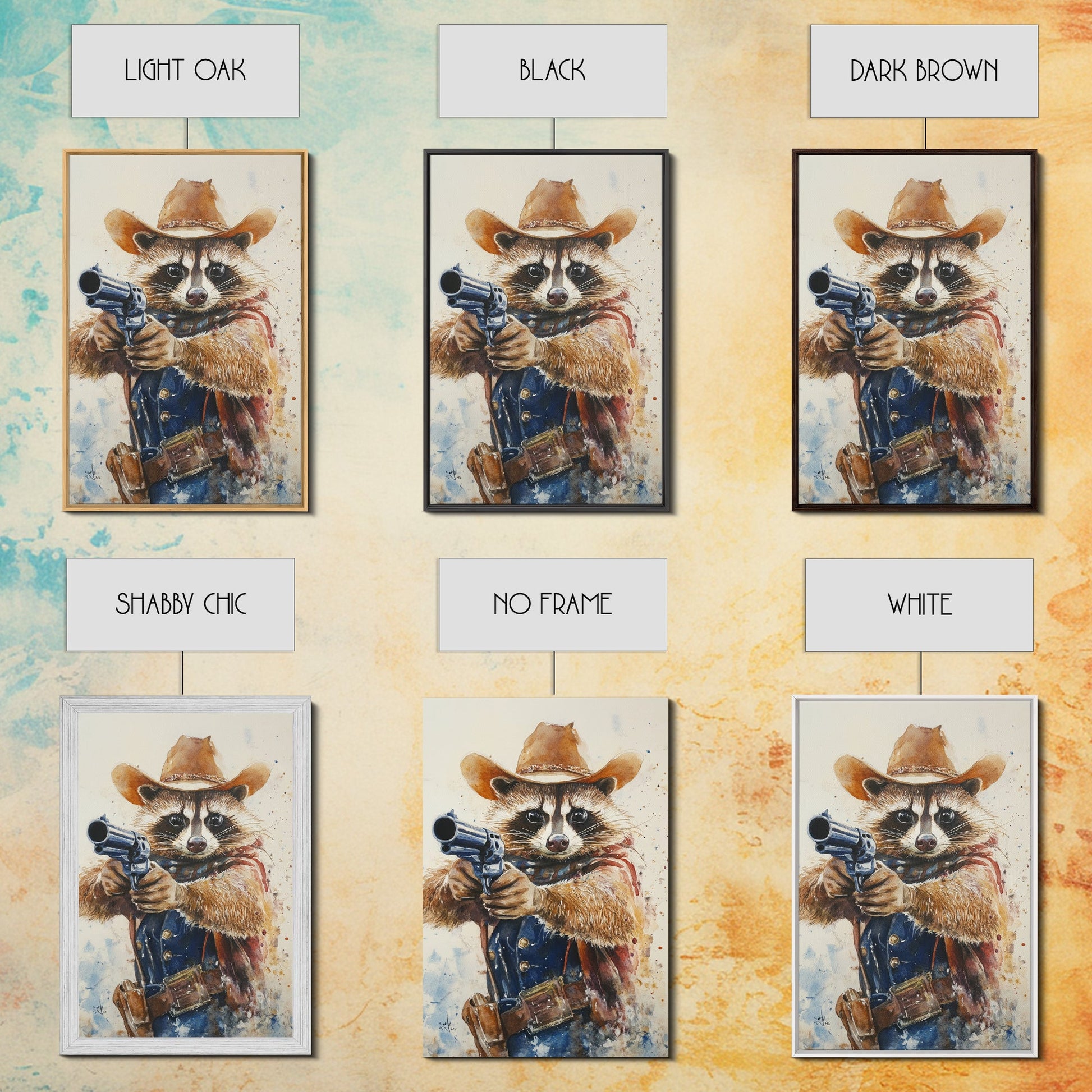 Rootin' Tootin' Racoon Cowboy, Framed Canvas Print, Ready to Hang, Racoon Painting