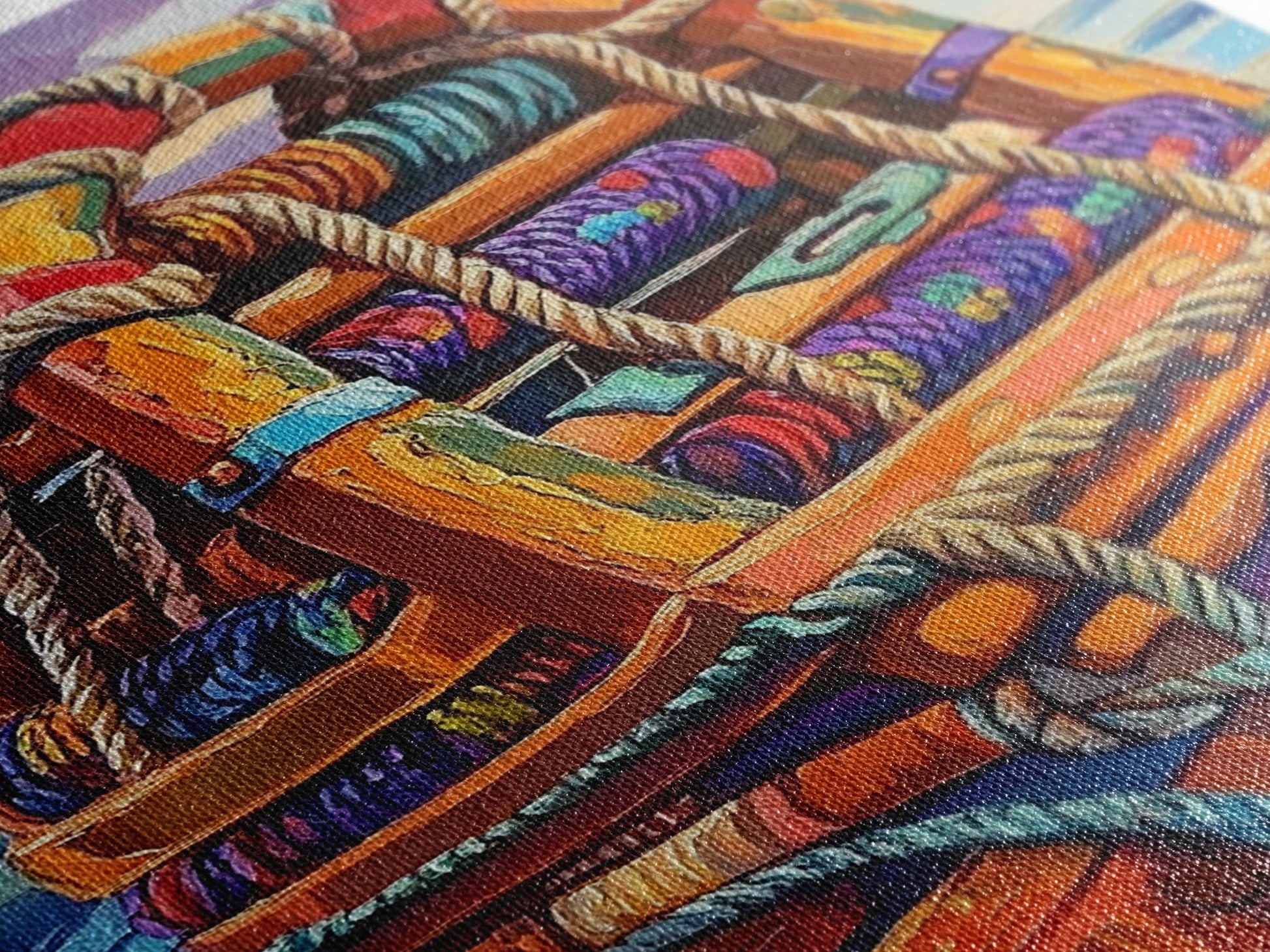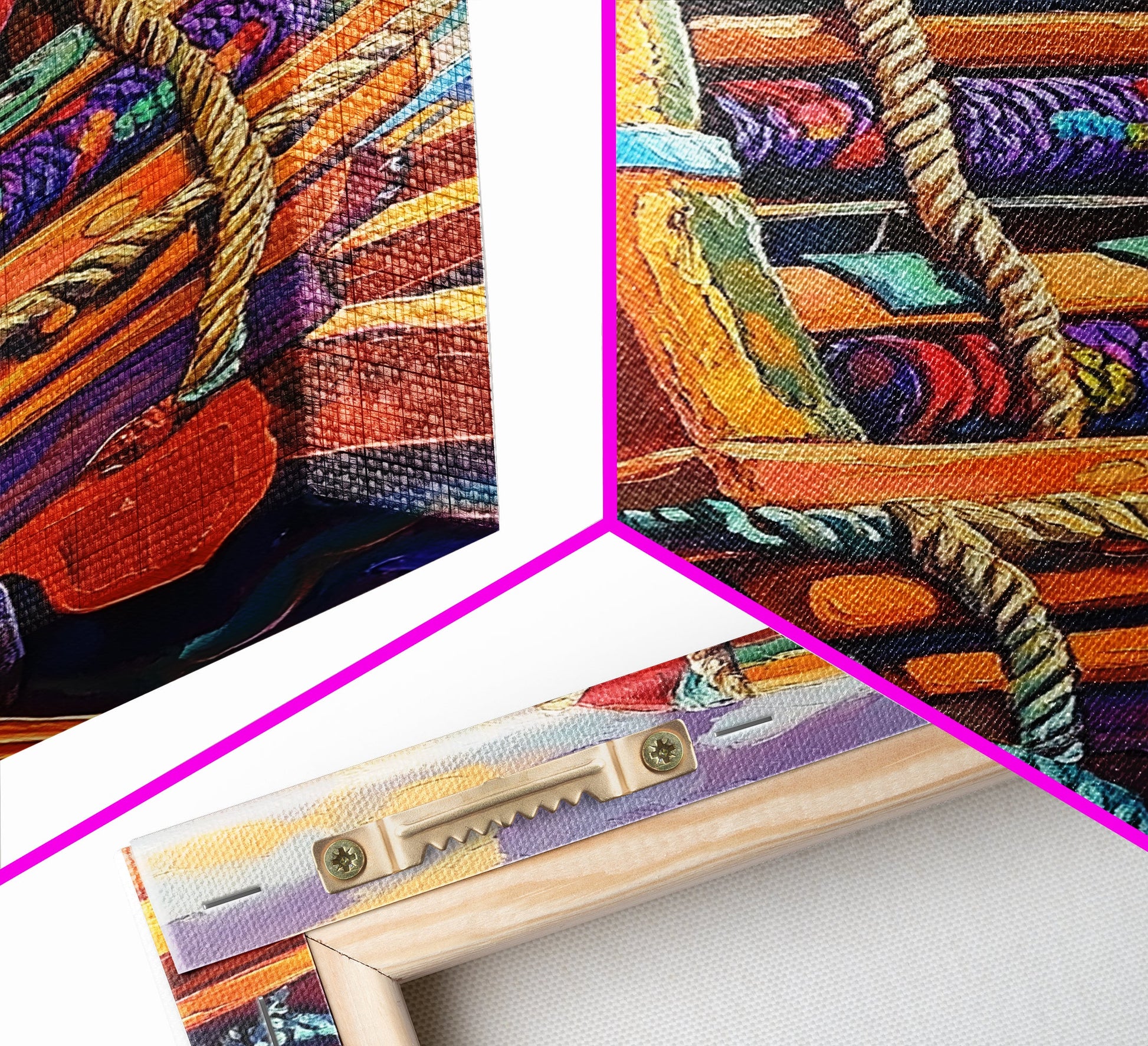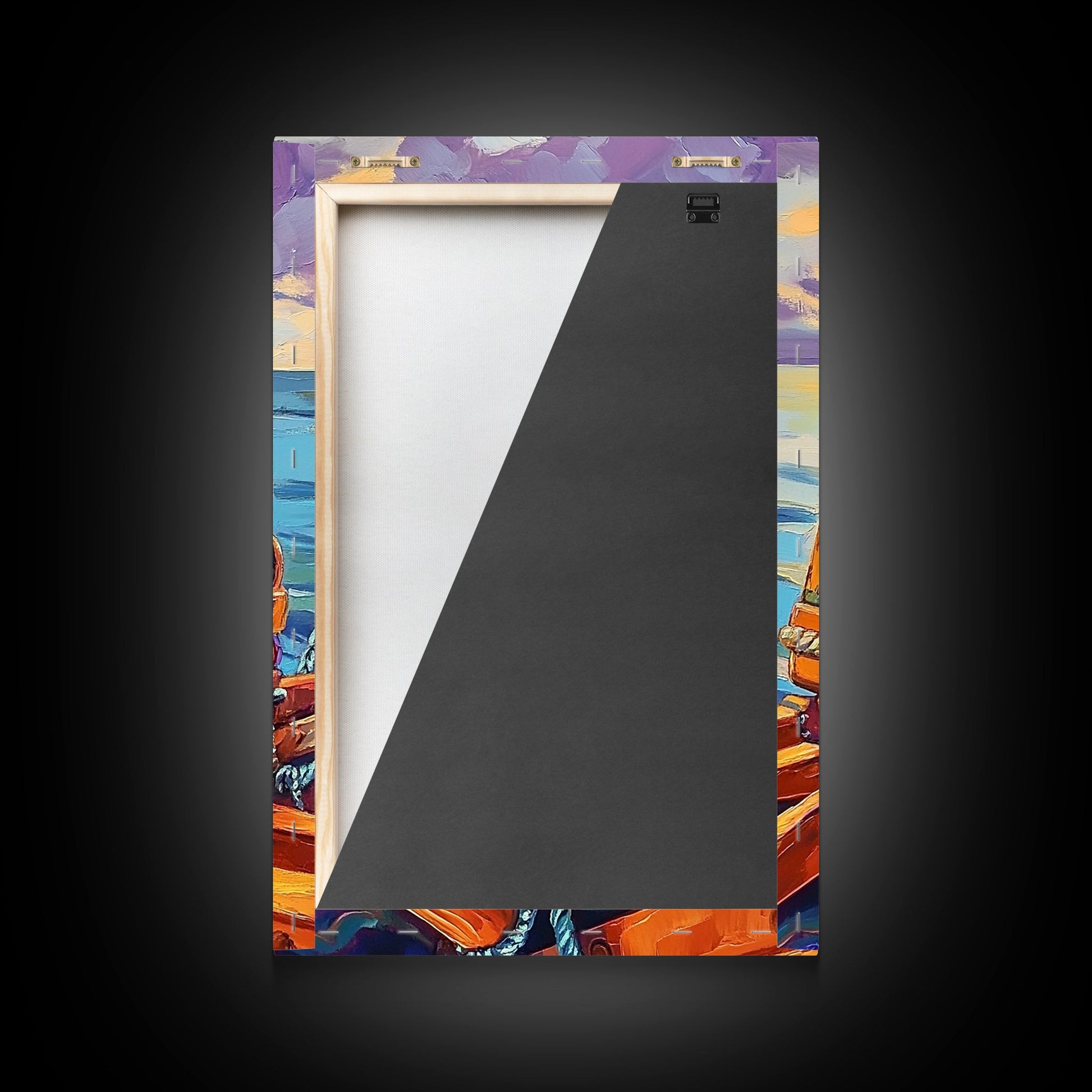 Rope Dock Sunset, Nautical, Framed Canvas Print, Nautical Rope Dockside Art, Sunset Painting, Coastal Seaside Wall Decor, Living Room Decor
