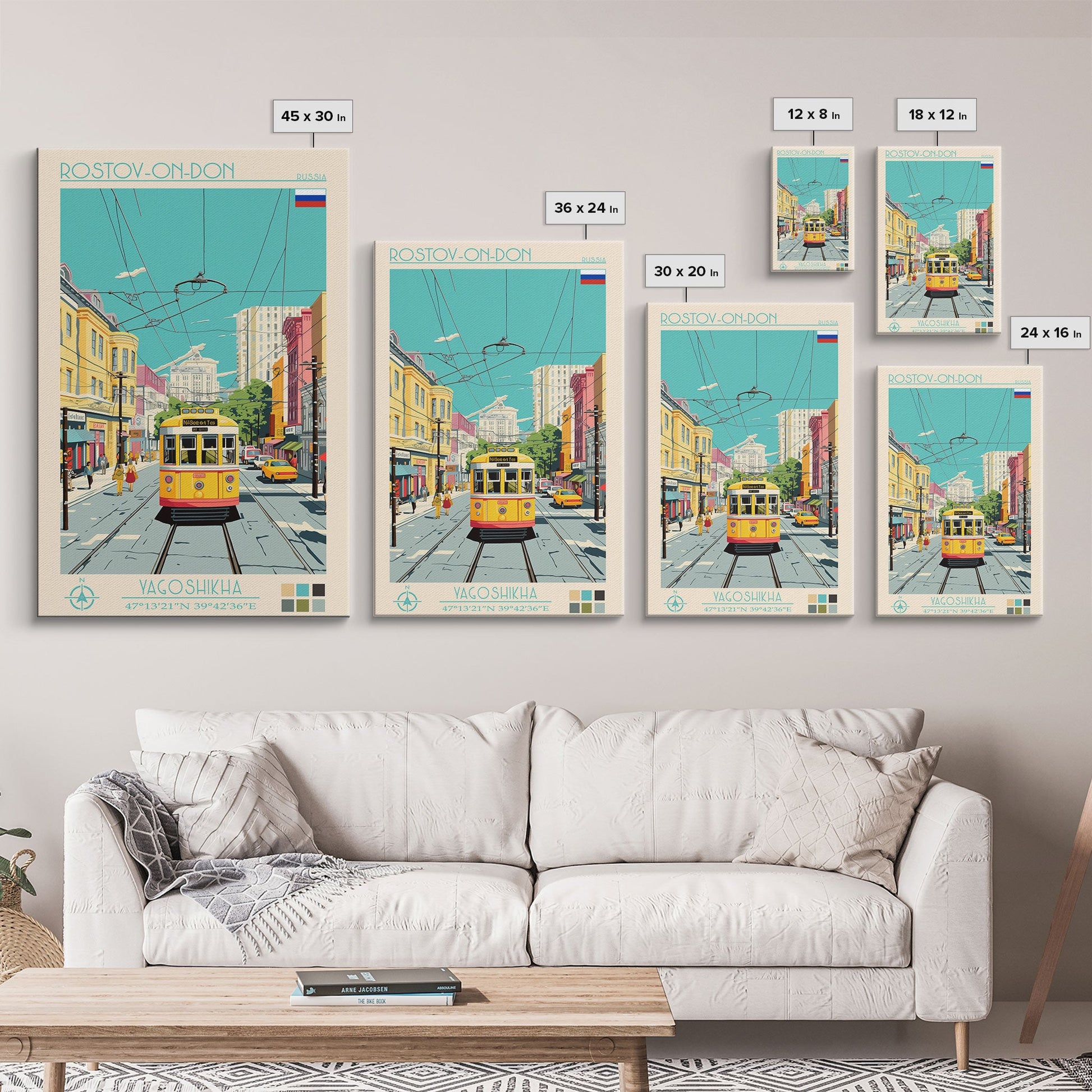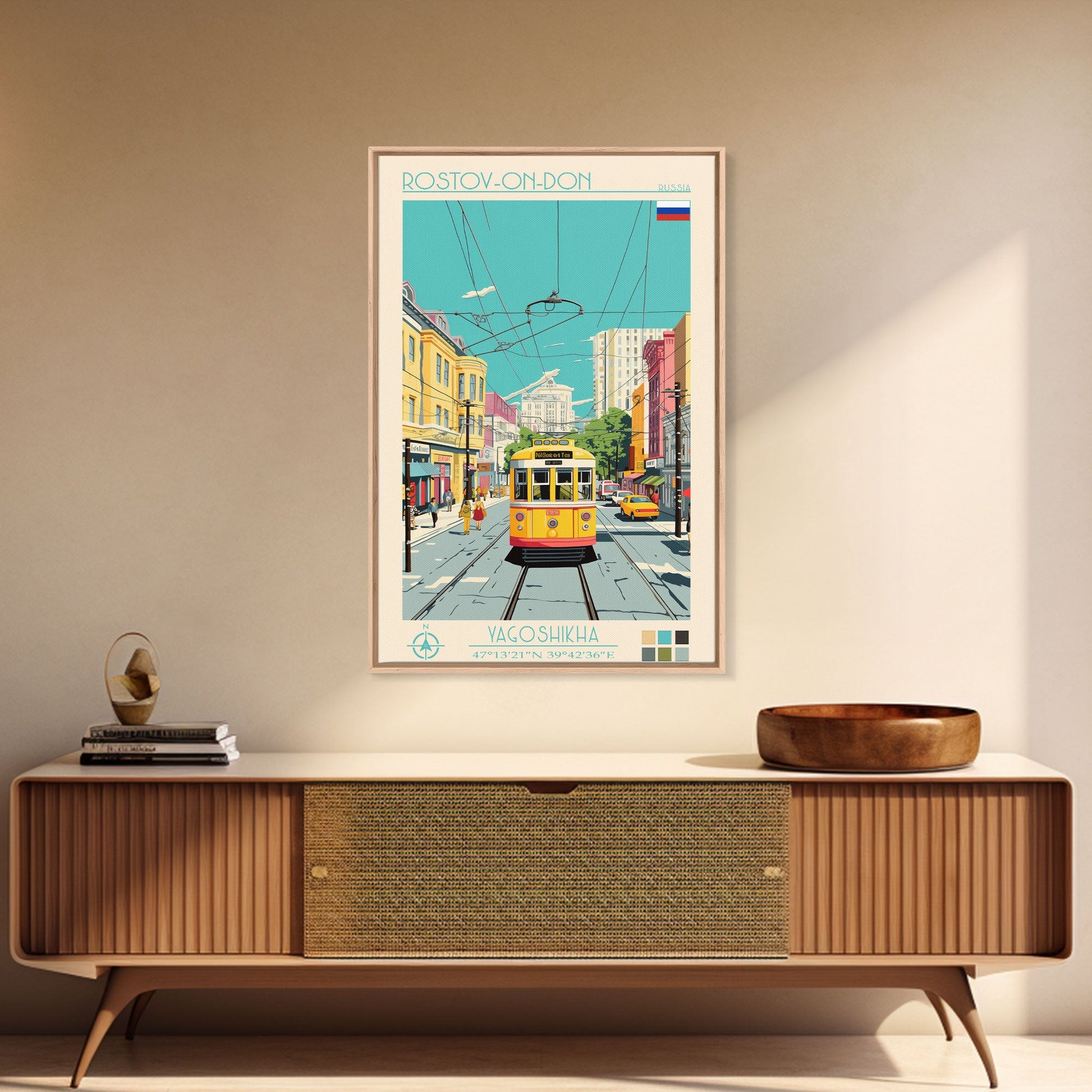 Rostov-on-Don Russia Travel Poster Framed Canvas Print, Midcentury Modern Art, Pop Art Wall Decor, Scenic Wall Art, Living Room Decoration, Office Art