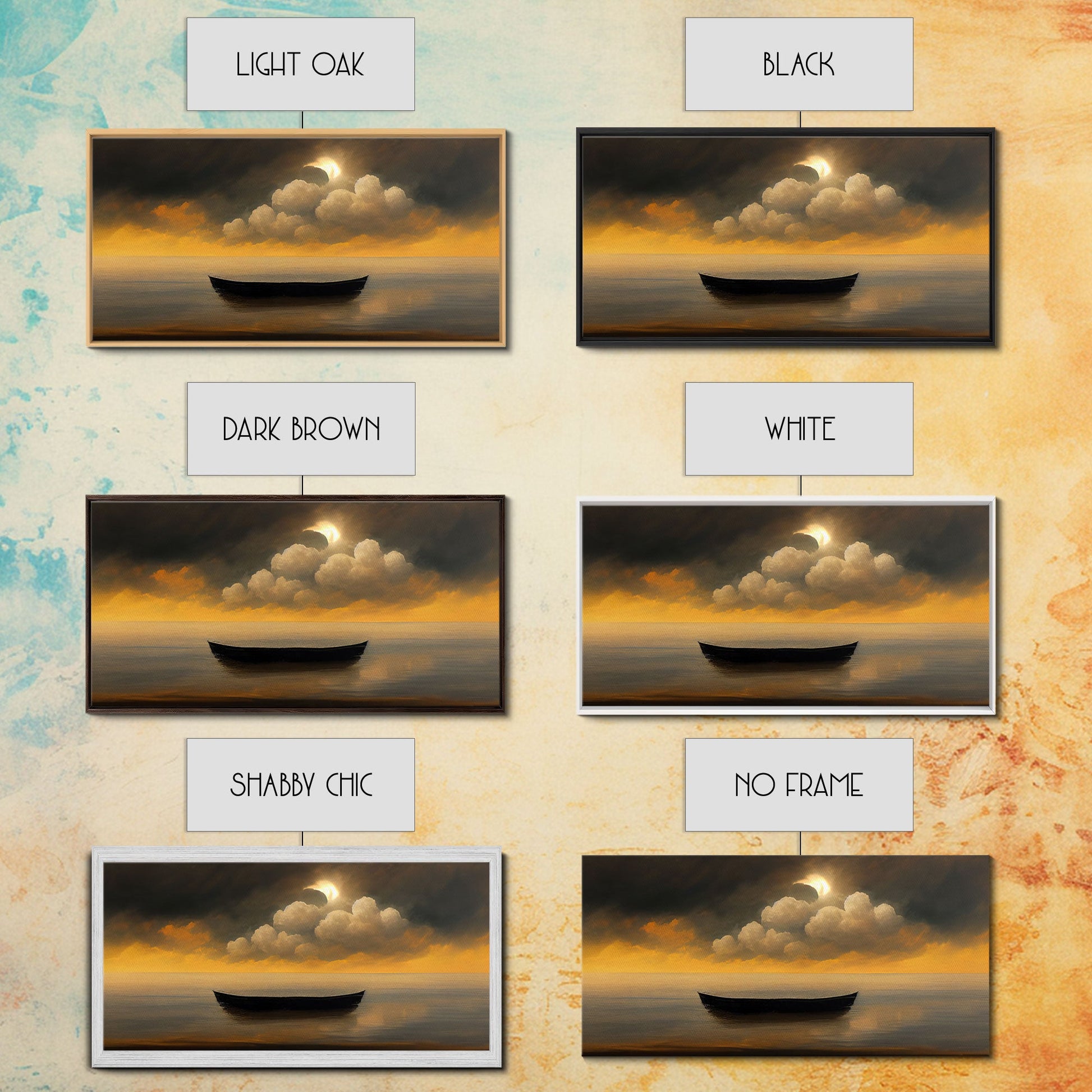 Row boat on a lake canvas print, sunset, watercolor, nature panoramic canvas print