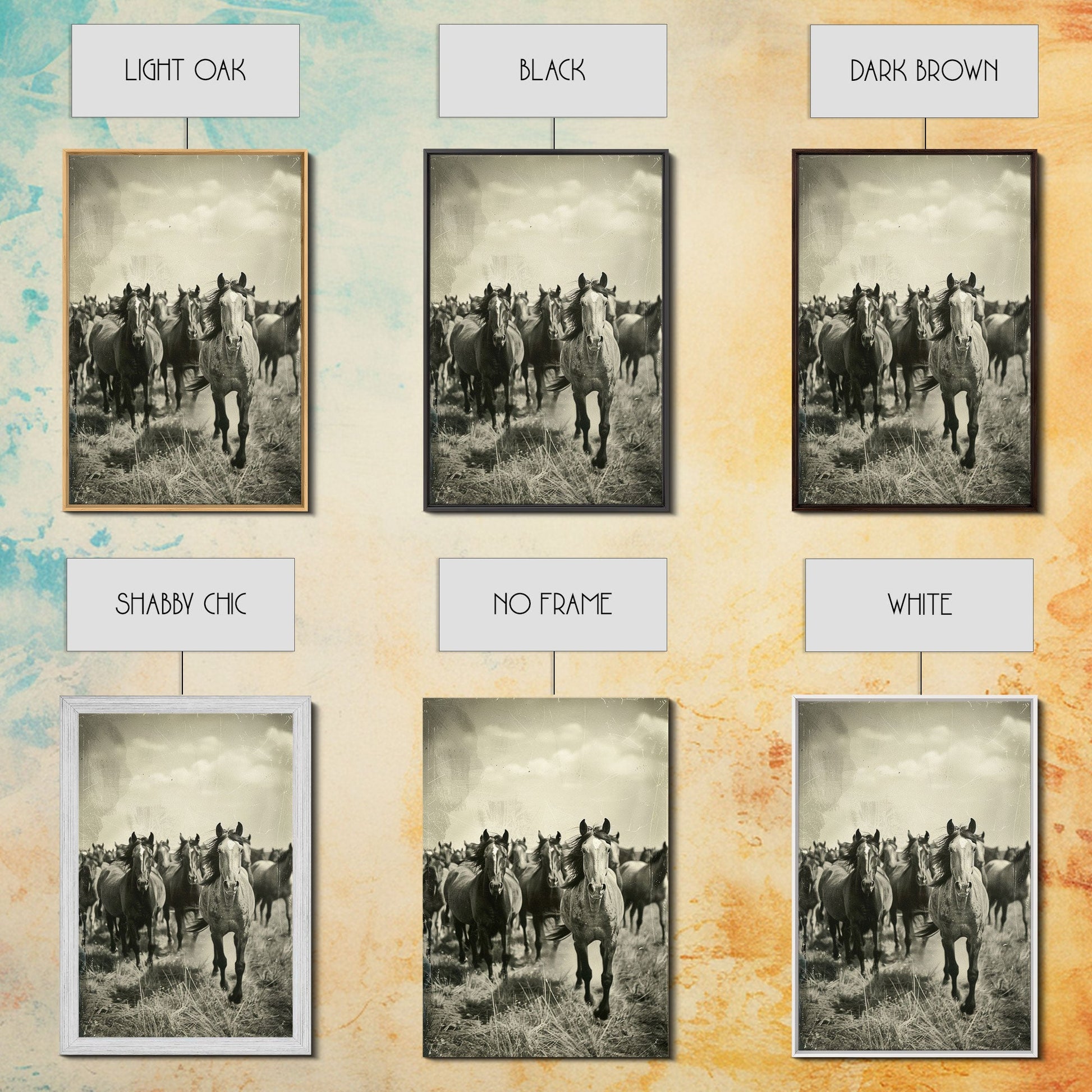 Running Wild Horses Sepia Print - Framed Canvas Wall Art, Rustic Western Decor, Horse Artwork for Living Room, Animal Wall Art