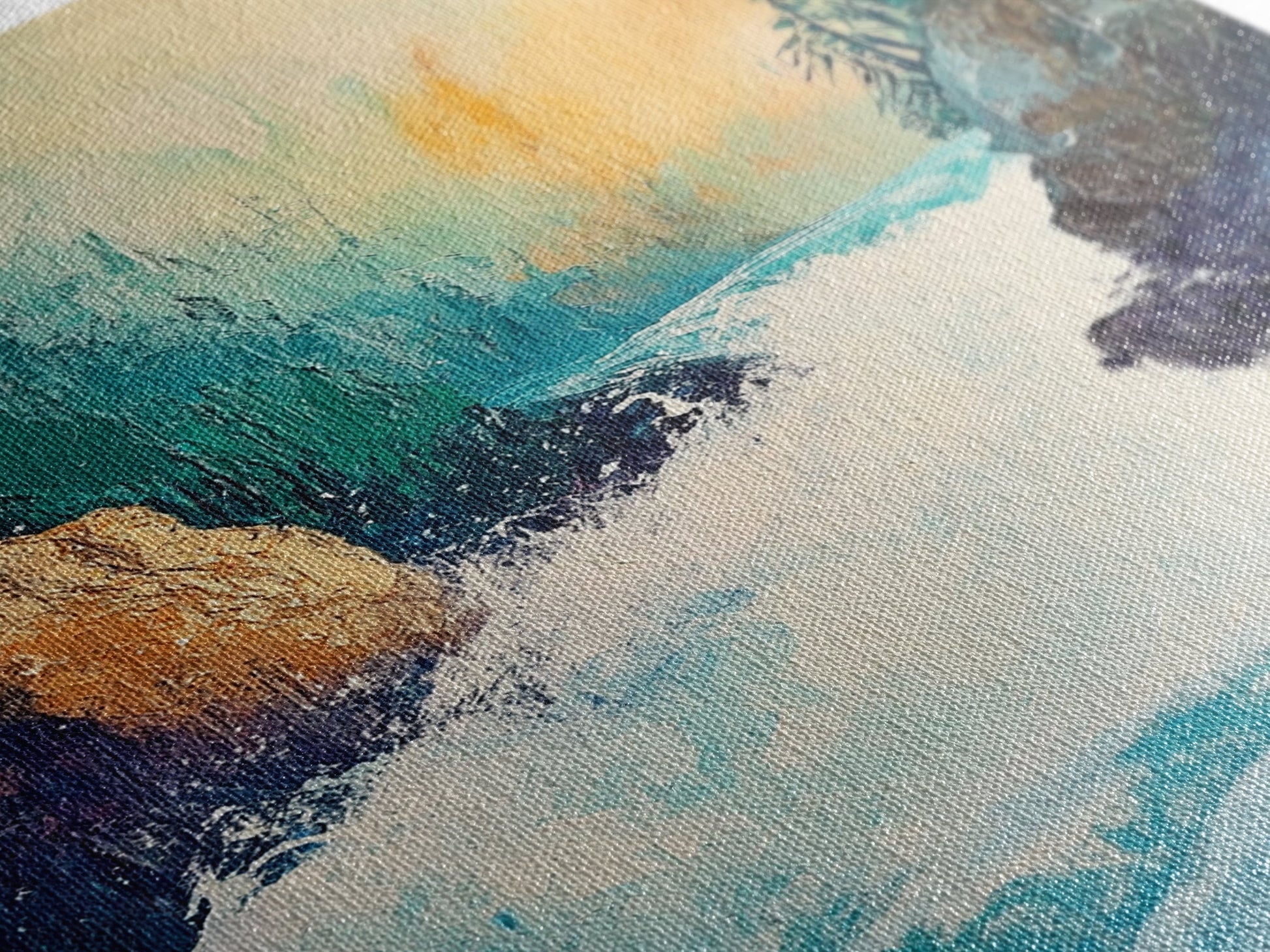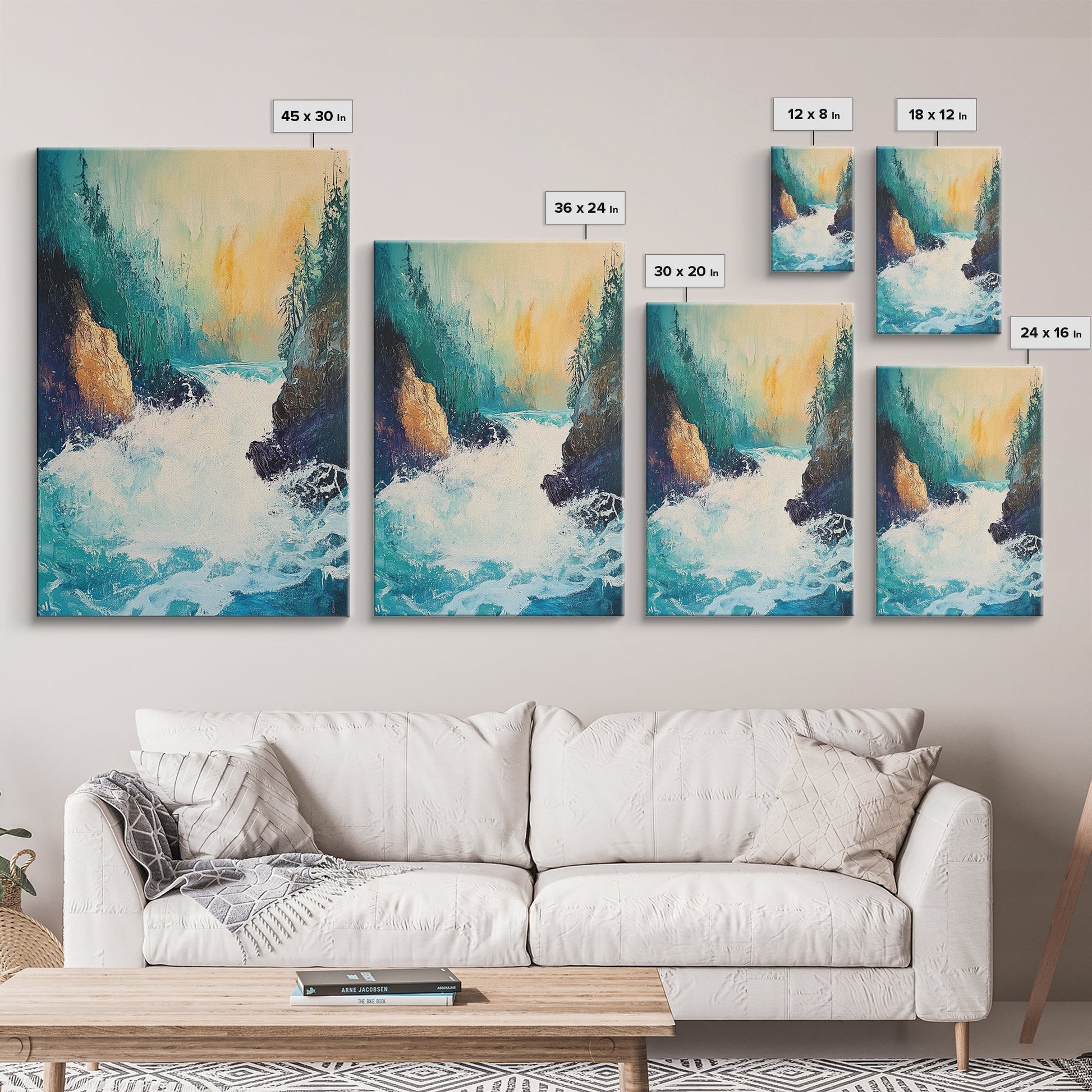 Rushing Waterfall Framed Canvas Print Nature Landscape Wall Art, Wilderness River Painting, Cabin Art, Mountain Stream Artwork
