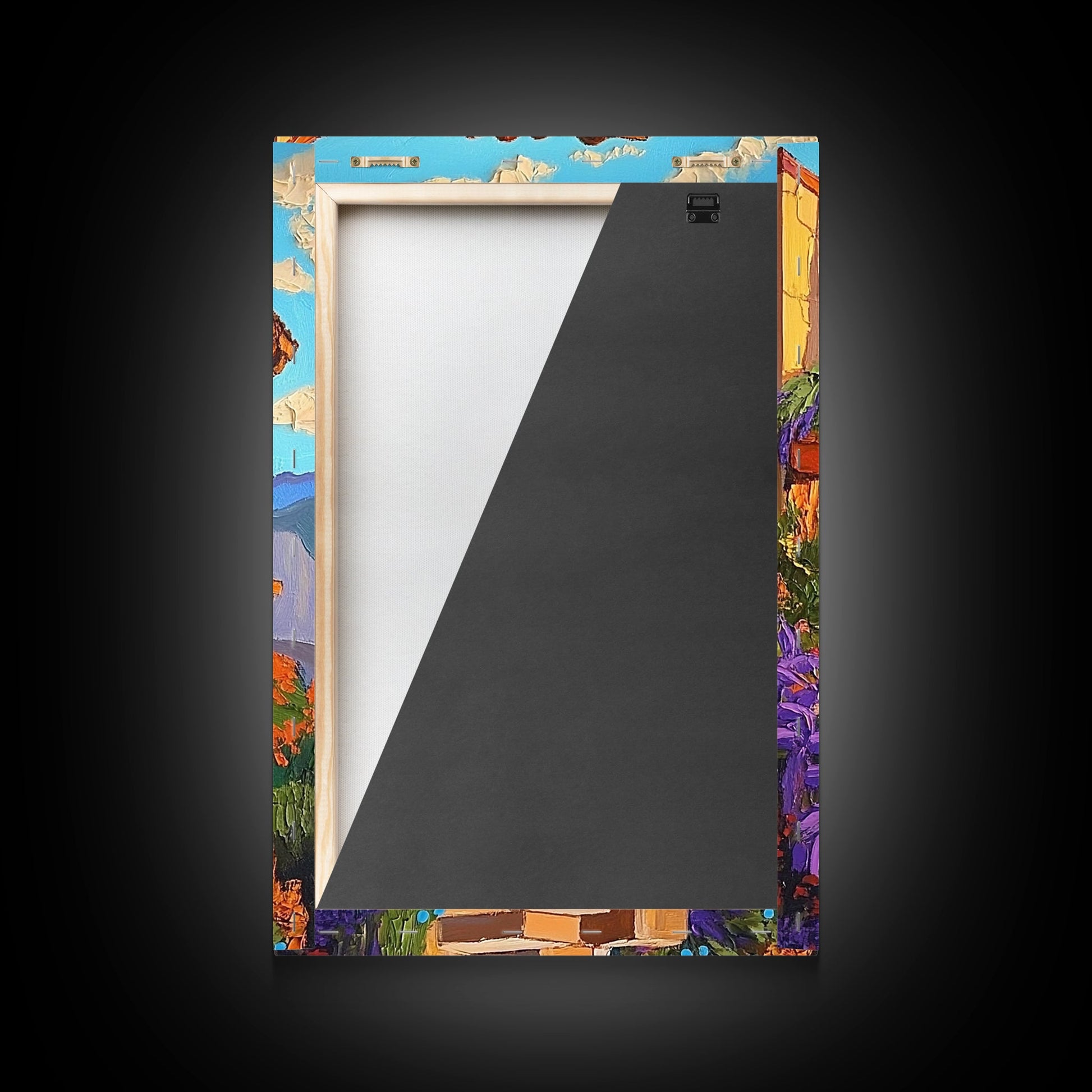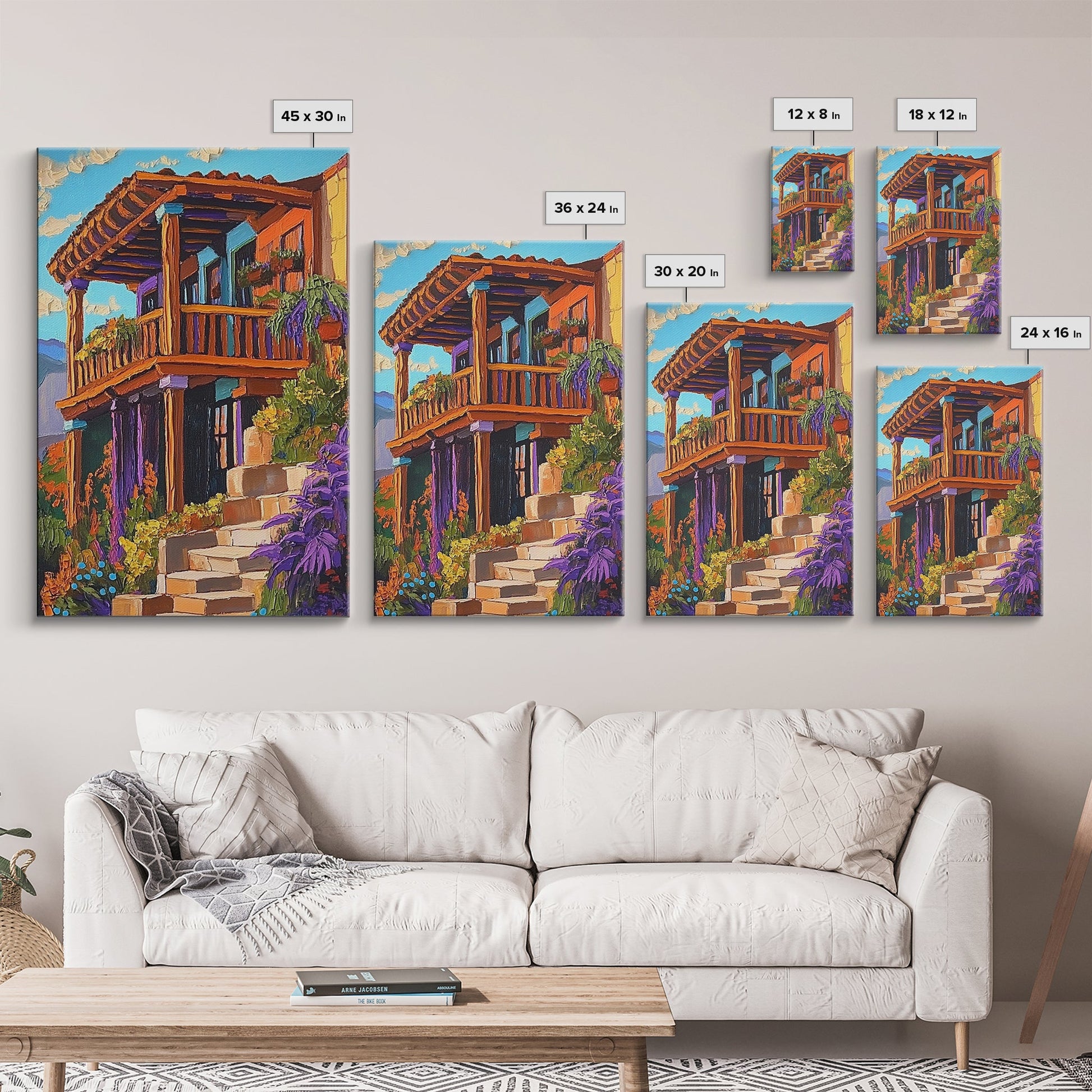 Rustic Balcony View, Desert Garden Colors, Southwest Home Art, Framed Canvas Print, Living Room Wall Art, Boho Summer Decor