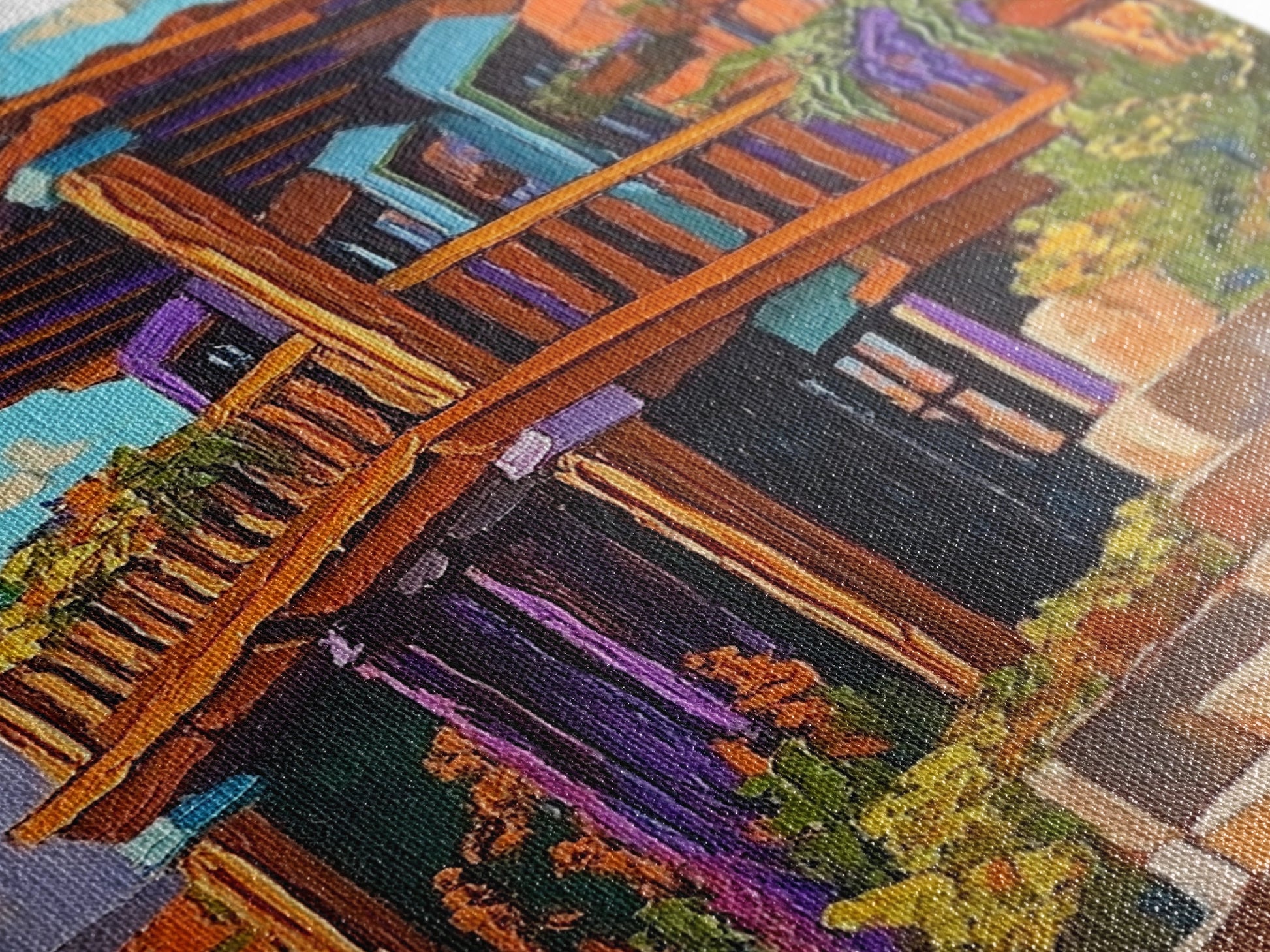 Most of our canvases are made in the USA, with the exception of canvases ordered with the light oak unstained frames, and any large canvases (24x48, 30x60, 16x48 and 20x60) ordered WITH a frame. These are temporarily made in and shipped from Europe, while we try to find a more consistent supplier in the USA.