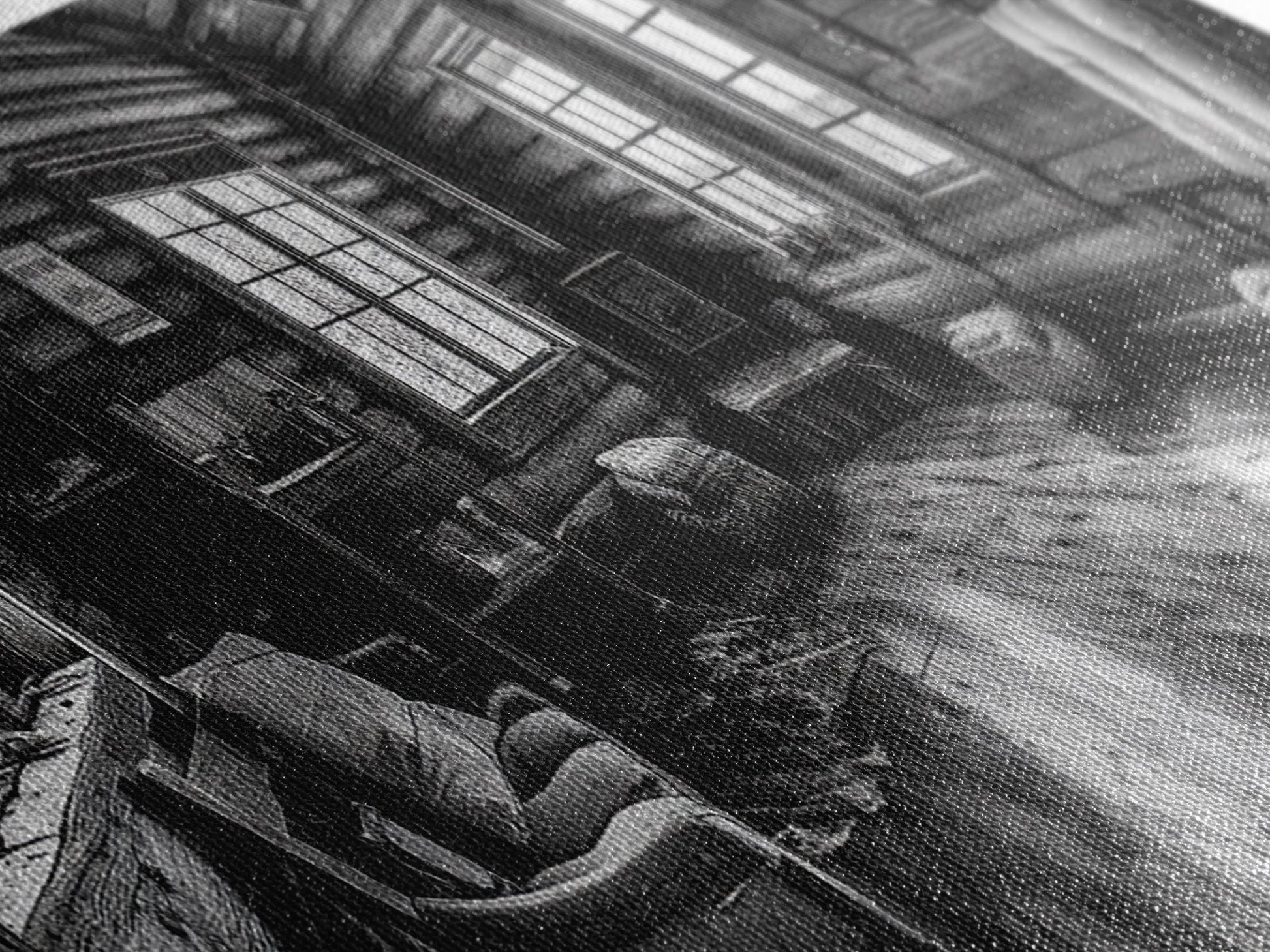 Rustic Cabin, Cozy Interior, Nature Retreat, Framed Canvas Print, Living Room Wall Art, Black and White Photography, Lodge Decor